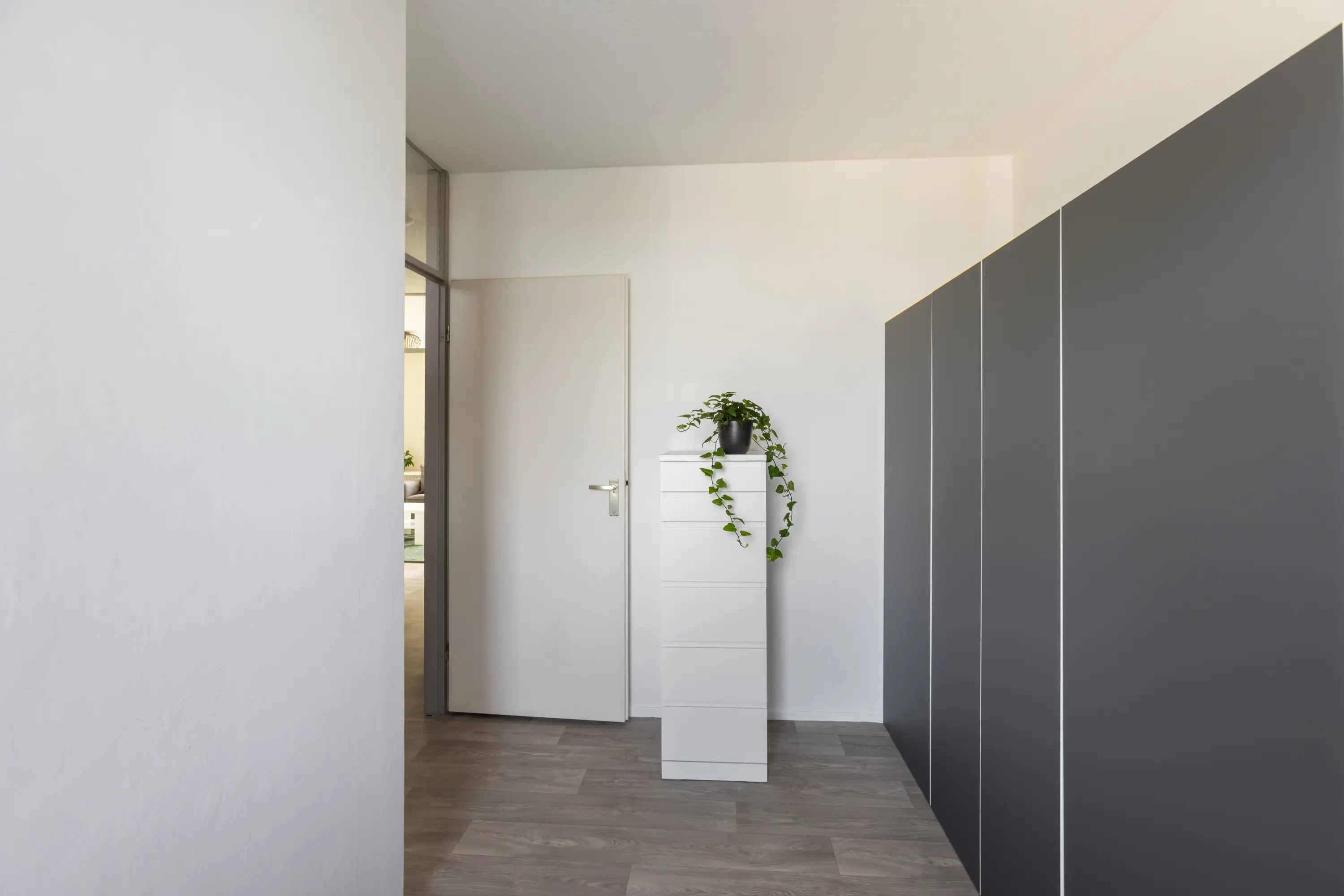 Aan de galerijzijde van het appartement liggen twee slaapkamers.