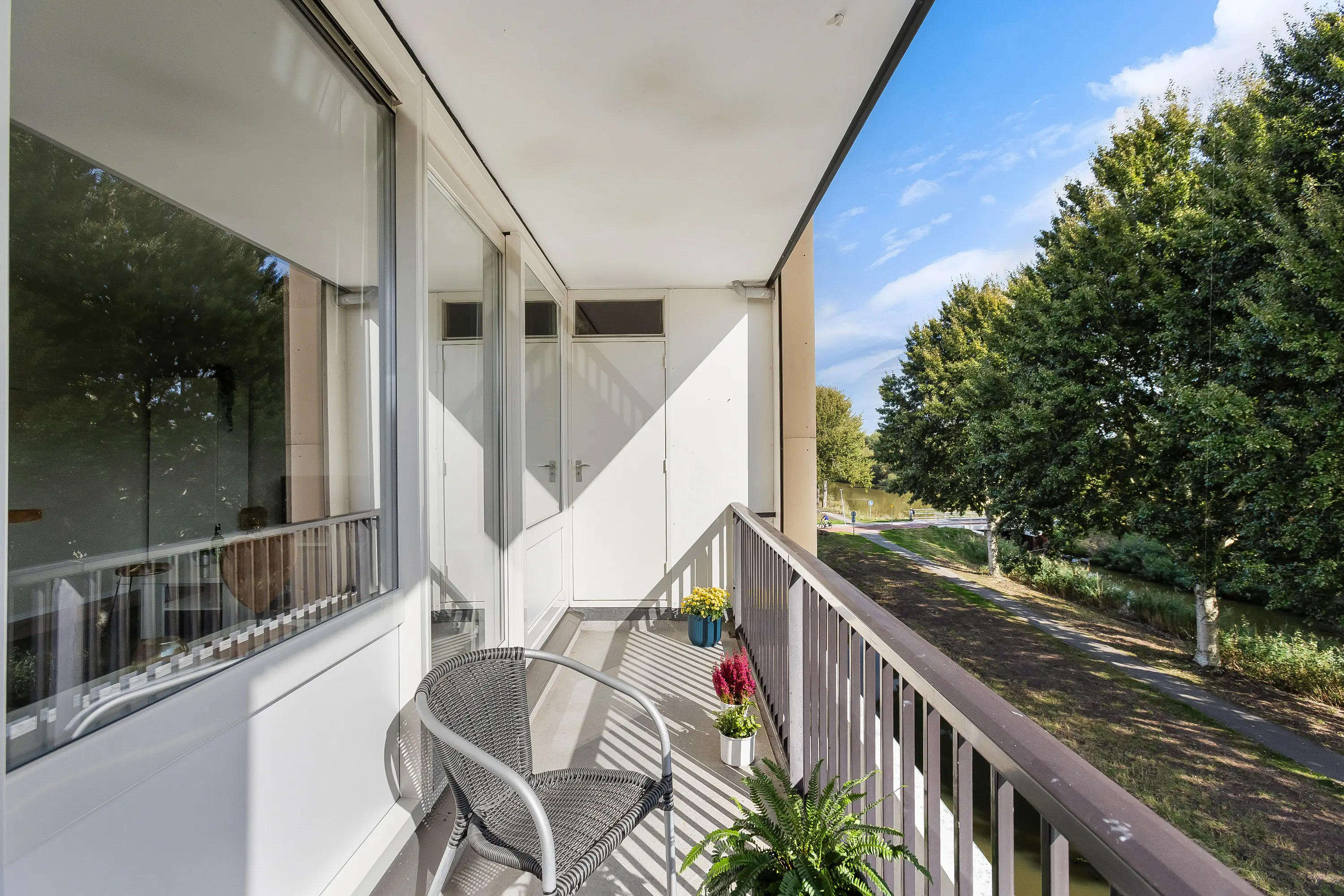 Het appartement heeft een lichte woonkamer met open keuken, twee slaapkamers en een moderne badkamer en apart toilet. Het balkon is een fijne plek om te genieten van zon, rust en het uitzicht, compleet met een bergkast voor extra gemak.
