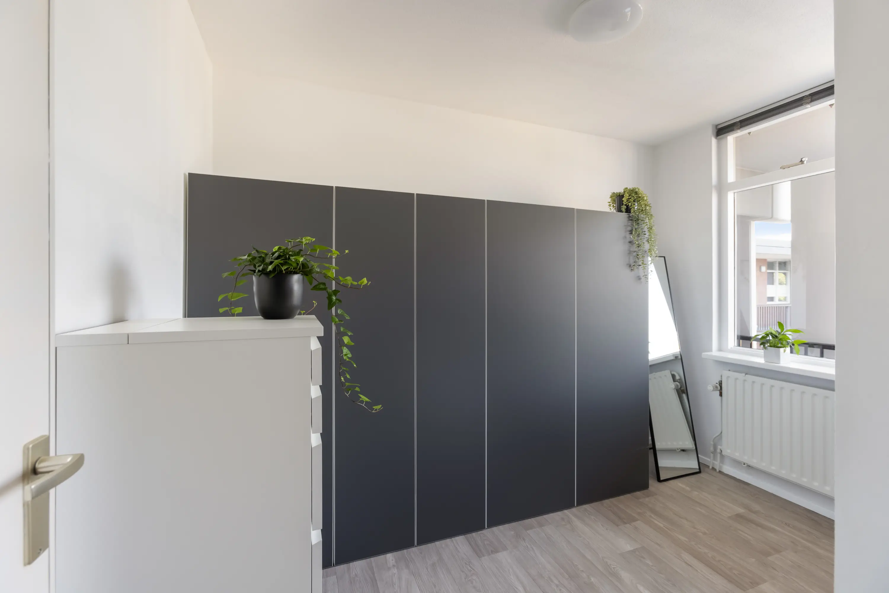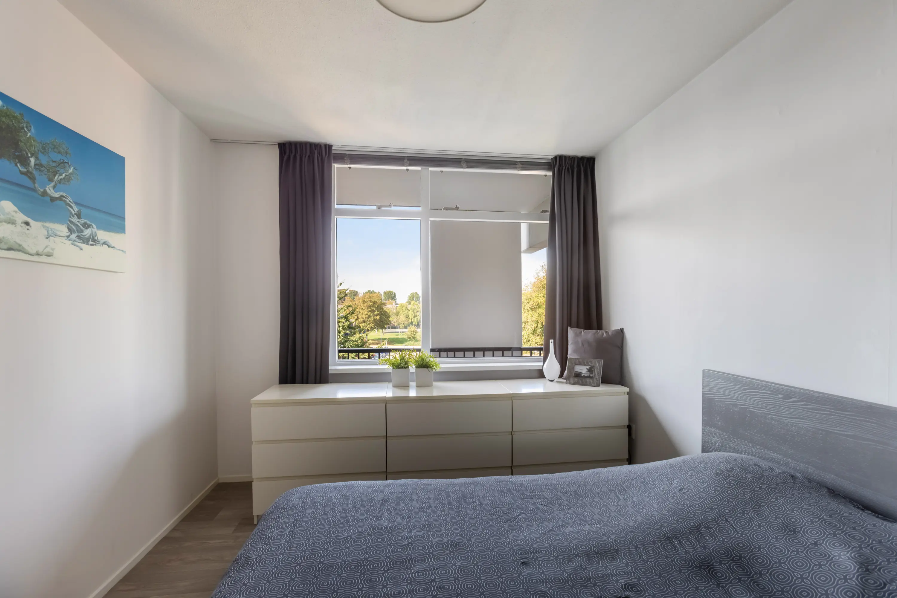 Aan de galerijzijde van het appartement liggen twee slaapkamers.
