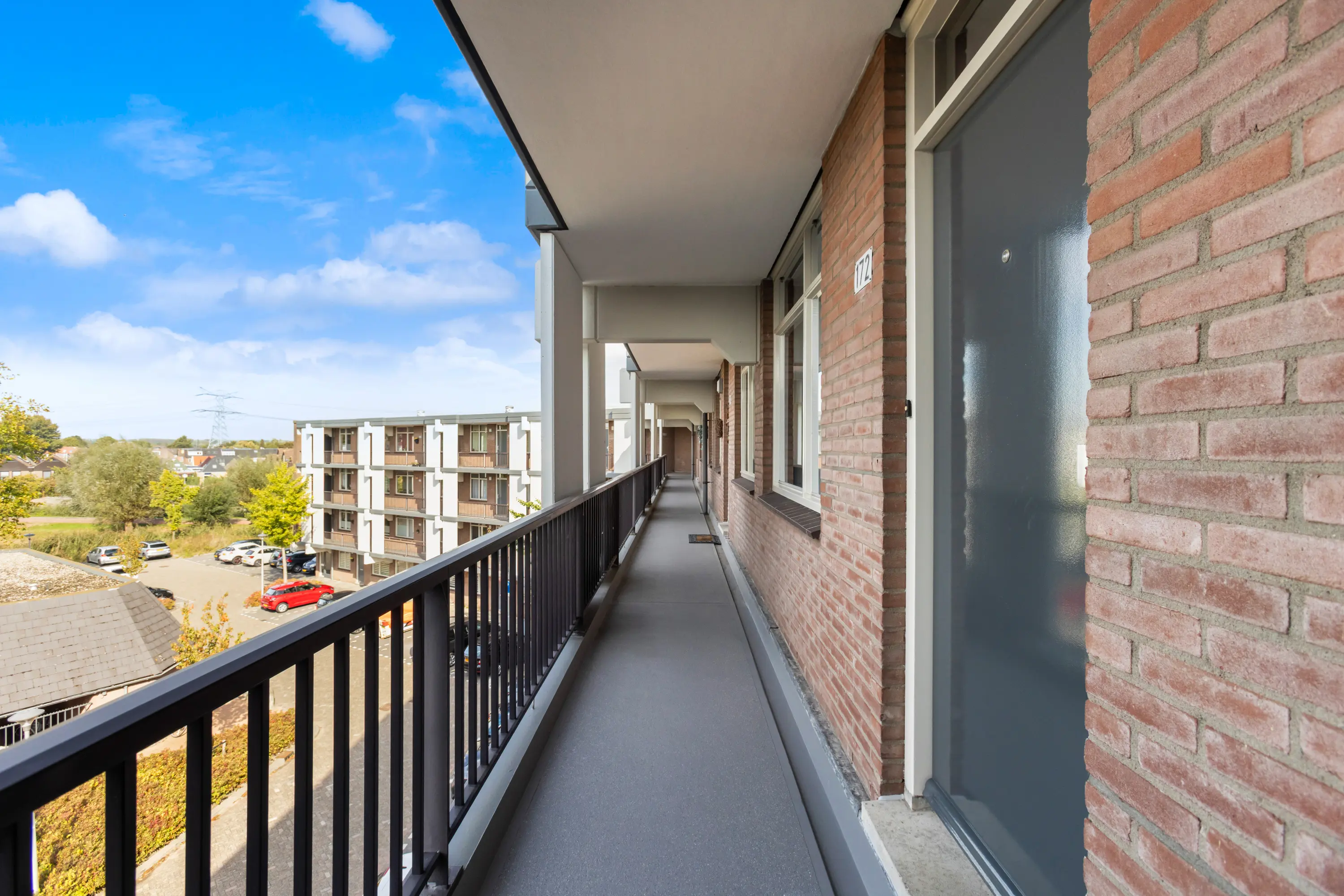 De keuken is praktisch ingedeeld in een wandopstelling en de twee slaapkamers liggen aan de rustige galerijzijde.