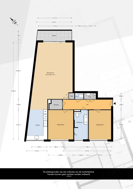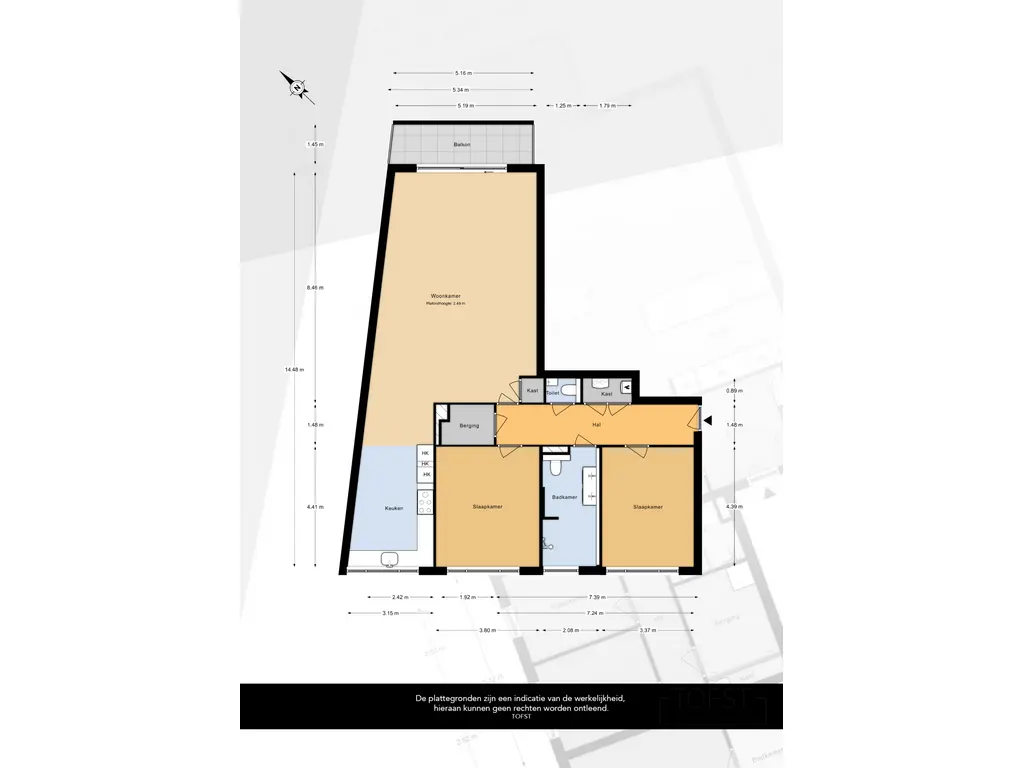 Vanuit het portiek loop je zo het ruime appartement binnen. De fraaie deuren geven je toegang tot alle belangrijke ruimtes. Aan de rechterzijde van de gang kom je eerst de wasruimte tegen, met tevens de opstelling voor de CV. Verderop bevindt zich het toiletruimte welke geheel is betegeld en voorzien van een fraai zweven toilet met fontein. Aan het einde van de gang bevindt zich nog een grote inpandige berging, makkelijk en centraal gelegen.