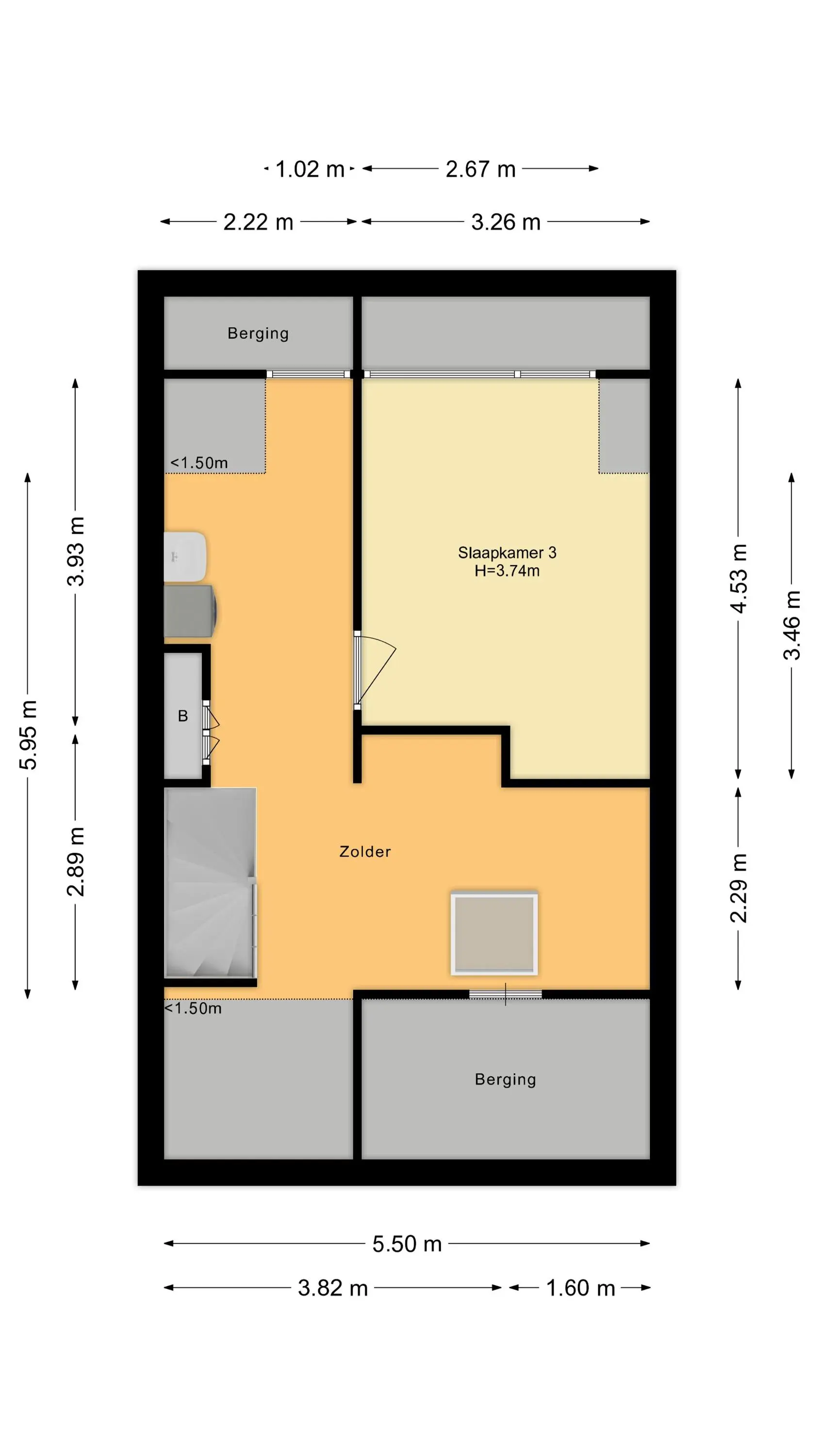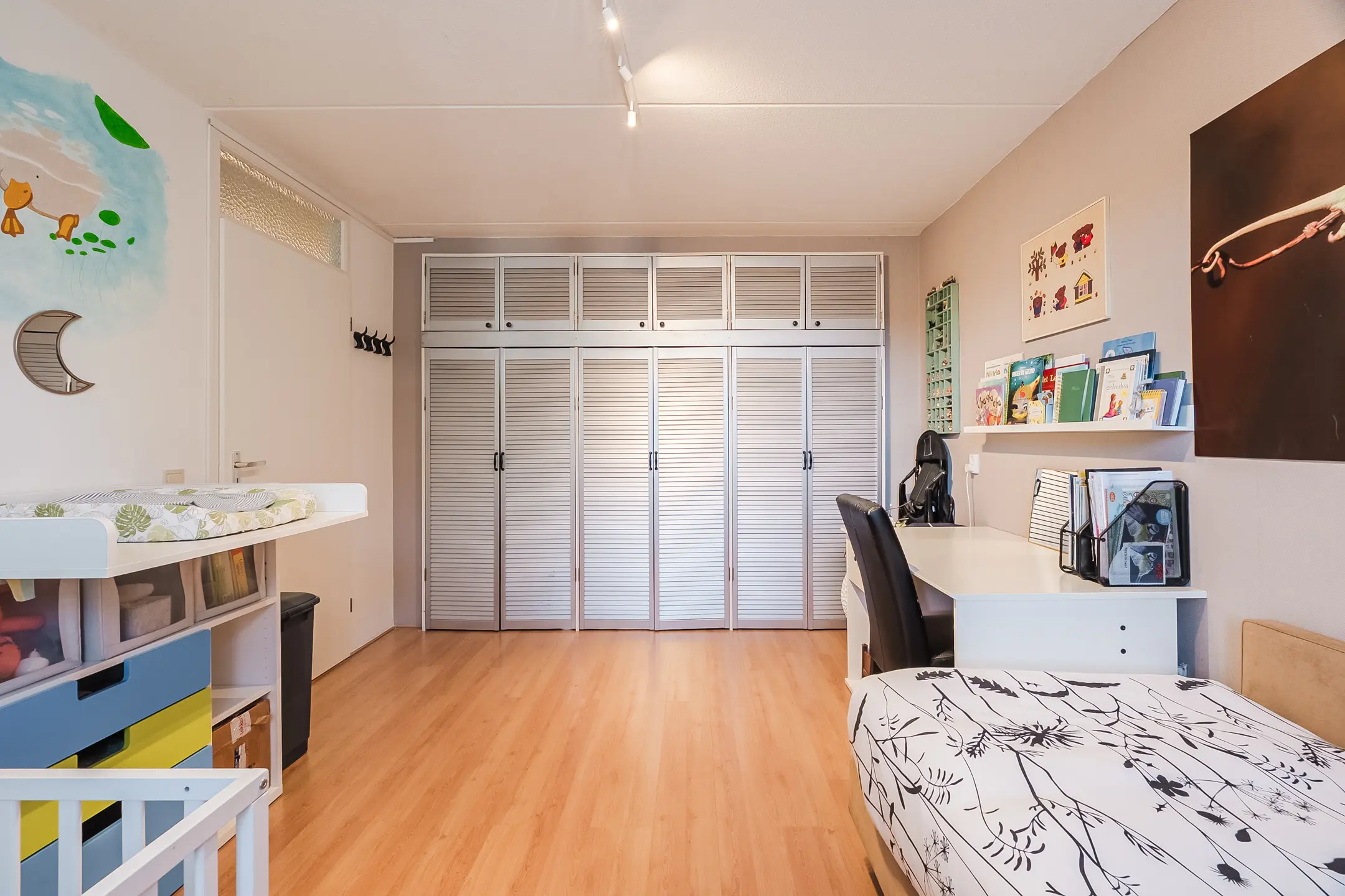 • Derde slaapkamer met bergruimte achter knieschotten en bergzolder erboven.