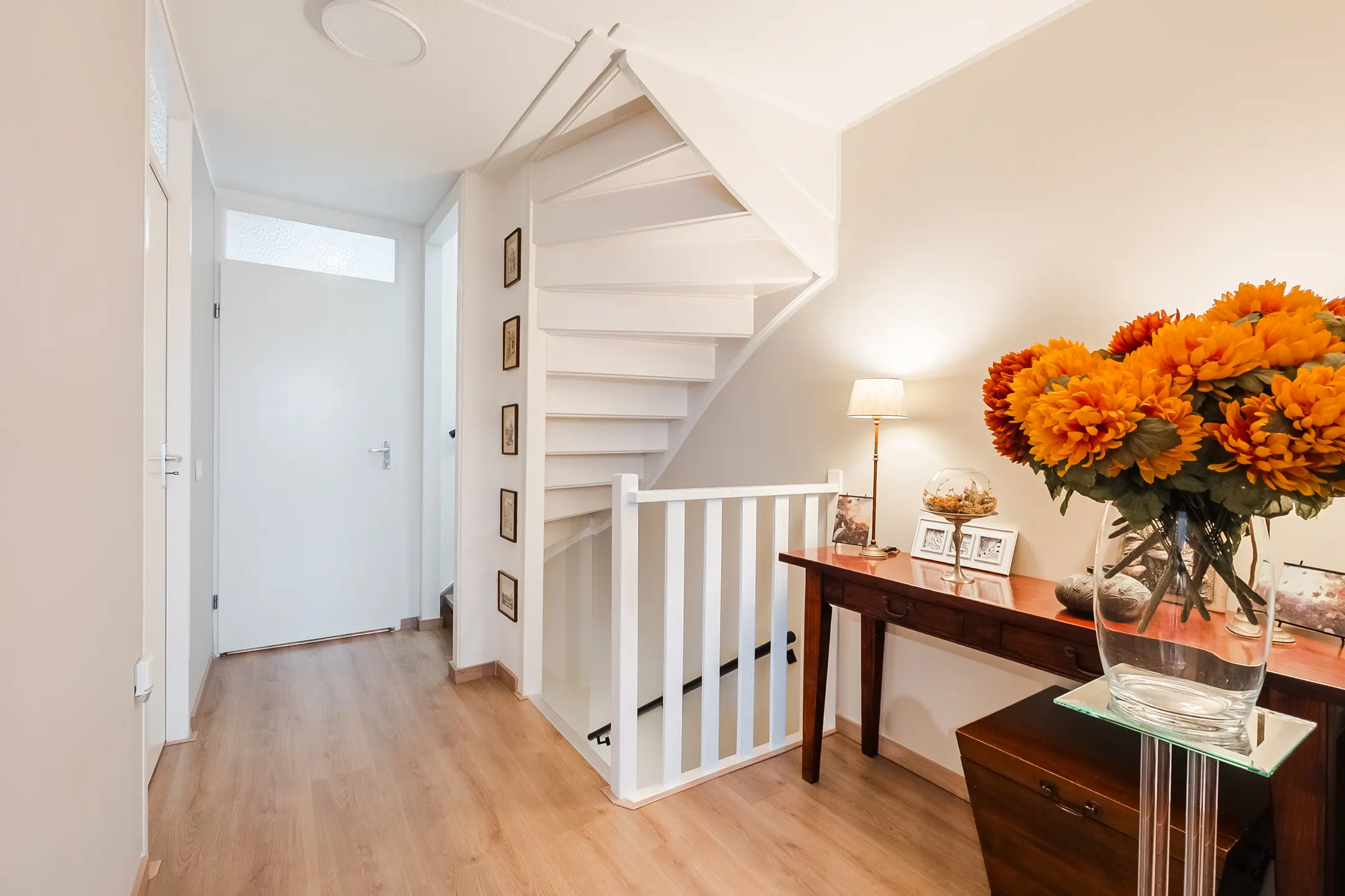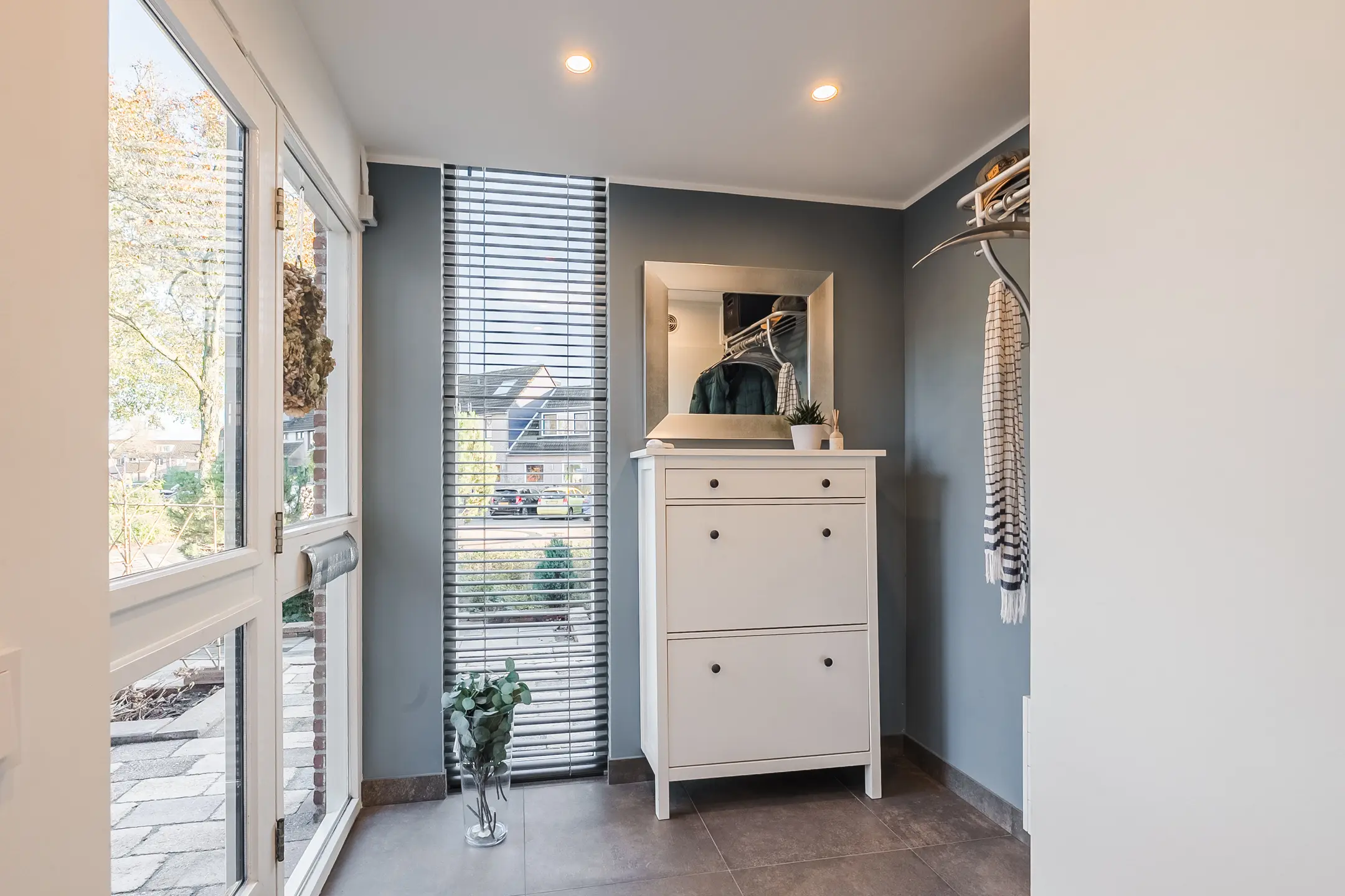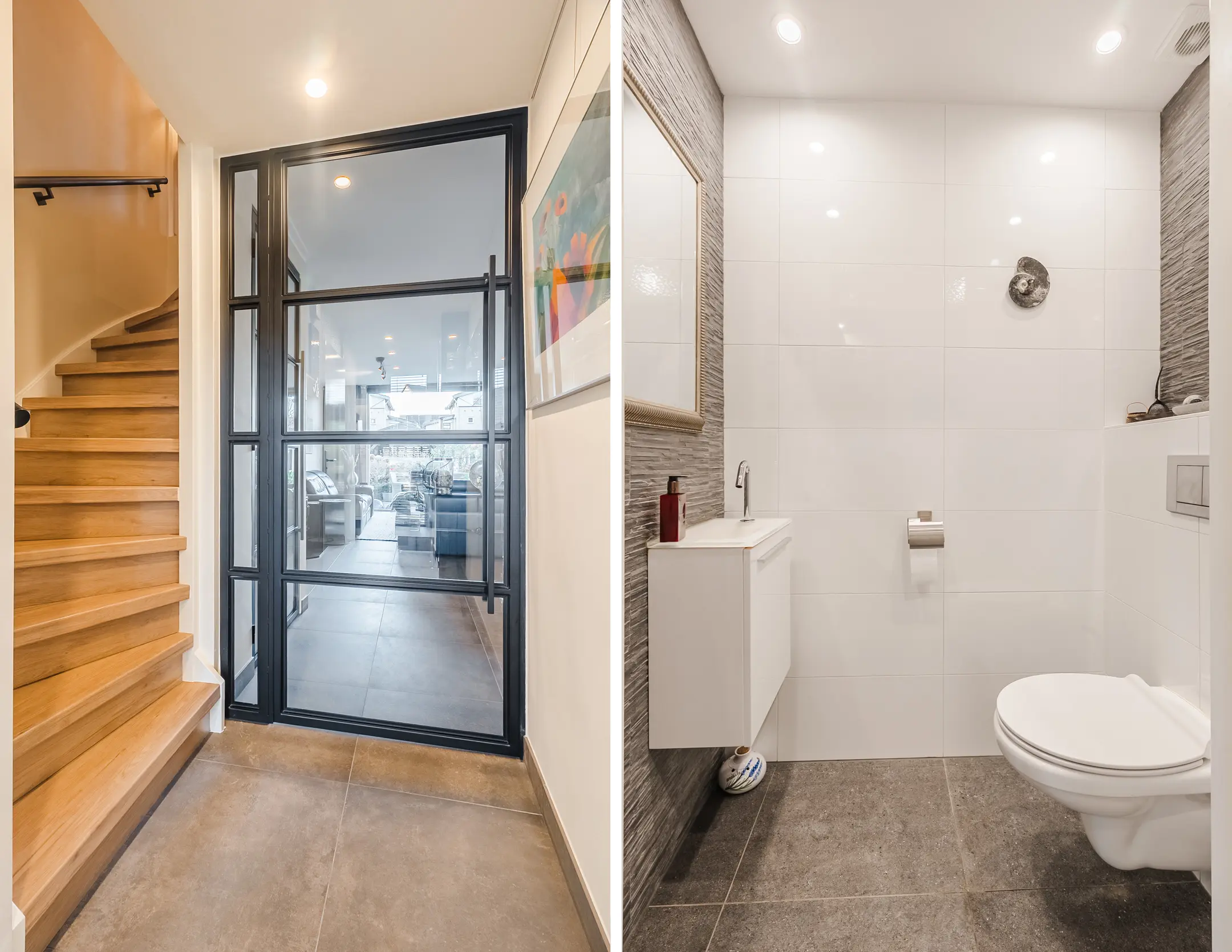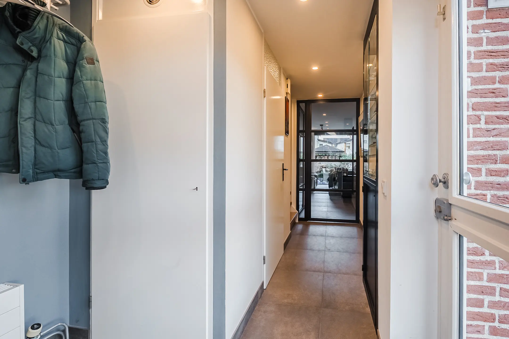 • Ruime hal met garderobe, moderne meterkast, trapopgang en toiletruimte (hangend sanitair).