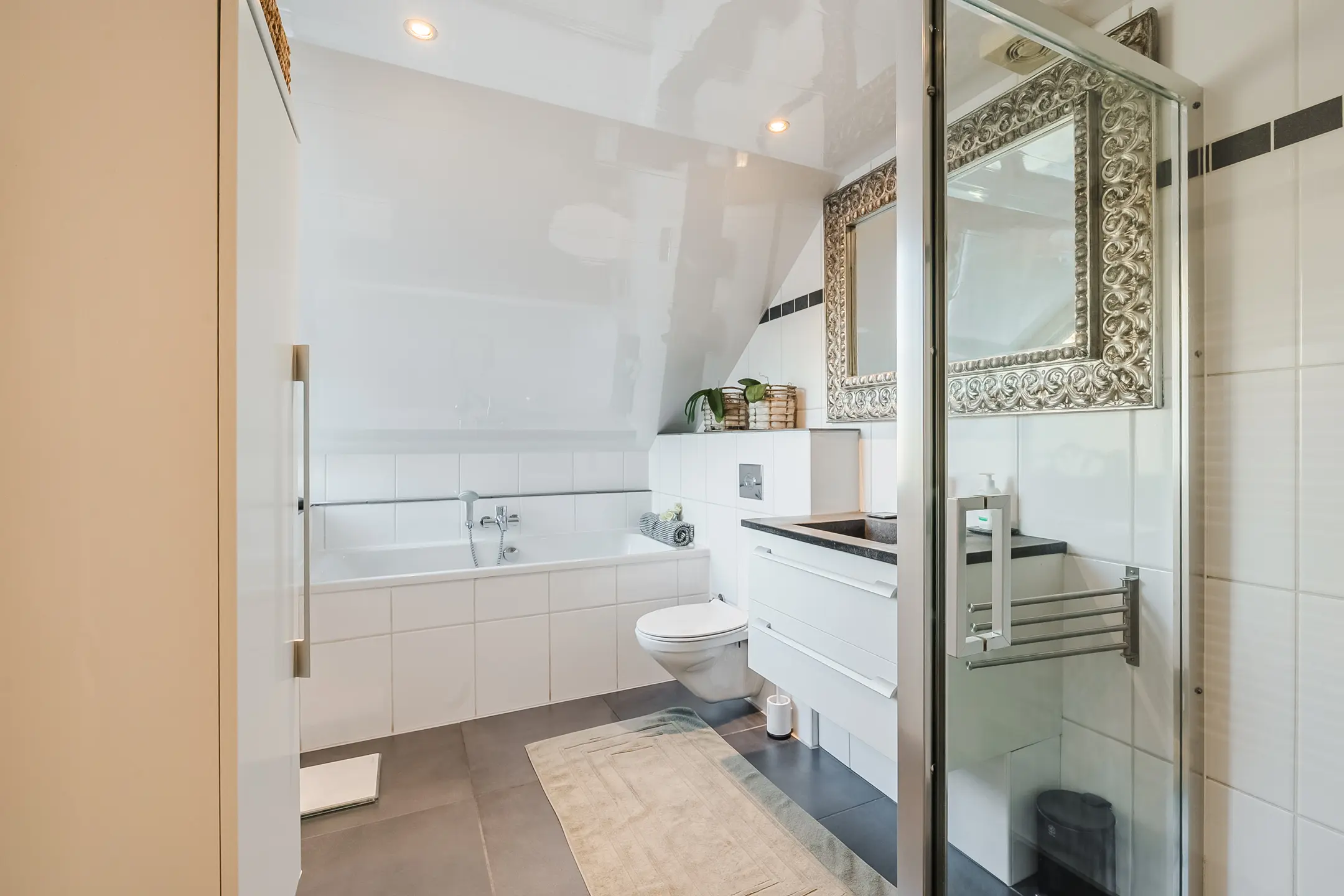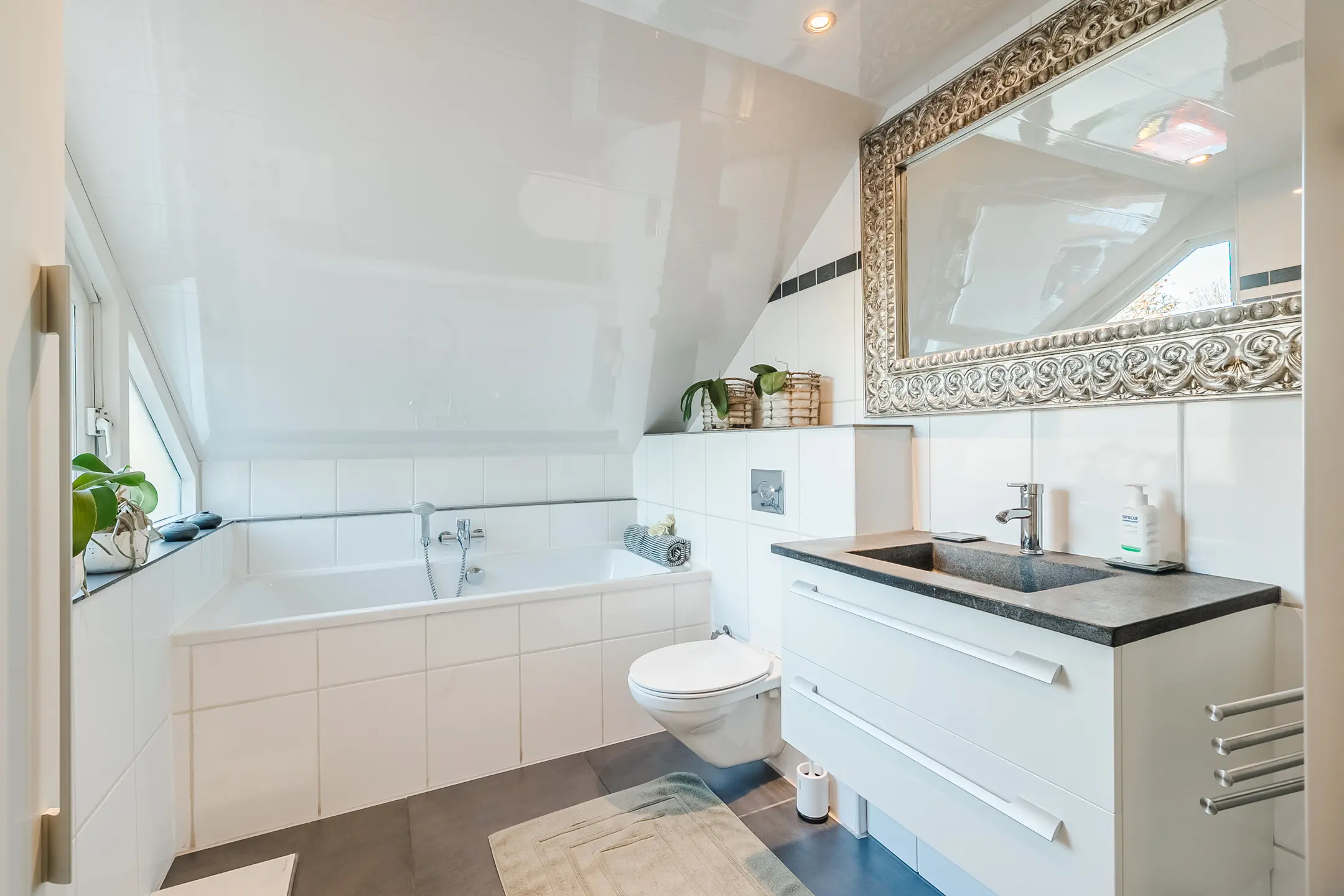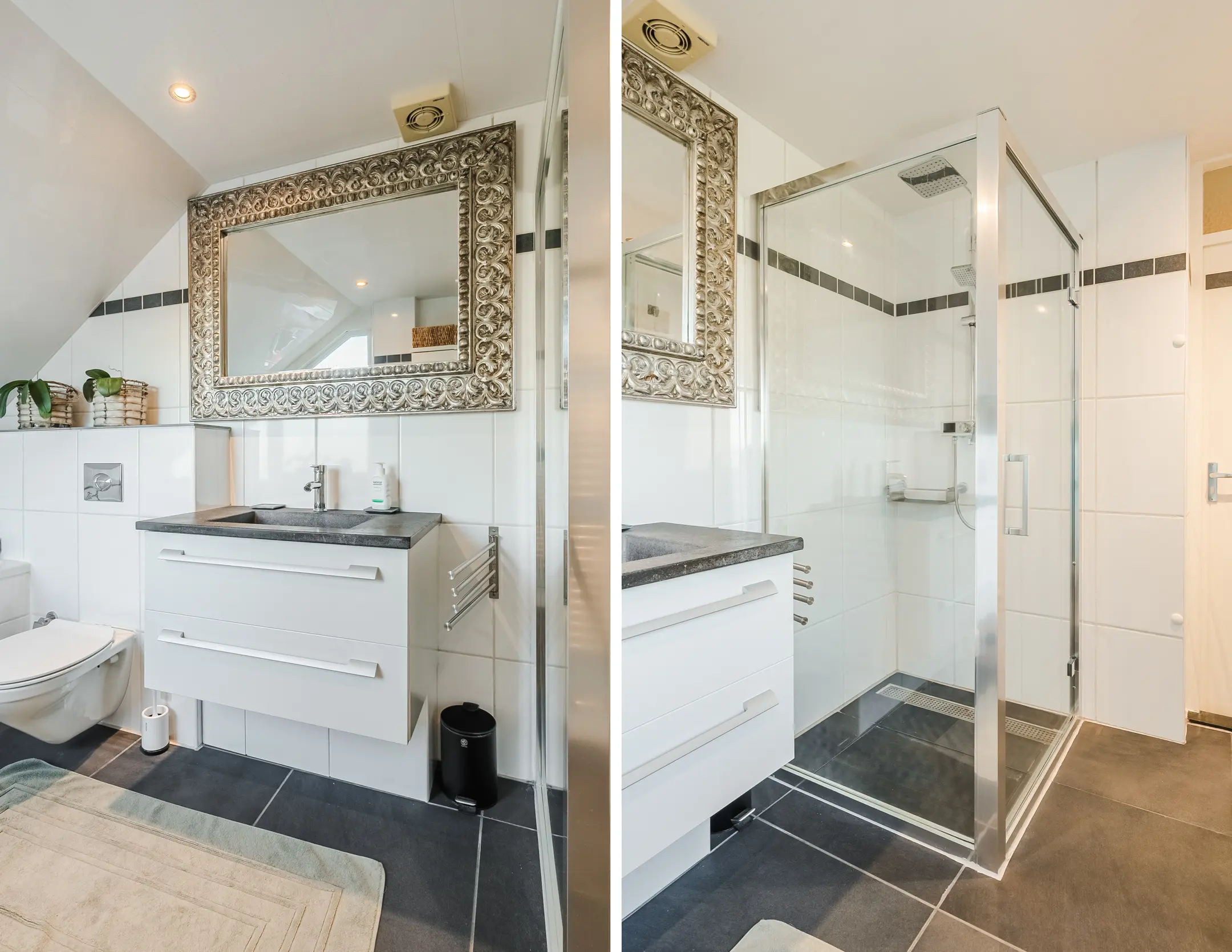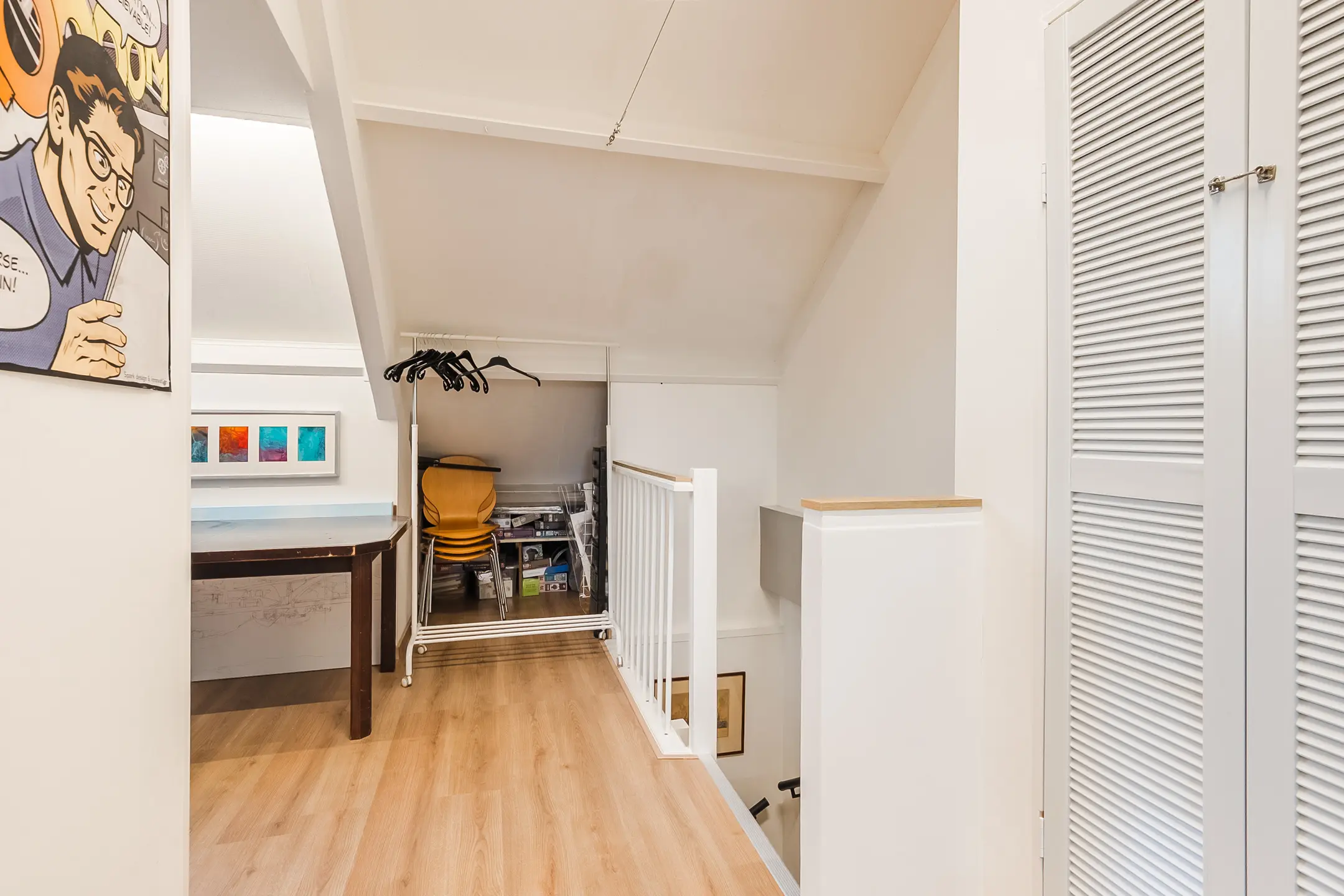 Op de eerste verdieping vind je twee ruime slaapkamers (voorheen drie) en een moderne badkamer. Maar de echte verrassing wacht boven: een imposante zolderverdieping met een nokhoogte van circa 3,80 meter, waar licht, ruimte en mogelijkheden samenkomen. Een perfecte werkplek, speelzolder, hobbyruimte, bergvliering en de derde slaapkamer — hier kun je alle kanten op.