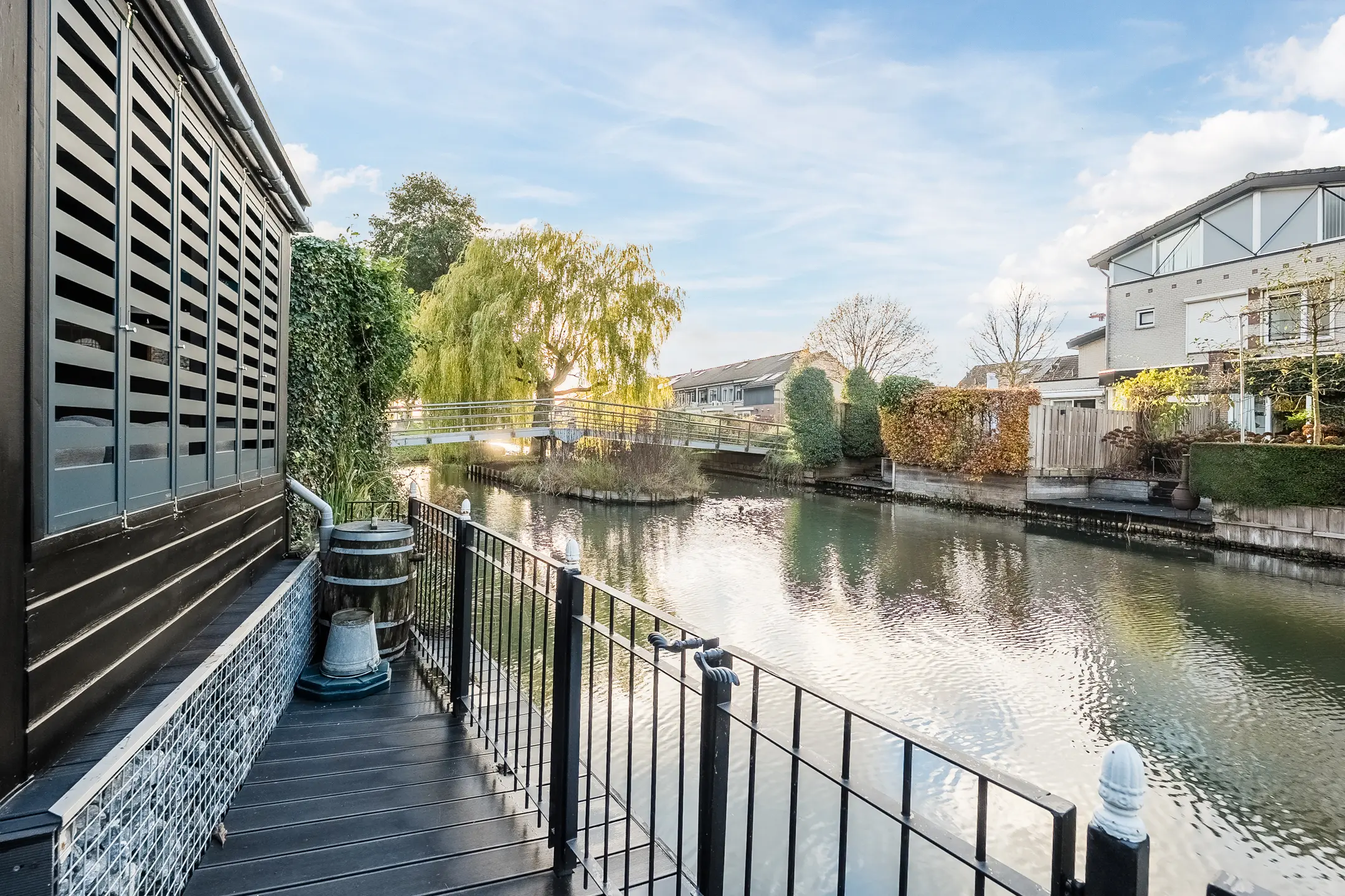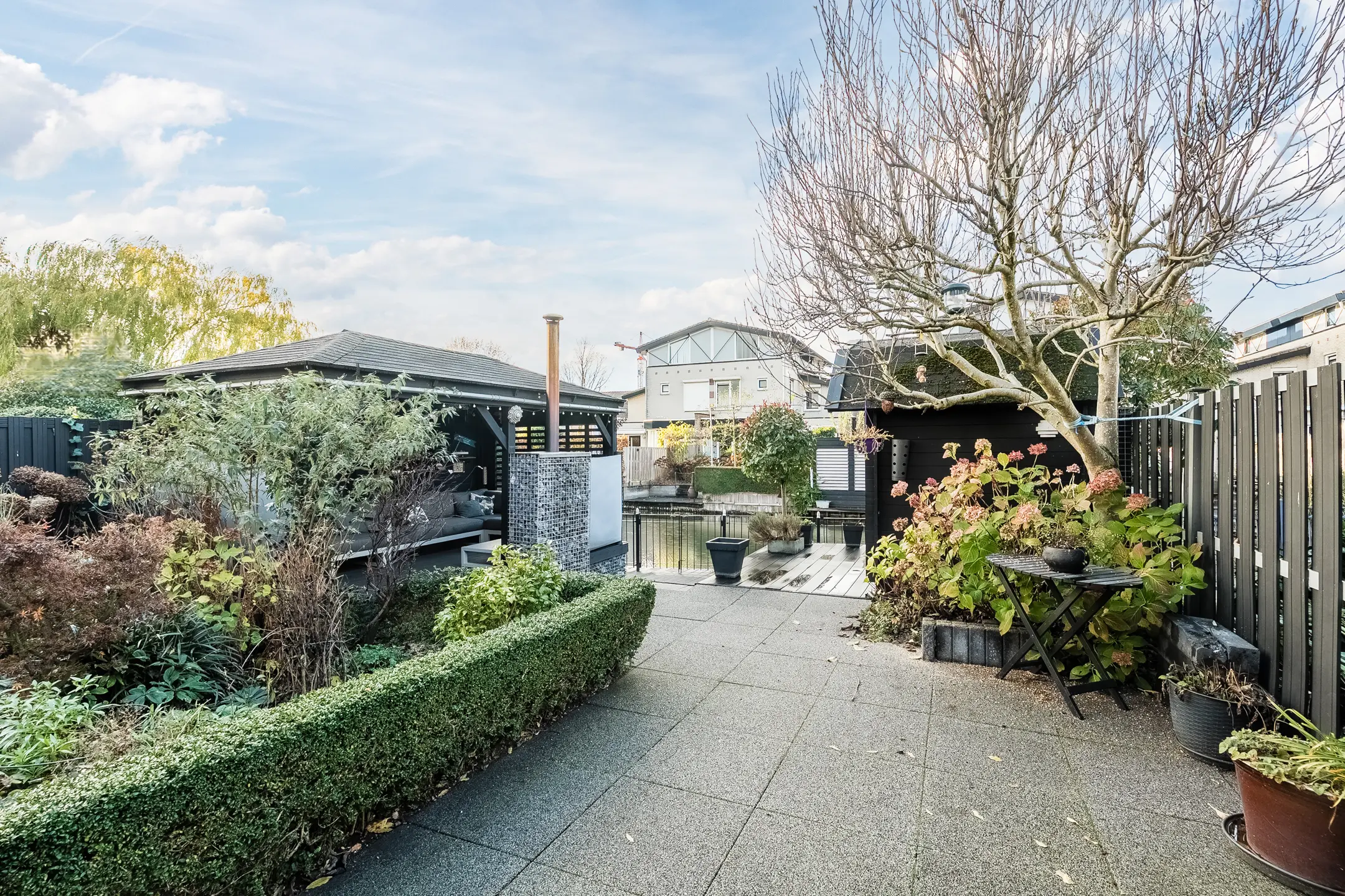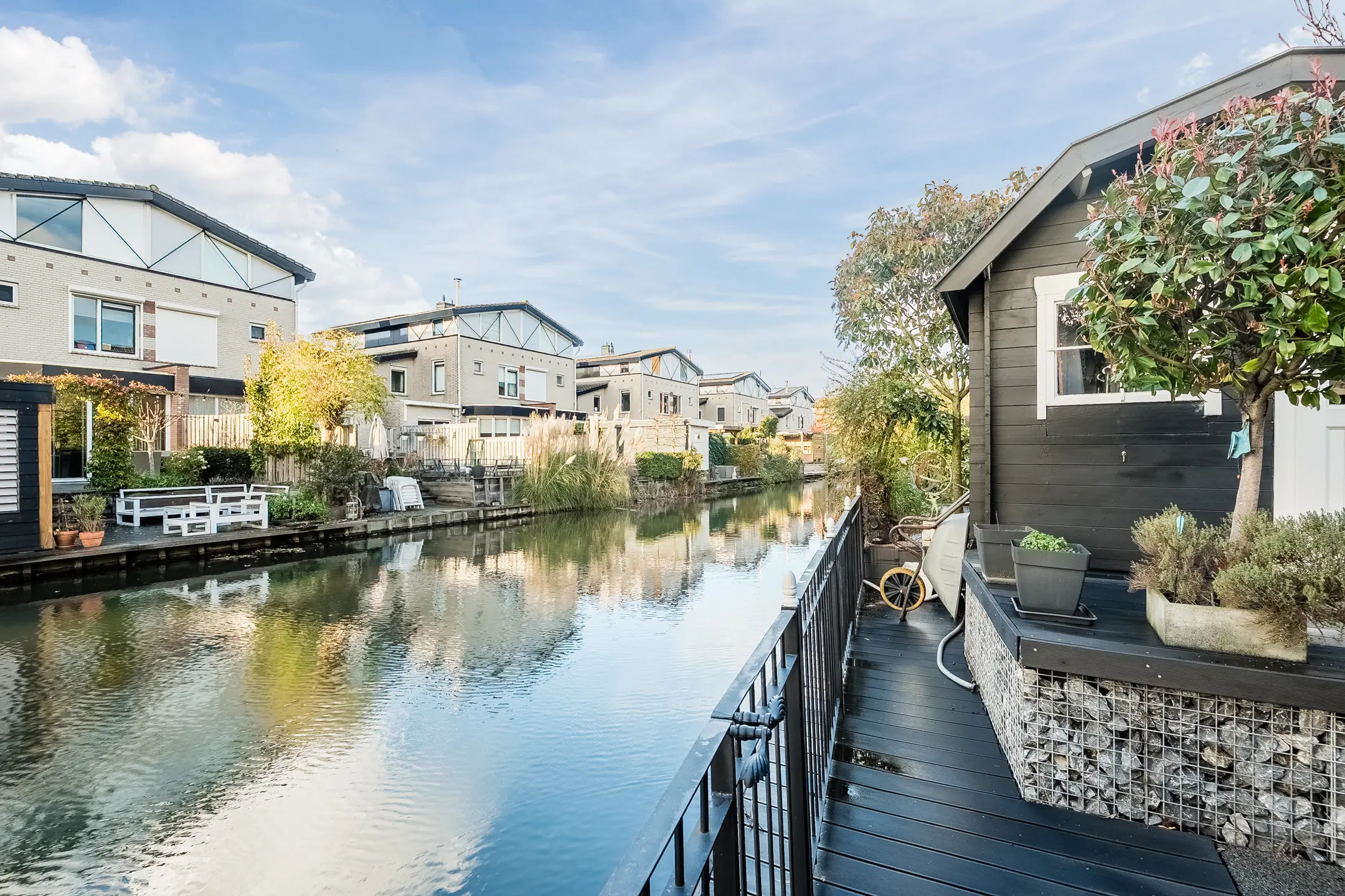 Aan de gevel hangt een elektrisch zonnescherm, voor het ultieme comfort op warme dagen. En aan het water ligt een prachtige terrasvlonder — het perfecte plekje voor een eerste kop koffie, een goed boek, of gewoon… even helemaal niets.