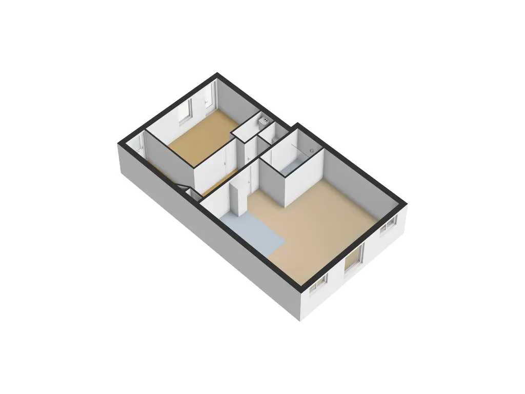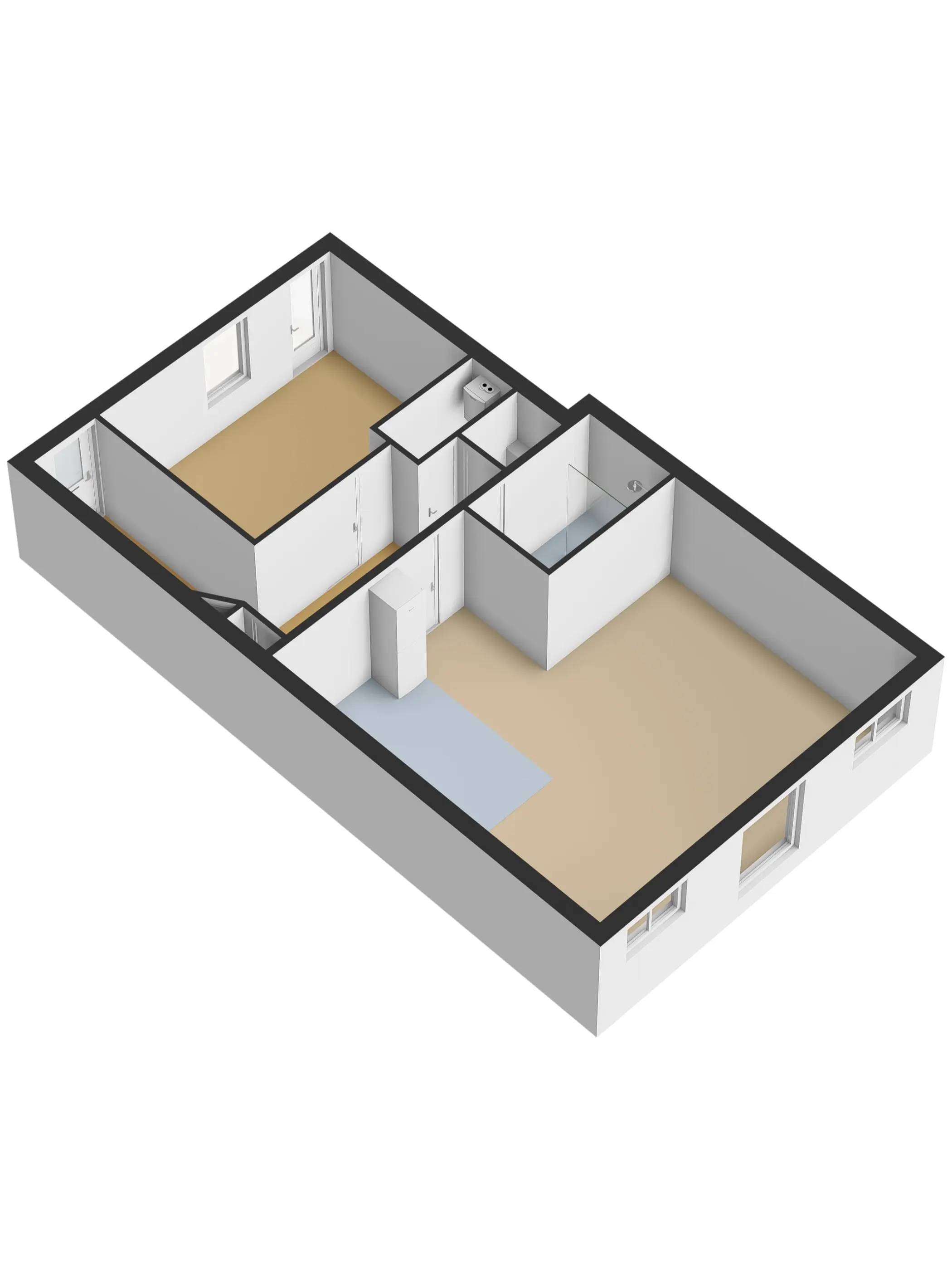 Bij binnenkomst valt direct de lange hal op, voorzien van een sfeervolle nis, meterkast en vaste kast. De afwerking met laminaatvloer en strakke wanden zorgt voor een warme en verzorgde uitstraling.