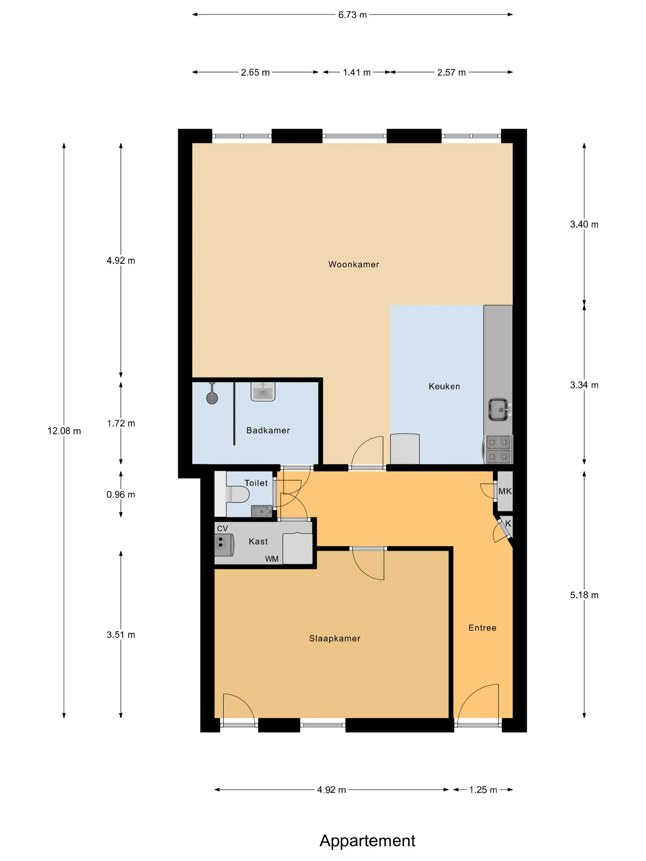 De Meetinstructie is gebaseerd op de NEN2580. De Meetinstructie is bedoeld om een meer eenduidige manier van meten toe te passen voor het geven van een indicatie van de gebruiksoppervlakte. De Meetinstructie sluit verschillen in meetuitkomsten niet volledig uit, door bijvoorbeeld interpretatieverschillen, afrondingen of beperkingen bij het uitvoeren van de meting. Indien bepaalde maten of oppervlaktes voor u van wezenlijk belang zijn, dan adviseren wij u deze na te meten.