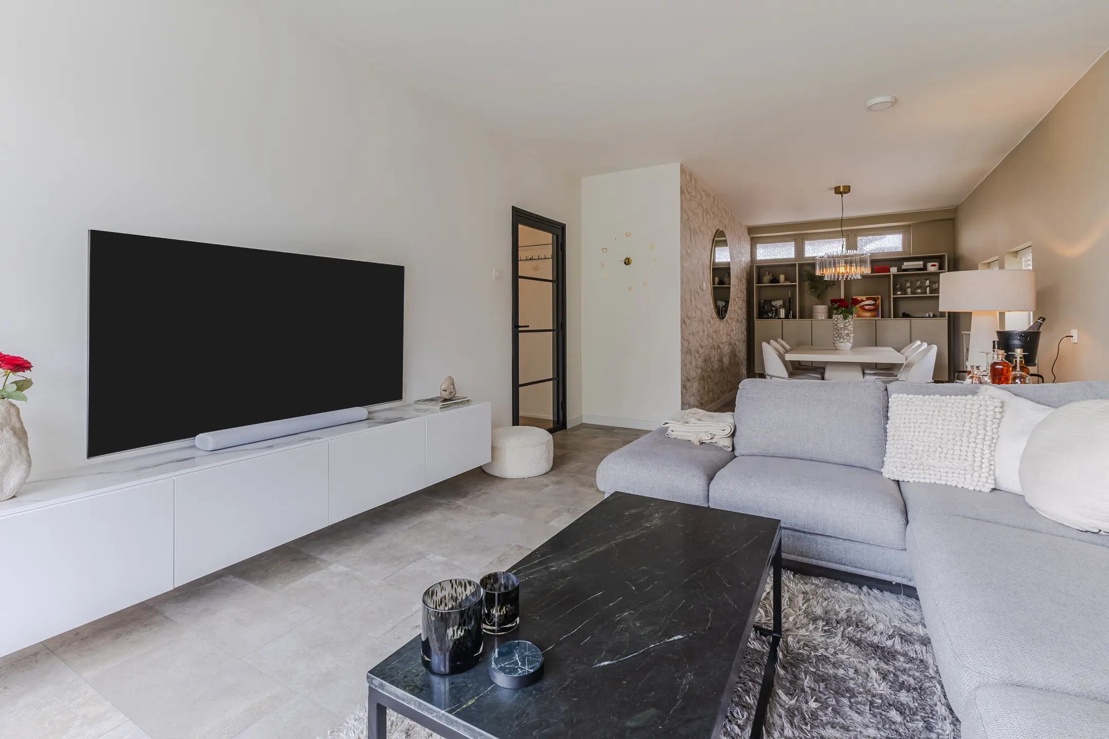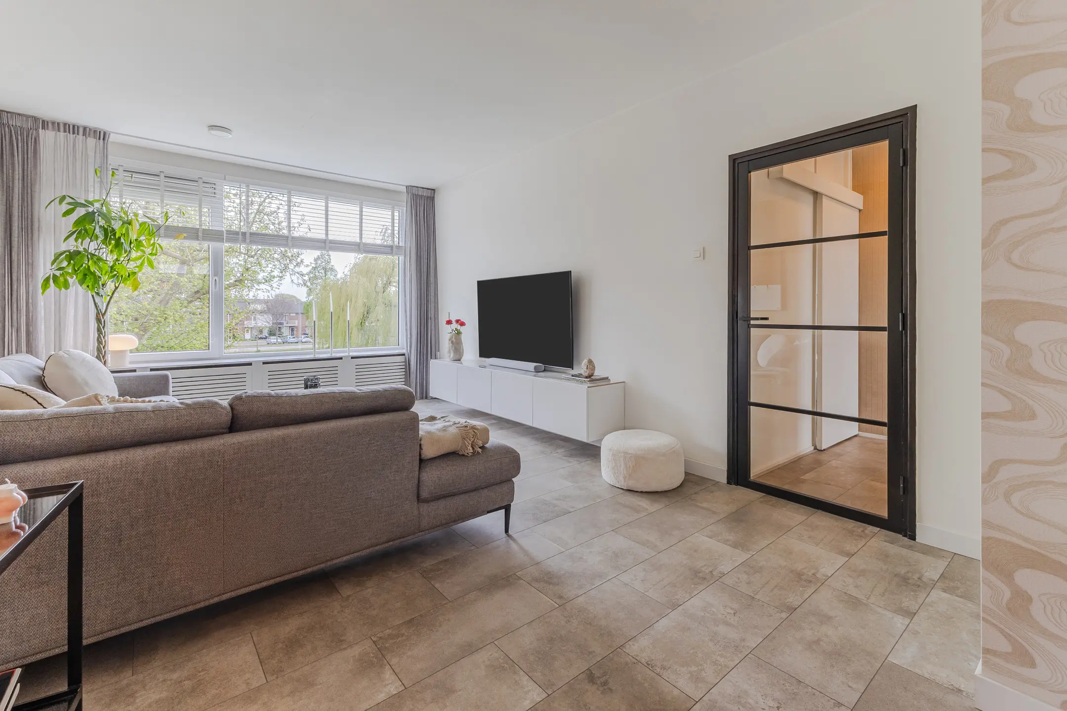 Dankzij het samenvoegen van een extra kamer is er een ruime woonkamer ontstaan. Het resultaat? Een heerlijke leefruimte met daglicht van beide kanten – ideaal voor gezellige avonden met vrienden of gewoon lekker ontspannen na een drukke dag.