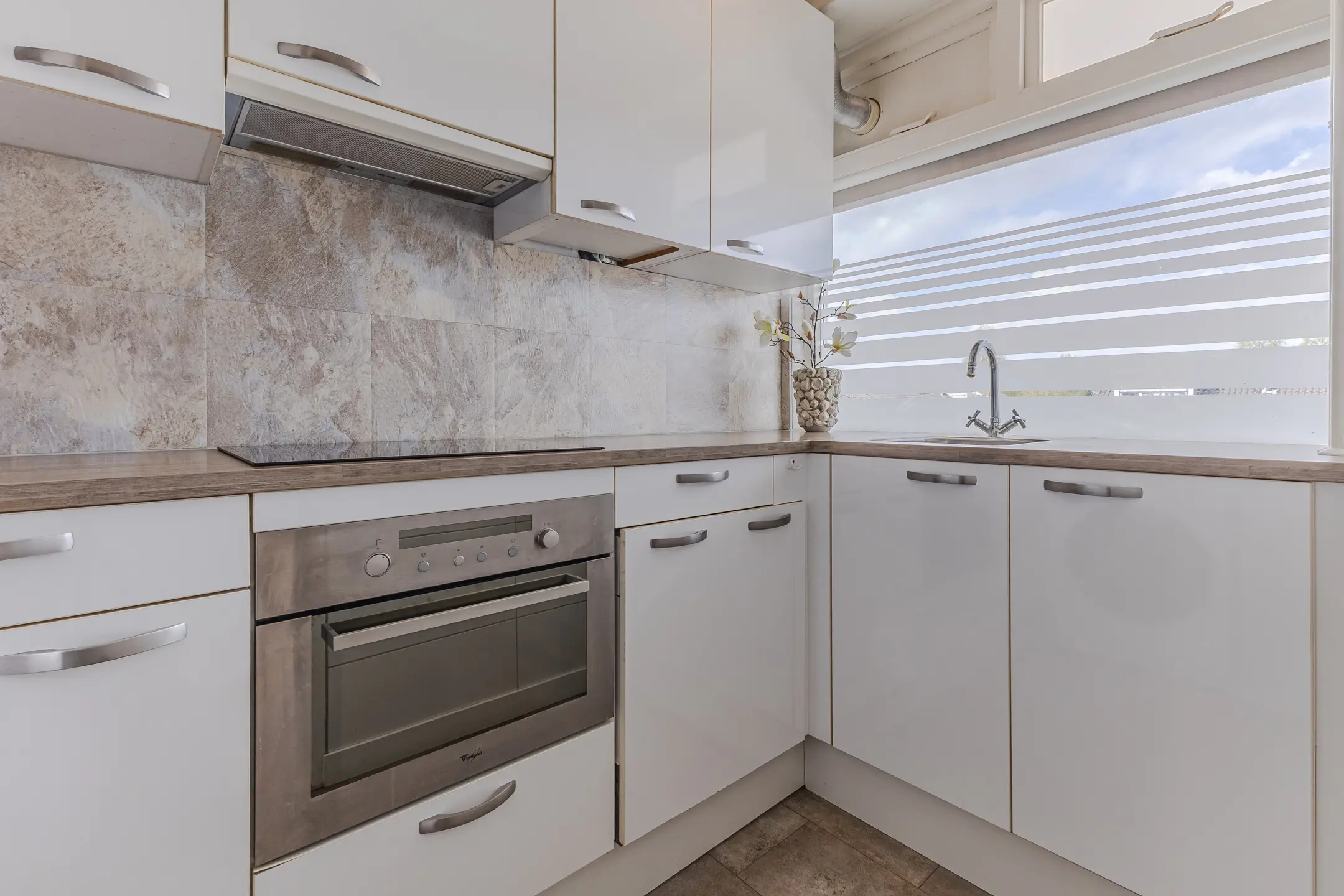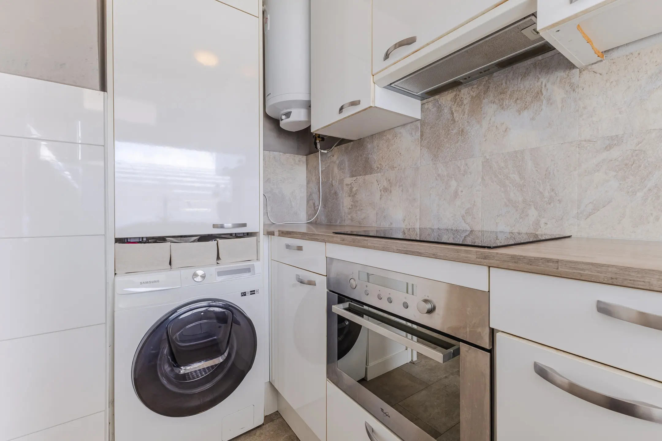De keuken aan de voorzijde is uitgerust met moderne gemakken zoals een inductiekookplaat, vaatwasser en combimagnetron. Hier kook je met plezier! Ook handig: de wasmachineaansluiting en boiler zijn hier netjes geplaatst.