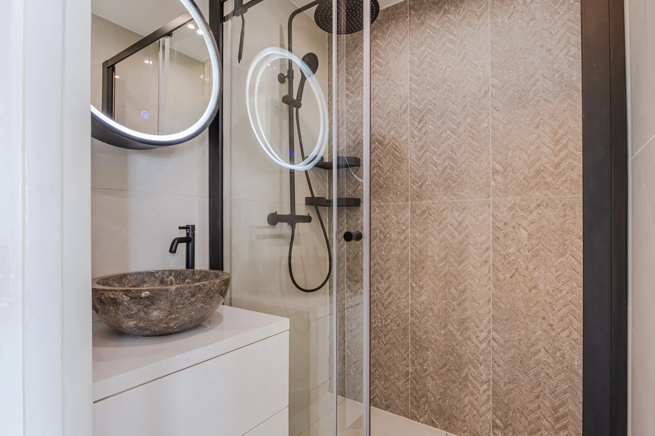 De badkamer is modern en compleet met inloopdouche, wastafelmeubel en ventilatie. Daarnaast is er een separaat toilet – altijd prettig.