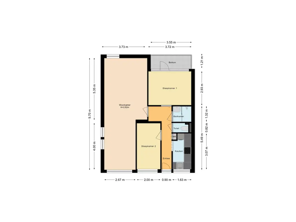 Woonoppervlakte: ca. 69 m²