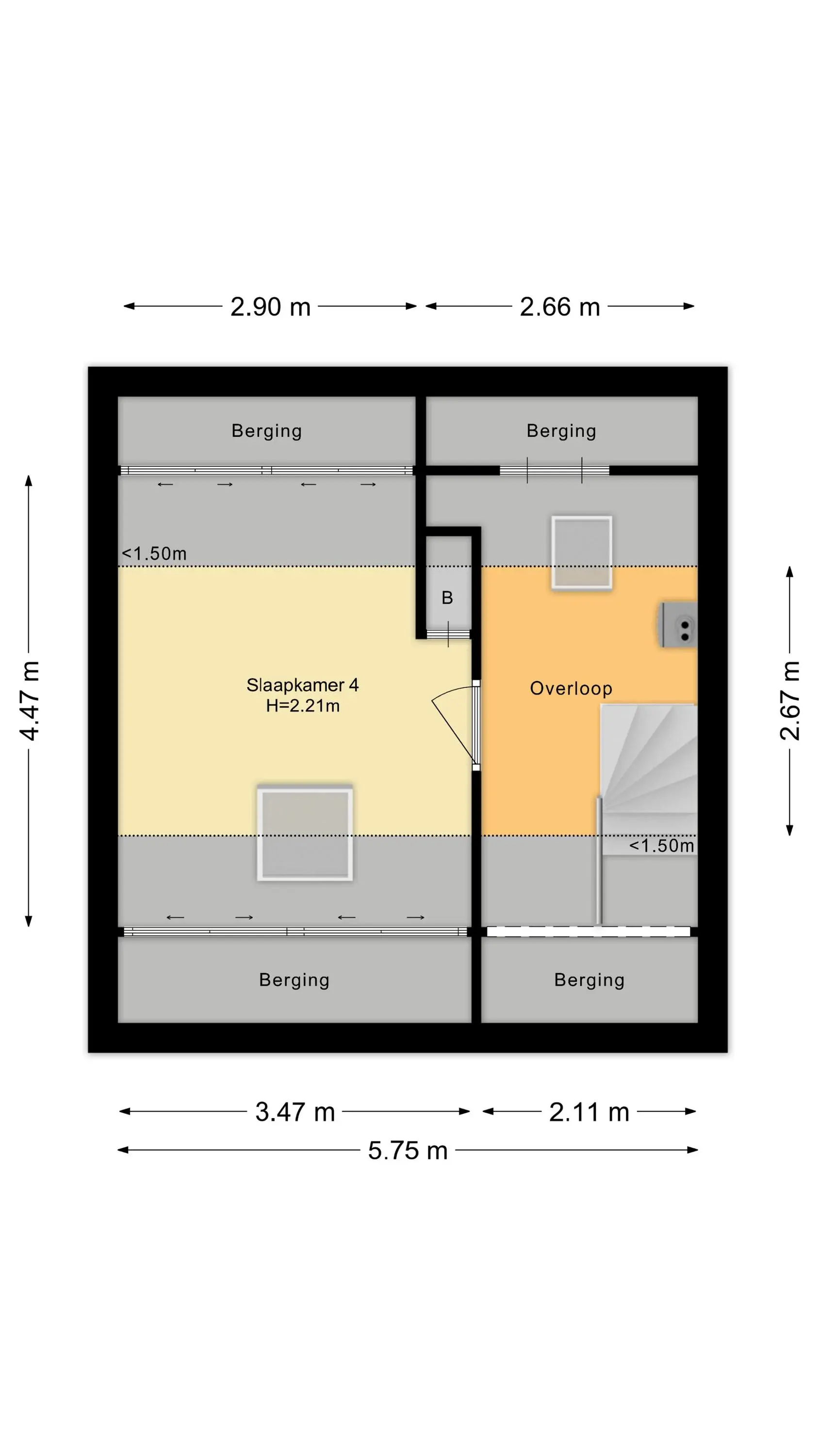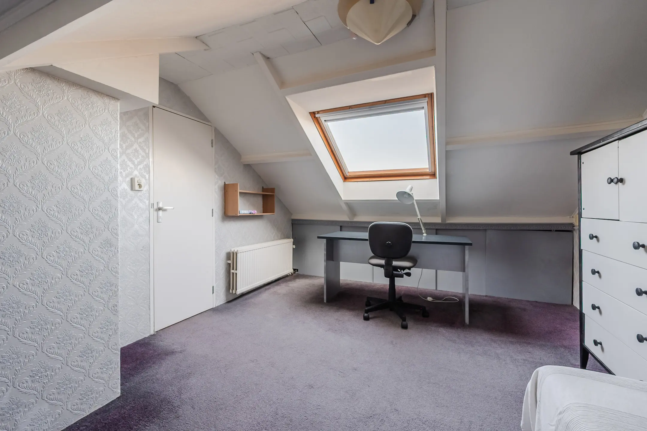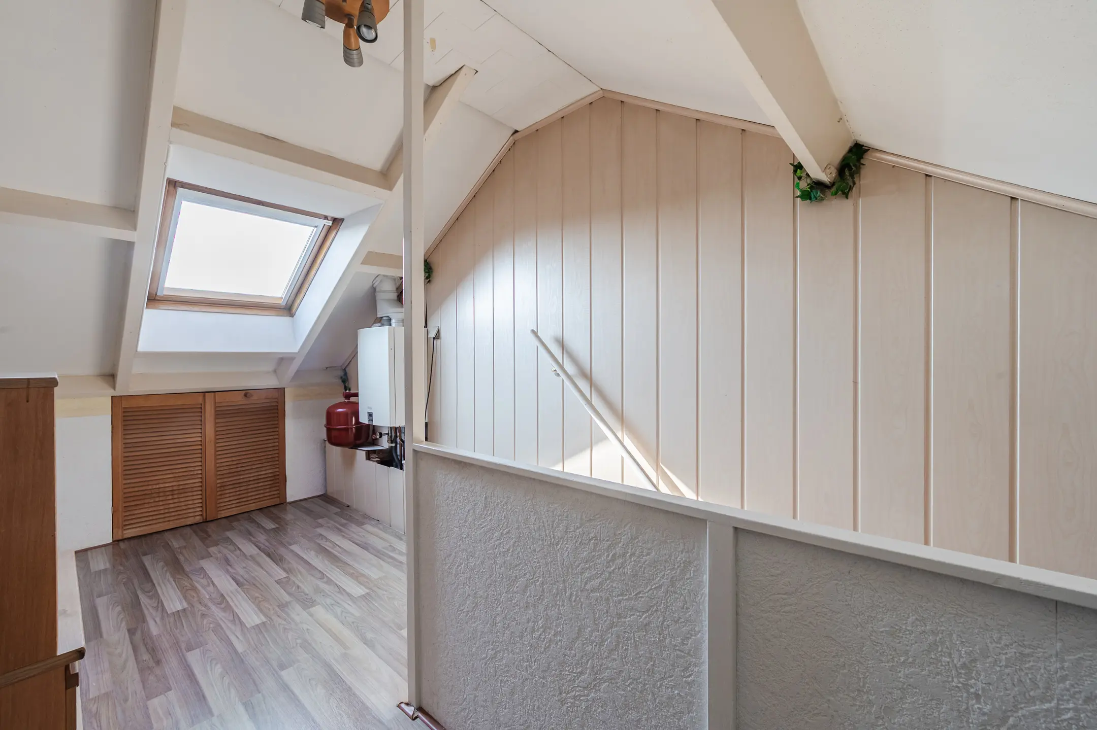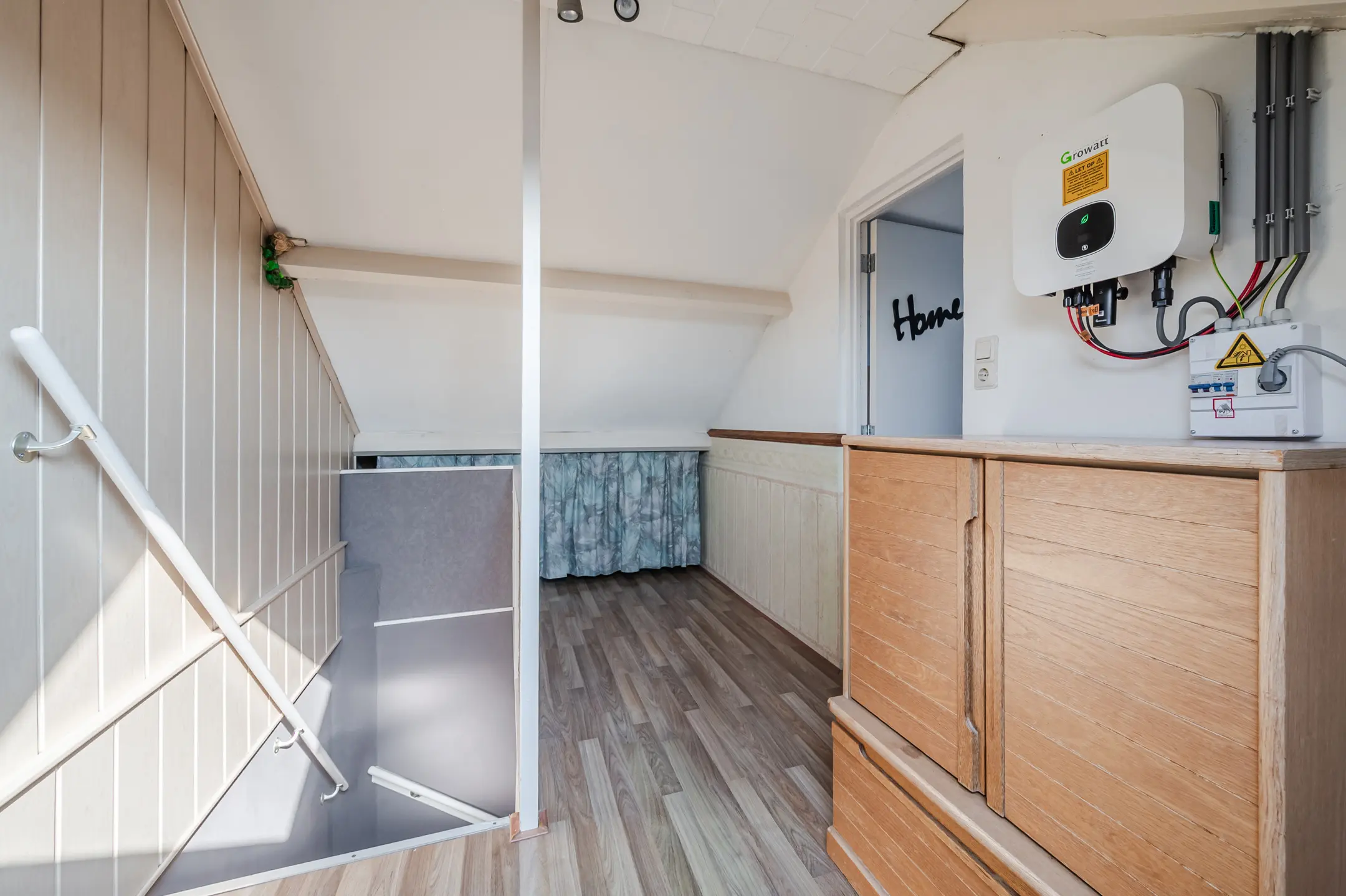 Via een vaste trap bereik je de tweede verdieping. Hier bevindt zich de voorzolder met een dakraam, de opstelplaats van de CV-ketel (Remeha Avanta, 2015). Daarnaast is hier de vierde slaapkamer, voorzien van een dakraam en praktische bergruimte onder het schuine dak.