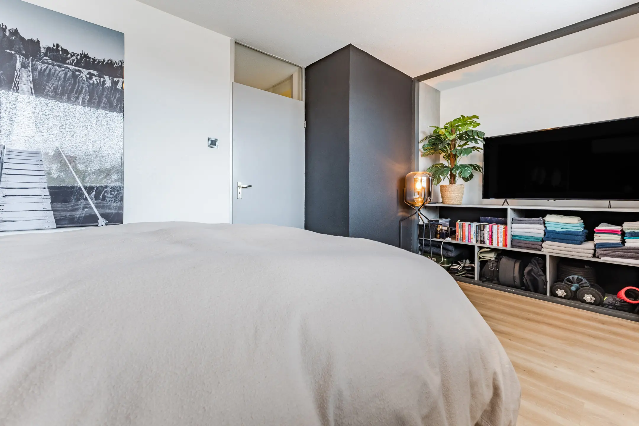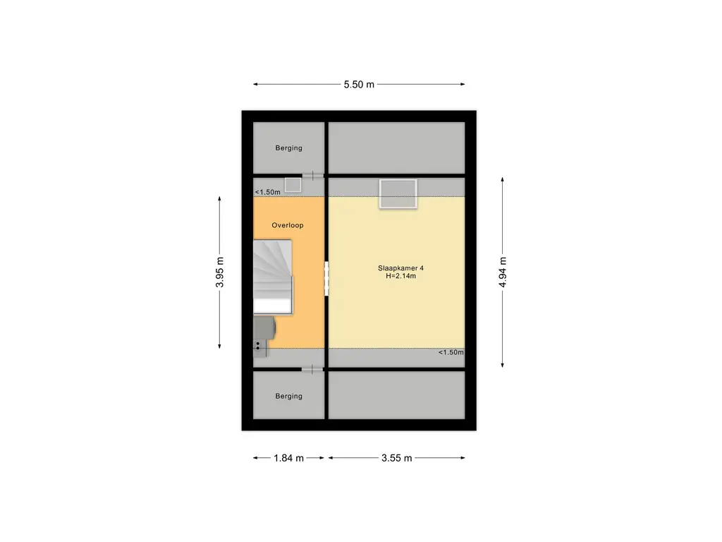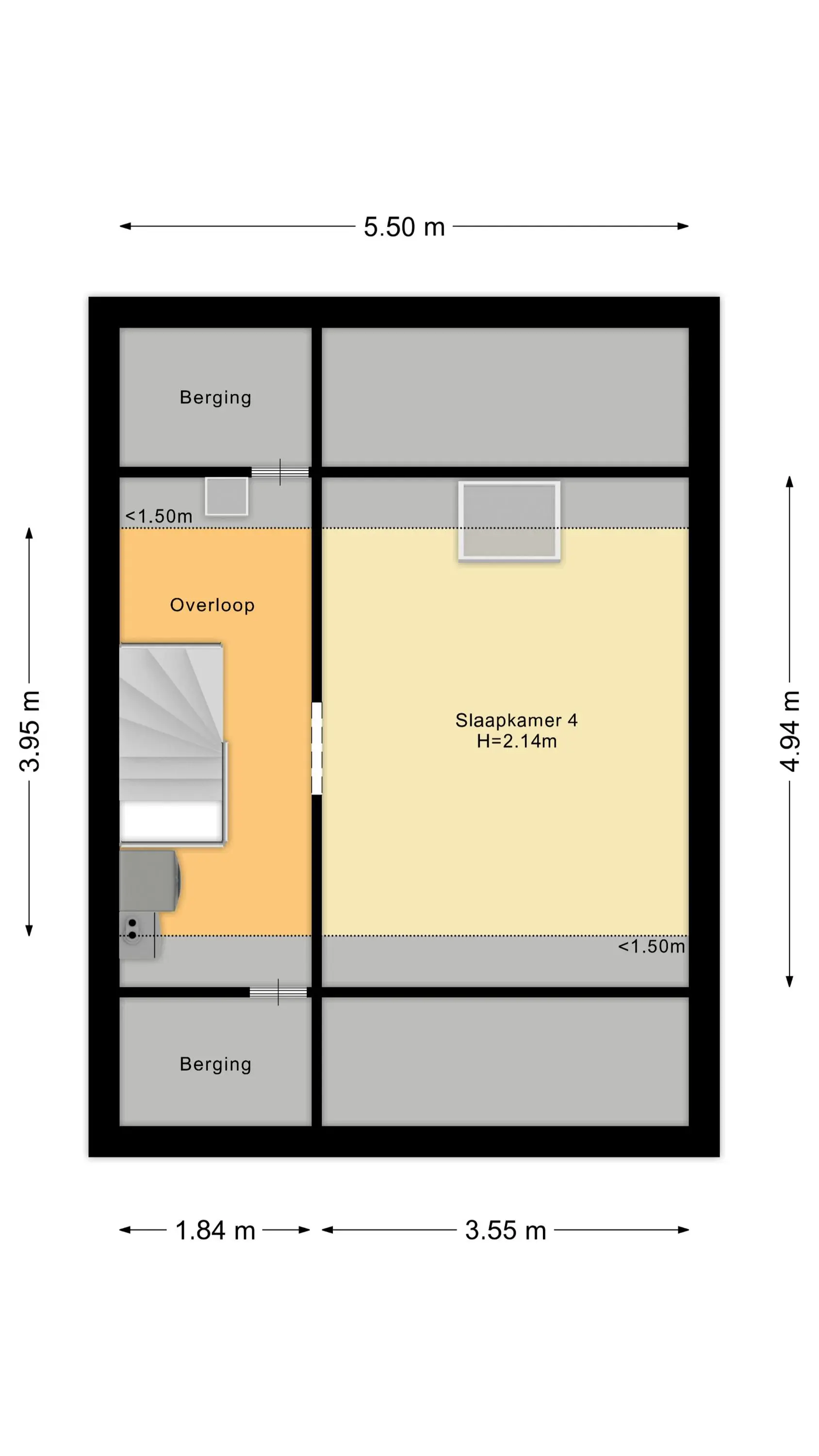 Daarnaast is er een vierde slaapkamer met groot dakraam en extra bergruimte achter de knieschotten.