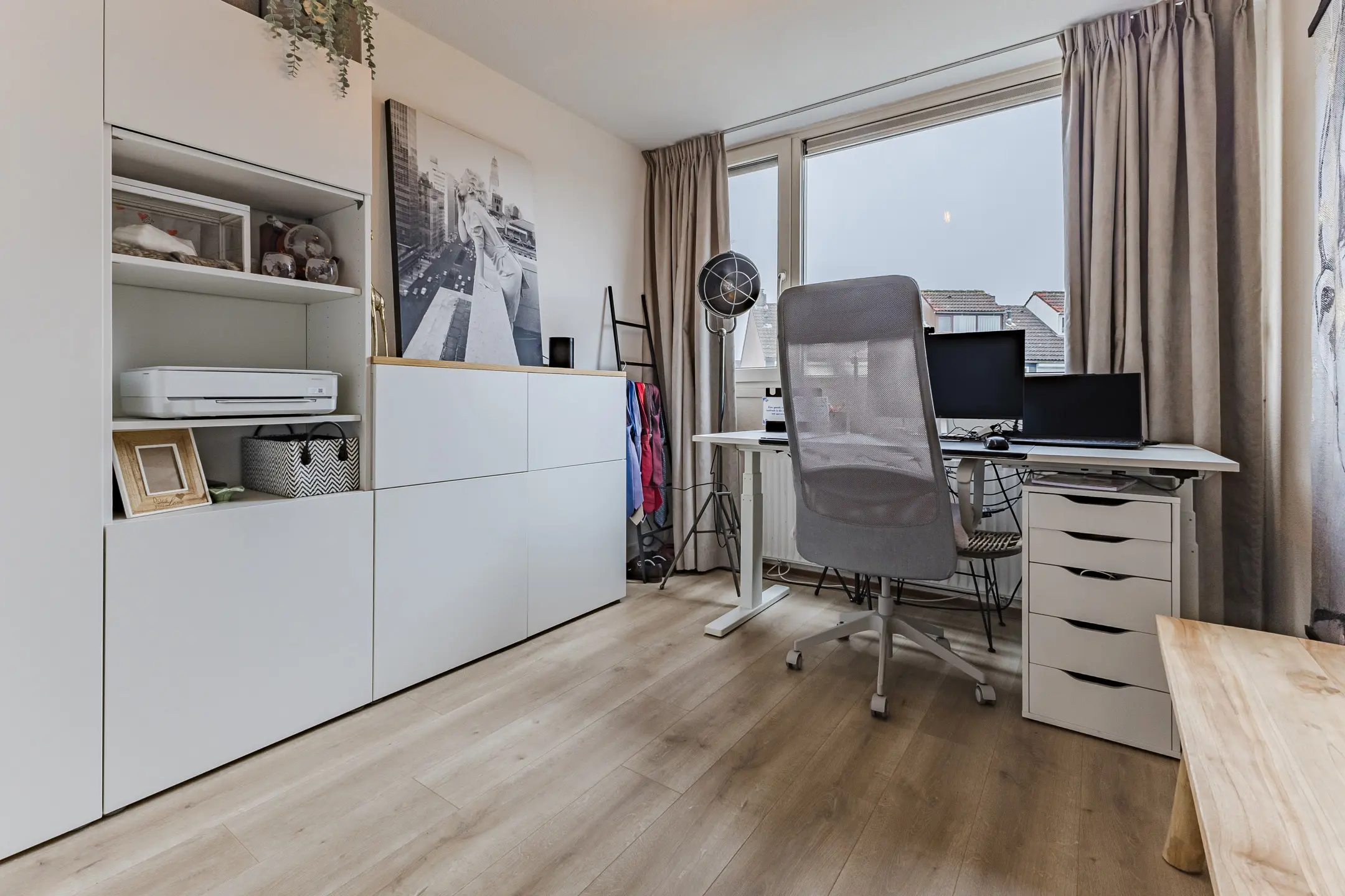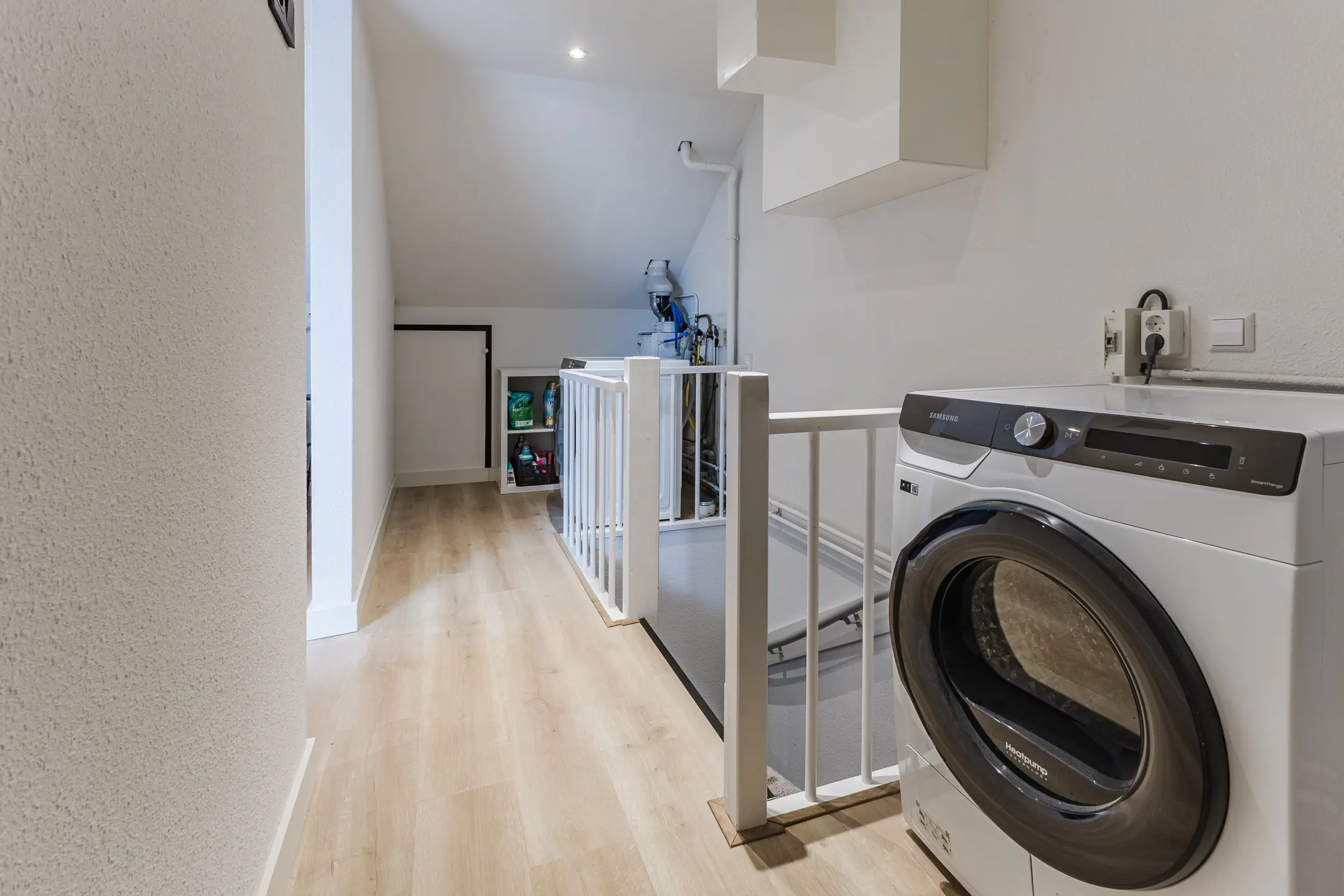 De tweede verdieping verrast met een grote overloop met dakraam voor extra lichtinval. Hier bevinden zich de aansluitingen voor wasmachine en droger, de HR cv-ketel en de mechanische ventilatie.