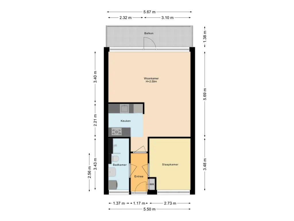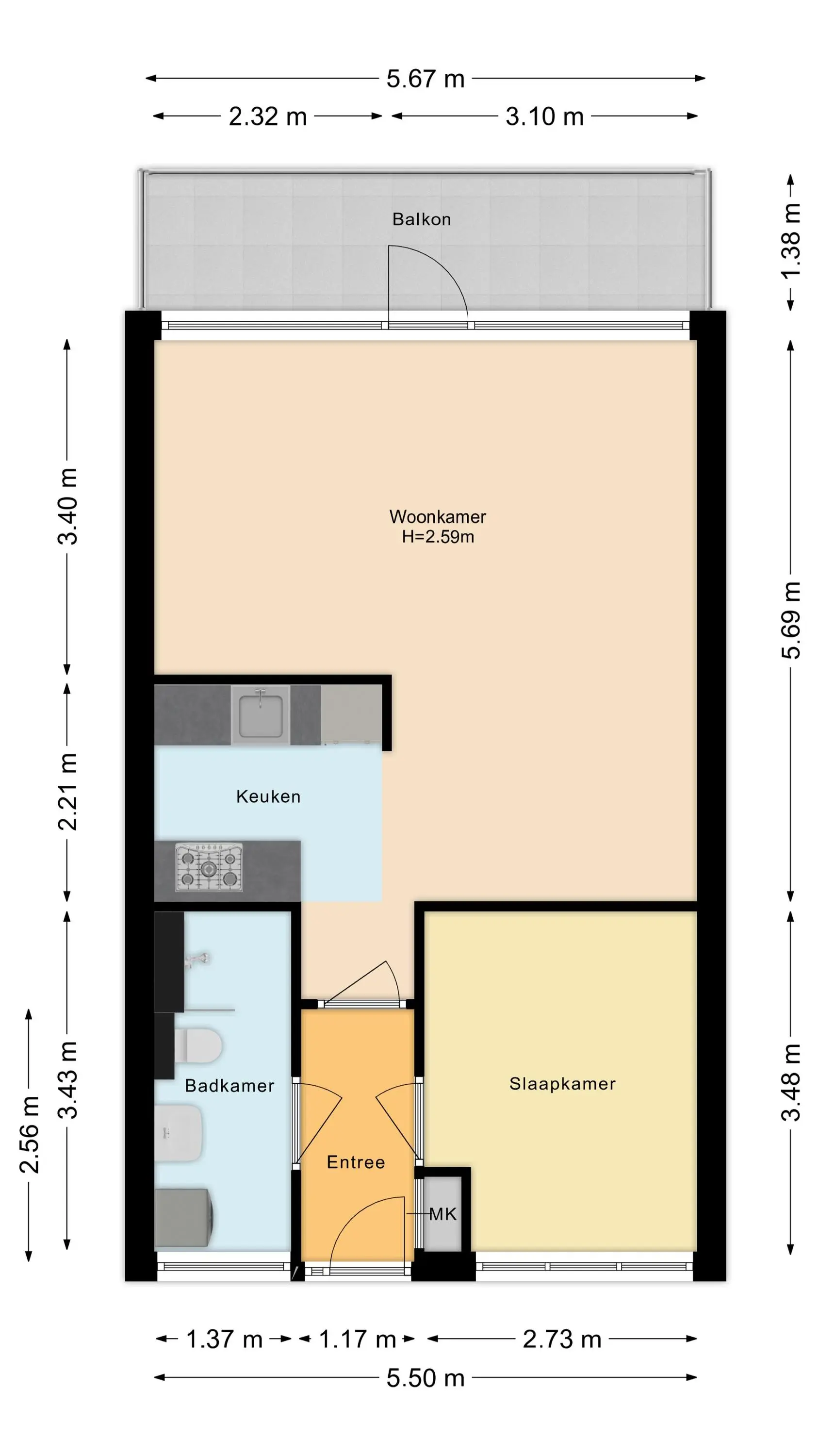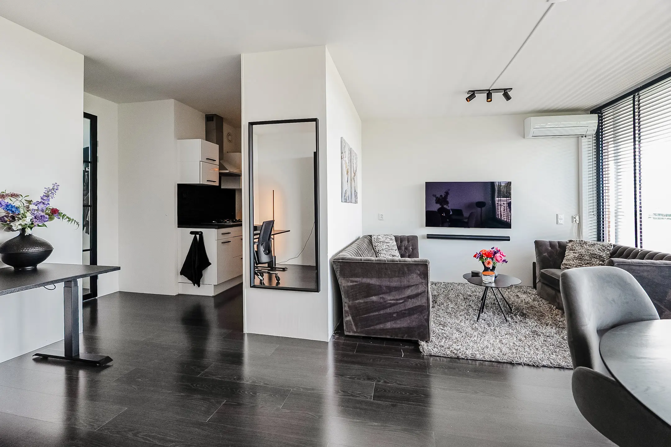 Zodra je binnenkomt, merk je hoe ruim en licht de woonkamer aanvoelt. Grote ramen zorgen voor een zee van daglicht en het balkon vormt een verlengstuk van je leefruimte – een heerlijke plek om te ontspannen en te genieten van de zon. De half open keuken grenst direct aan de woonkamer en zorgt voor een fijne verbinding tussen koken en wonen.