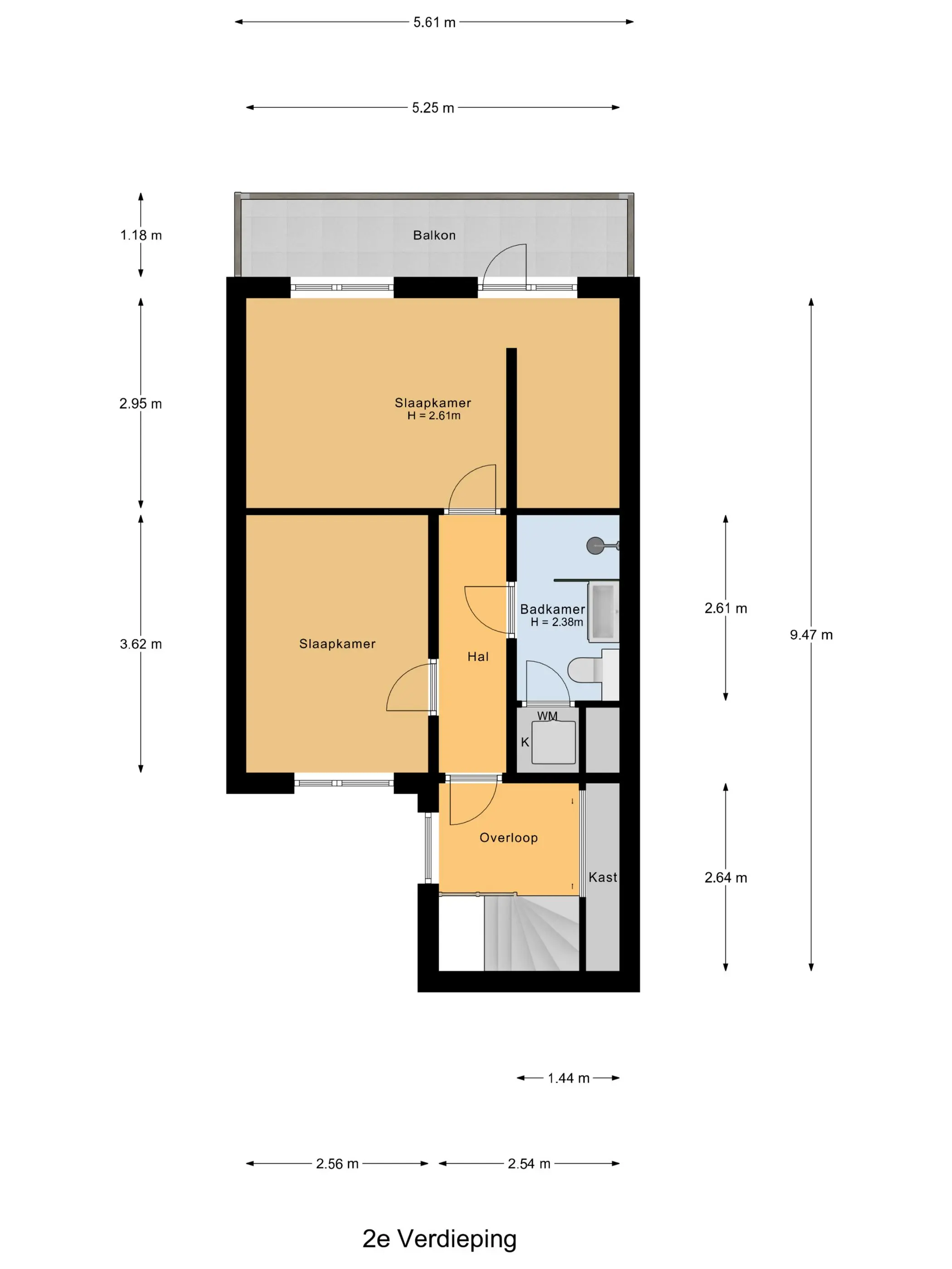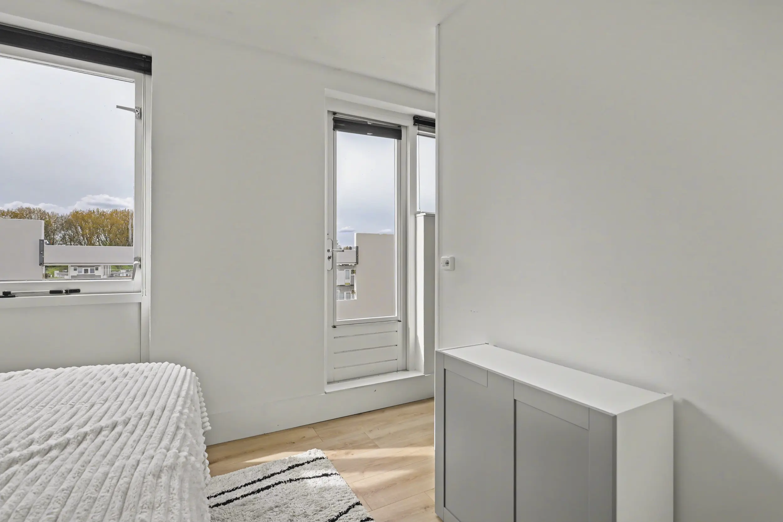 De eerste slaapkamer is royaal van formaat en beschikt over een inloopkast. Vanuit deze kamer is er directe toegang tot het tweede balkon, dat eveneens gunstig op het westen is gelegen. De tweede slaapkamer heeft eveneens een prettig formaat en is netjes afgewerkt. Beide slaapkamers zijn voorzien van een laminaatvloer.