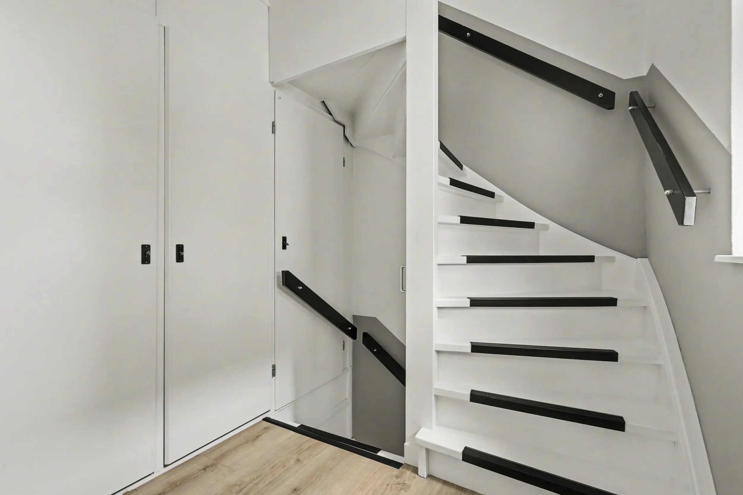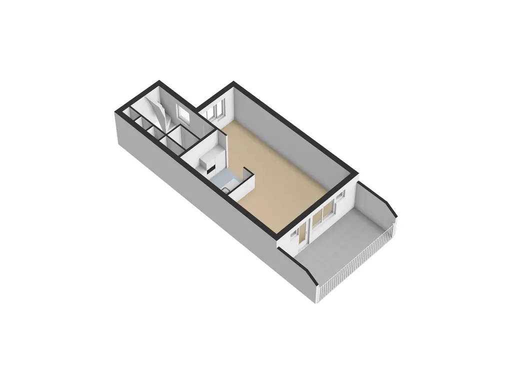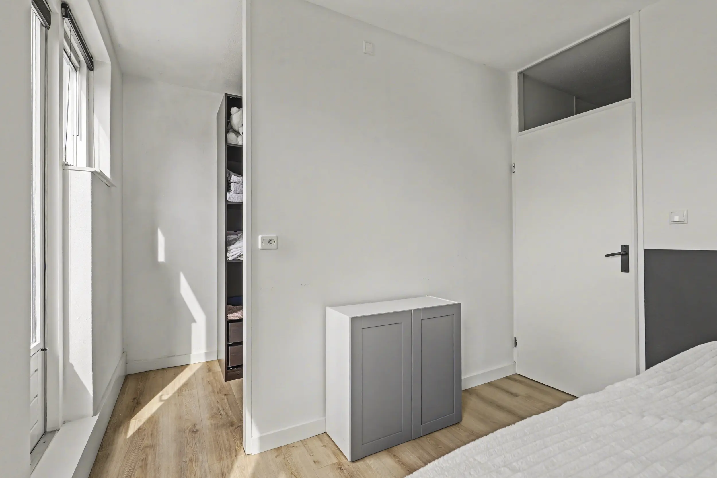 De derde verdieping beschikt over een ruime en lichte overloop met vaste kast, wat zorgt voor extra bergruimte.