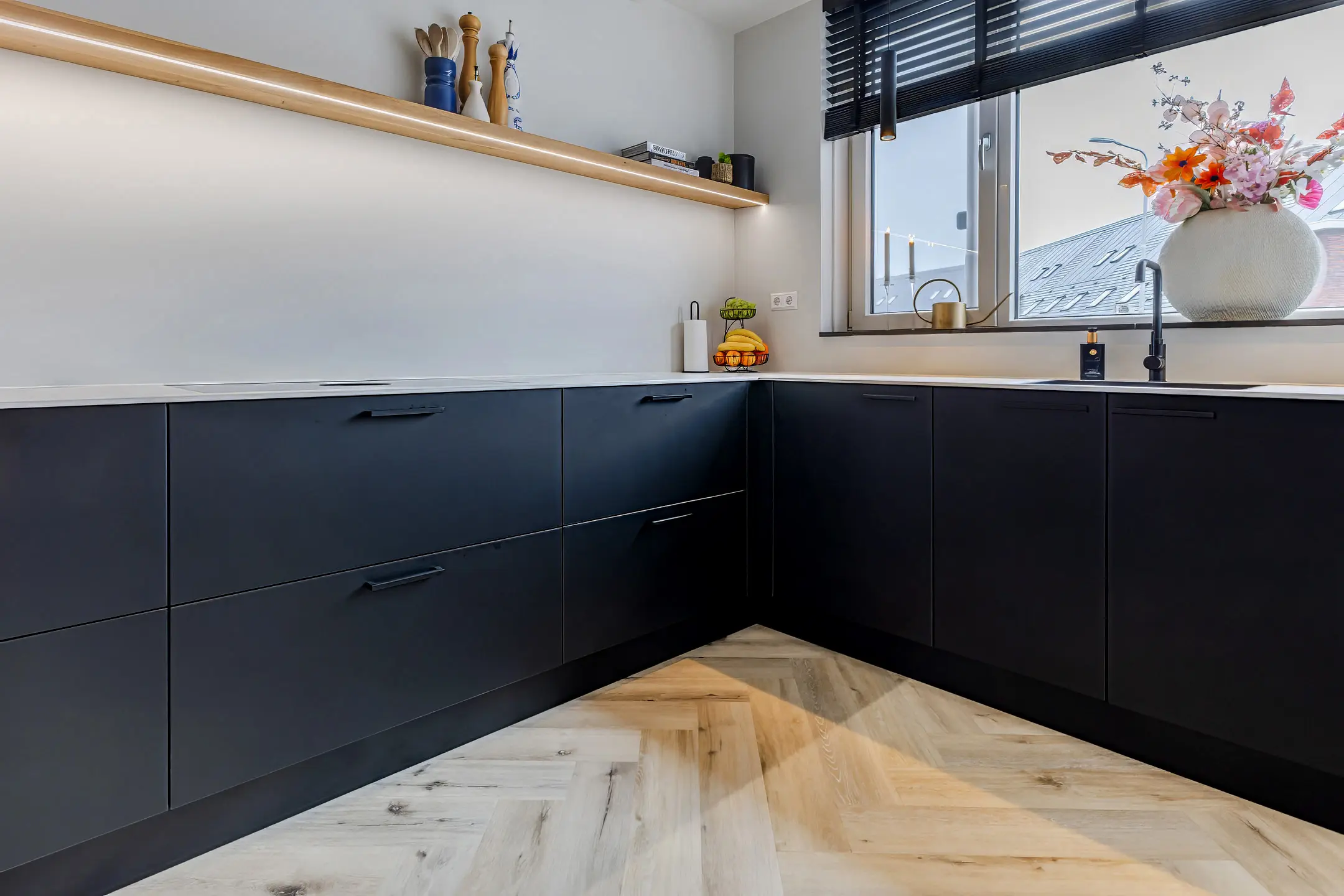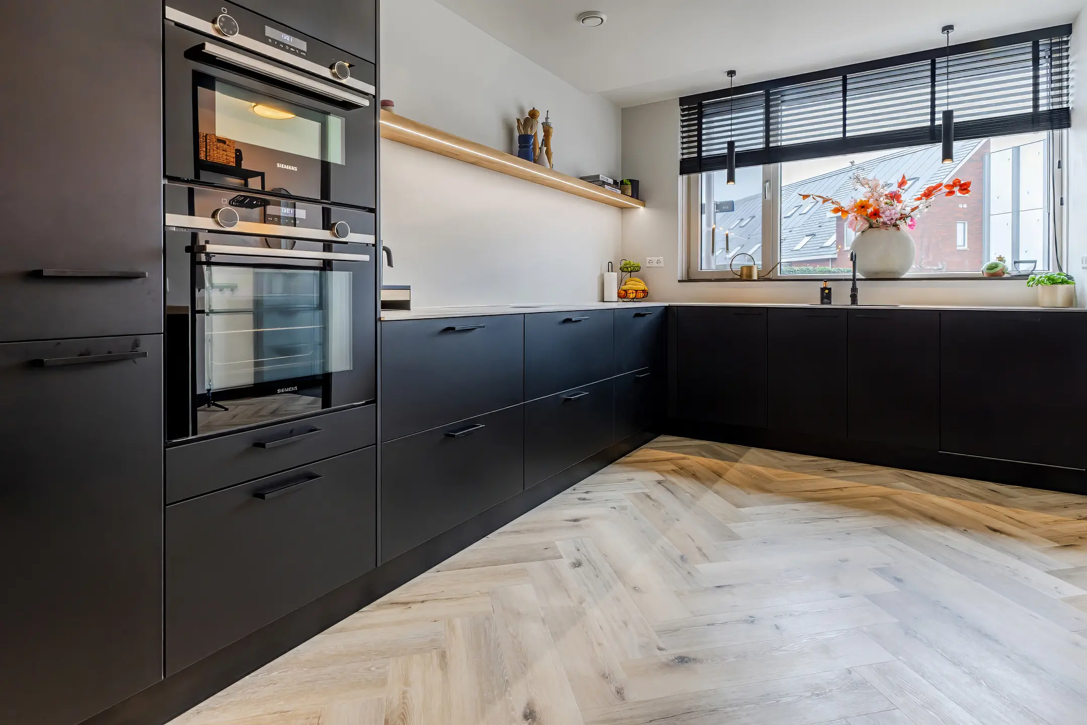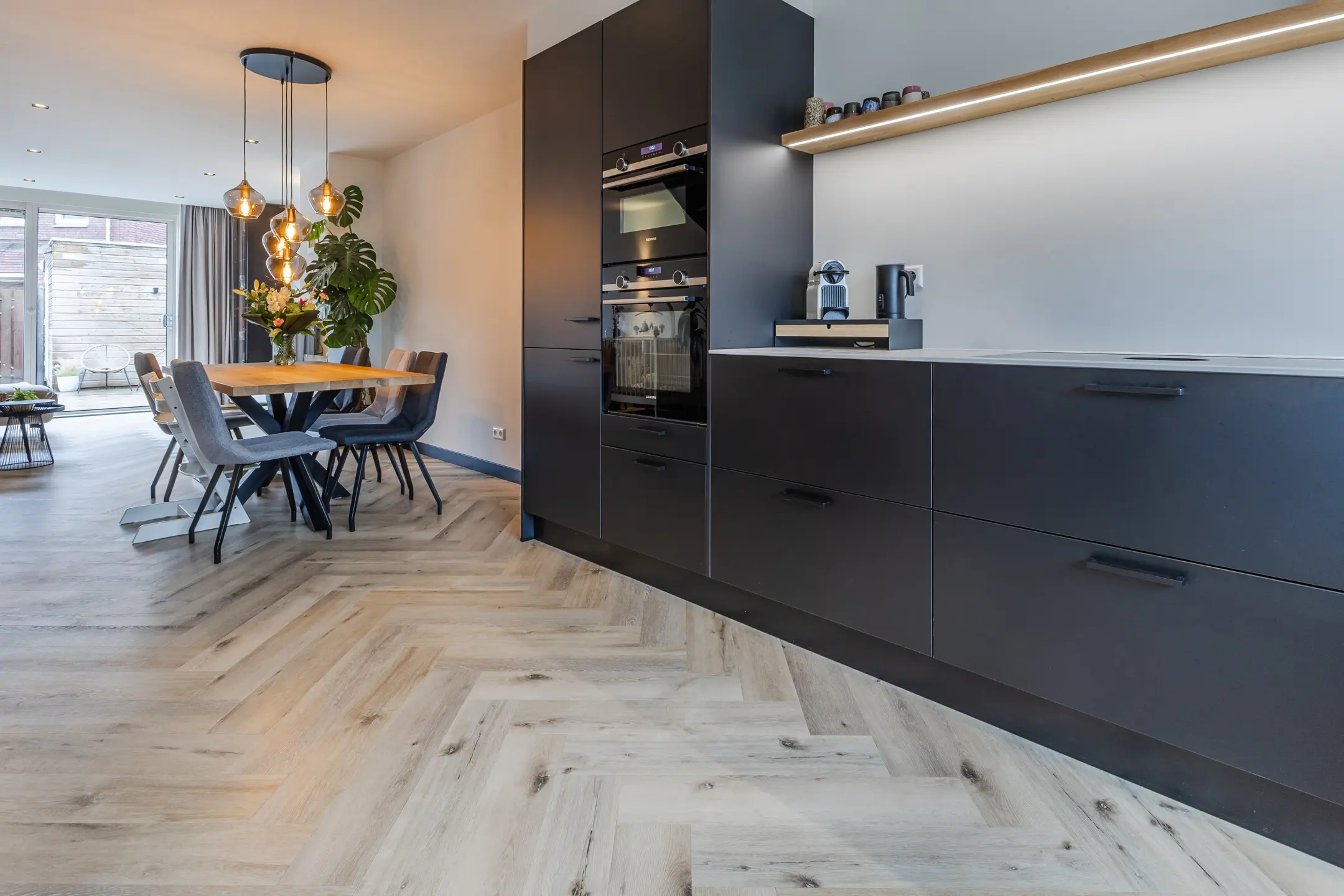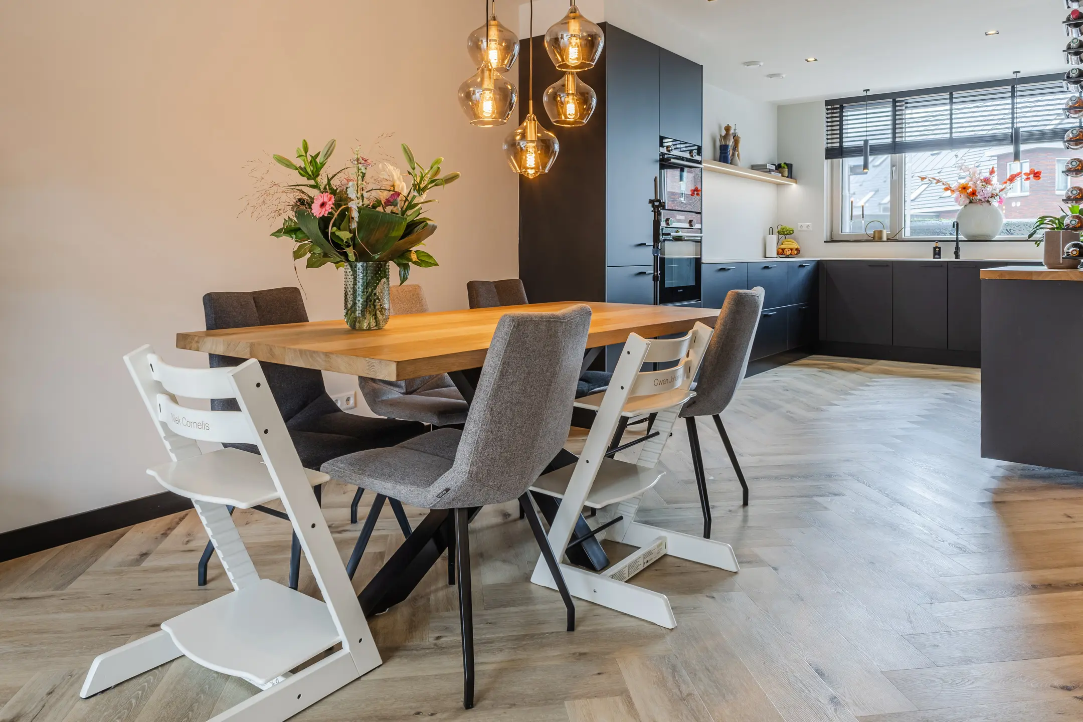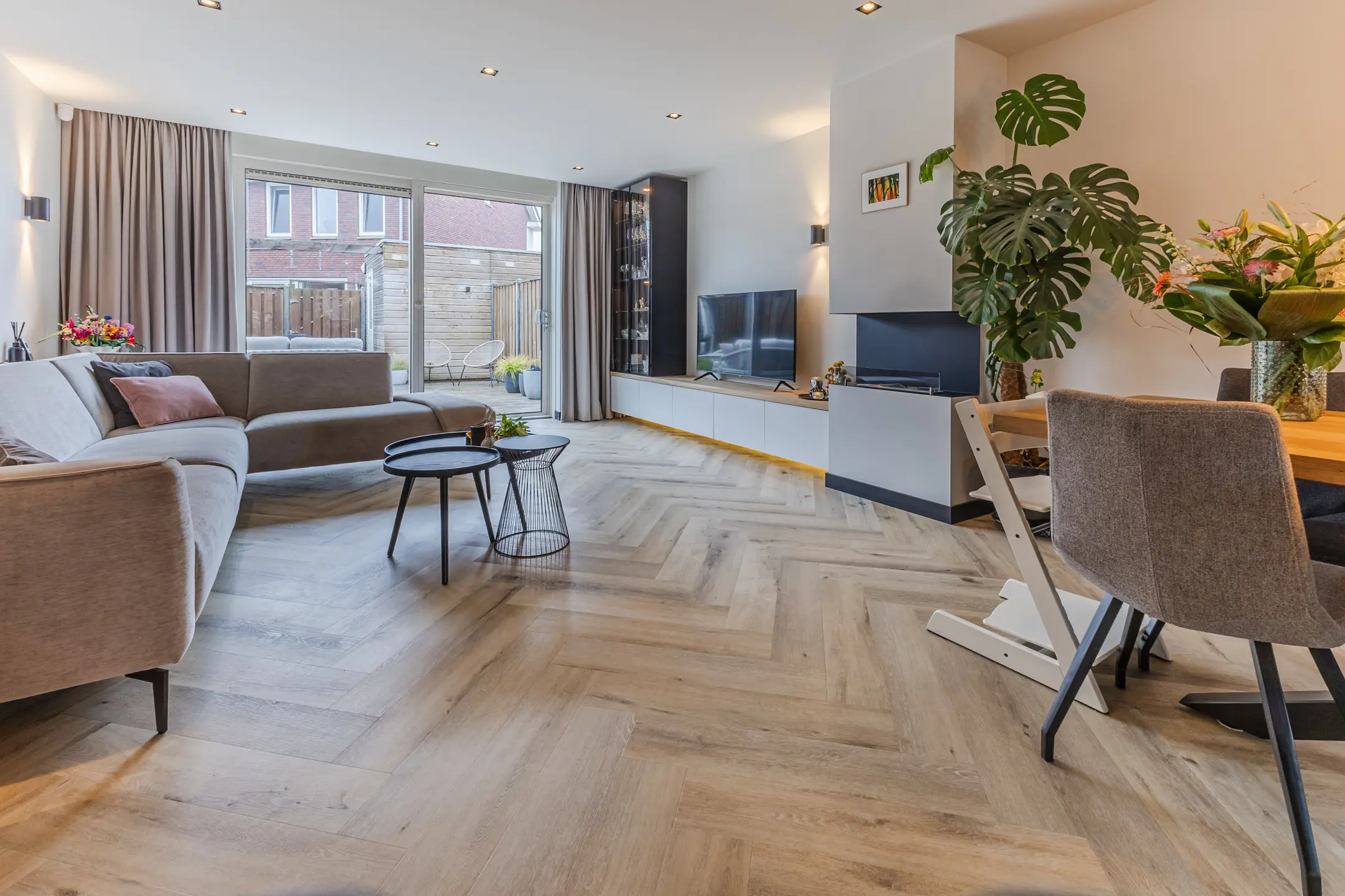 De royale, uitgebouwde woonkamer biedt een zee aan leefruimte en voelt door de warme afwerking en het vele daglicht direct uitnodigend aan. Aan de voorzijde ligt de moderne keuken, uitgerust met kwaliteitsapparatuur zoals een koelkast, vriezer, oven, combimagnetron, vaatwasser en een inductiekookplaat met geïntegreerde Bora-afzuiging. Een droomplek voor kookliefhebbers!