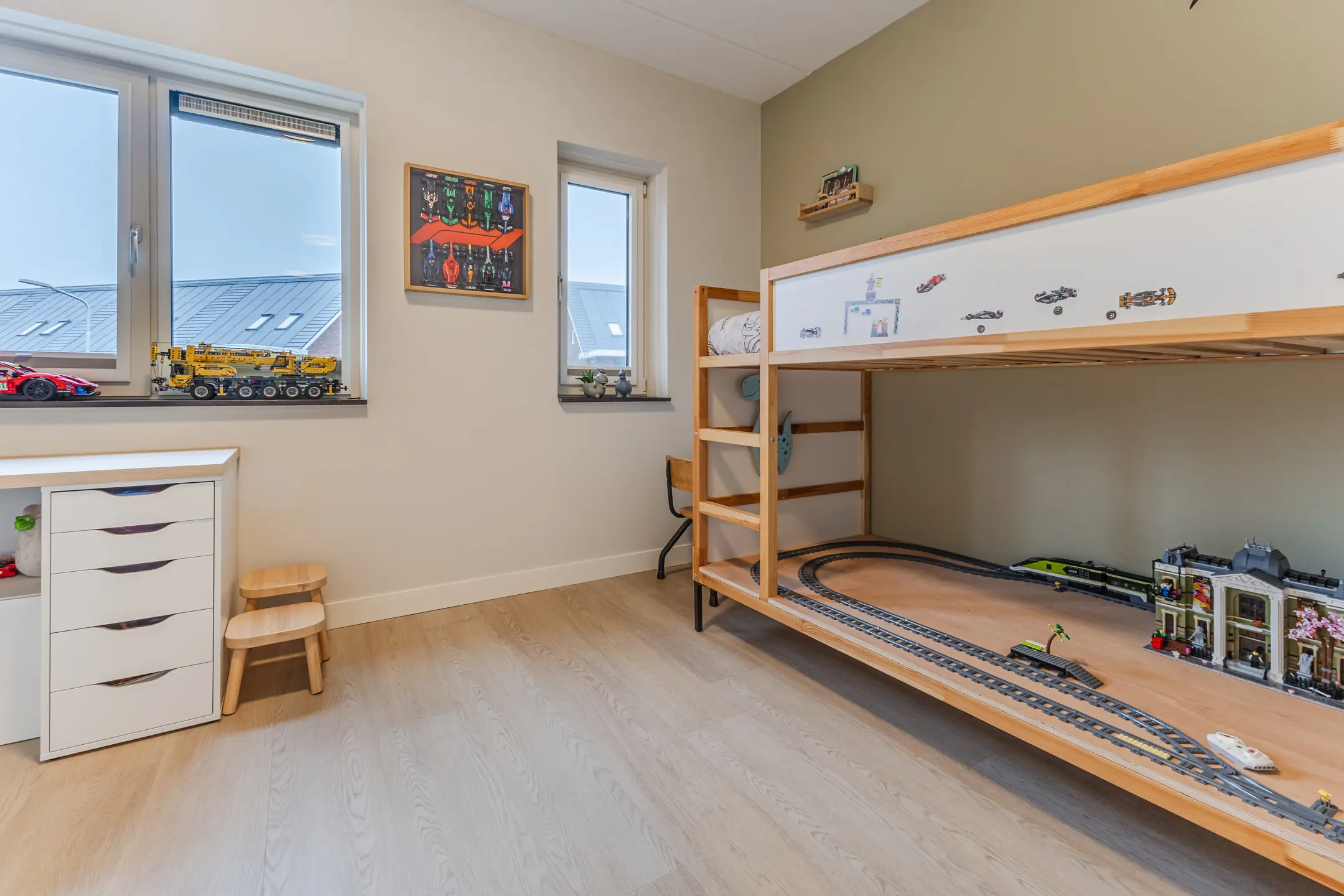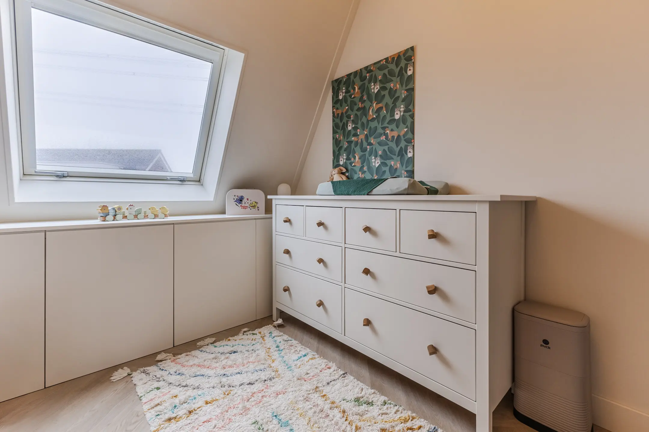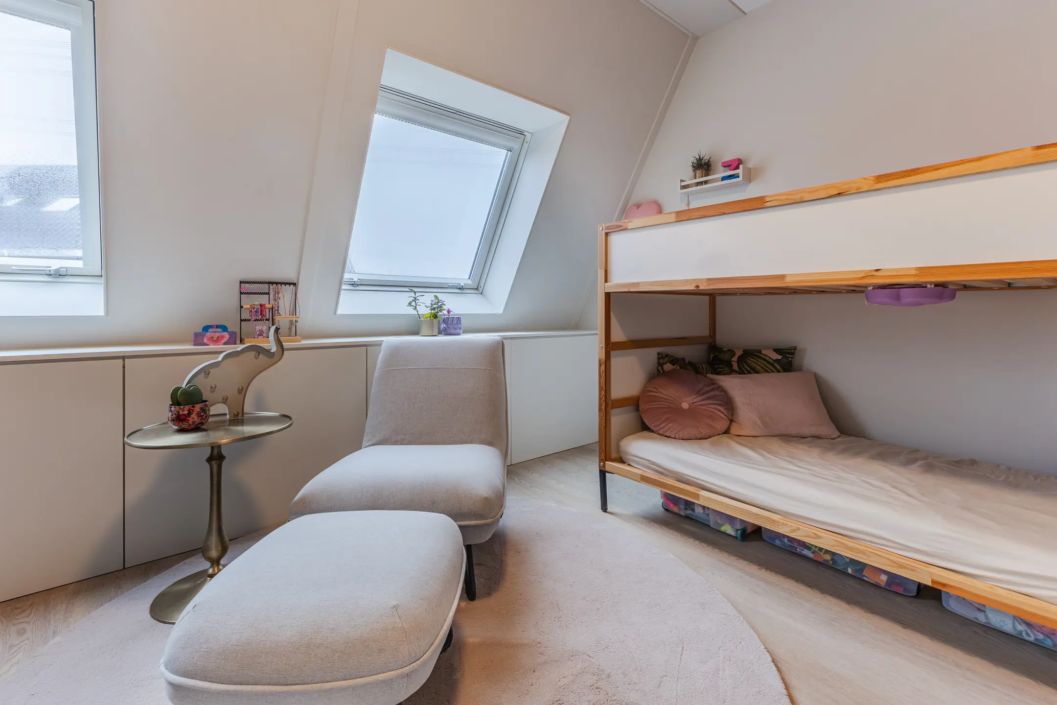 Met nog twee ruime slaapkamers en een aparte wasruimte is de tweede verdieping perfect voor werken, hobby’s of logees. De strakke afwerking maakt elke ruimte direct bruikbaar.