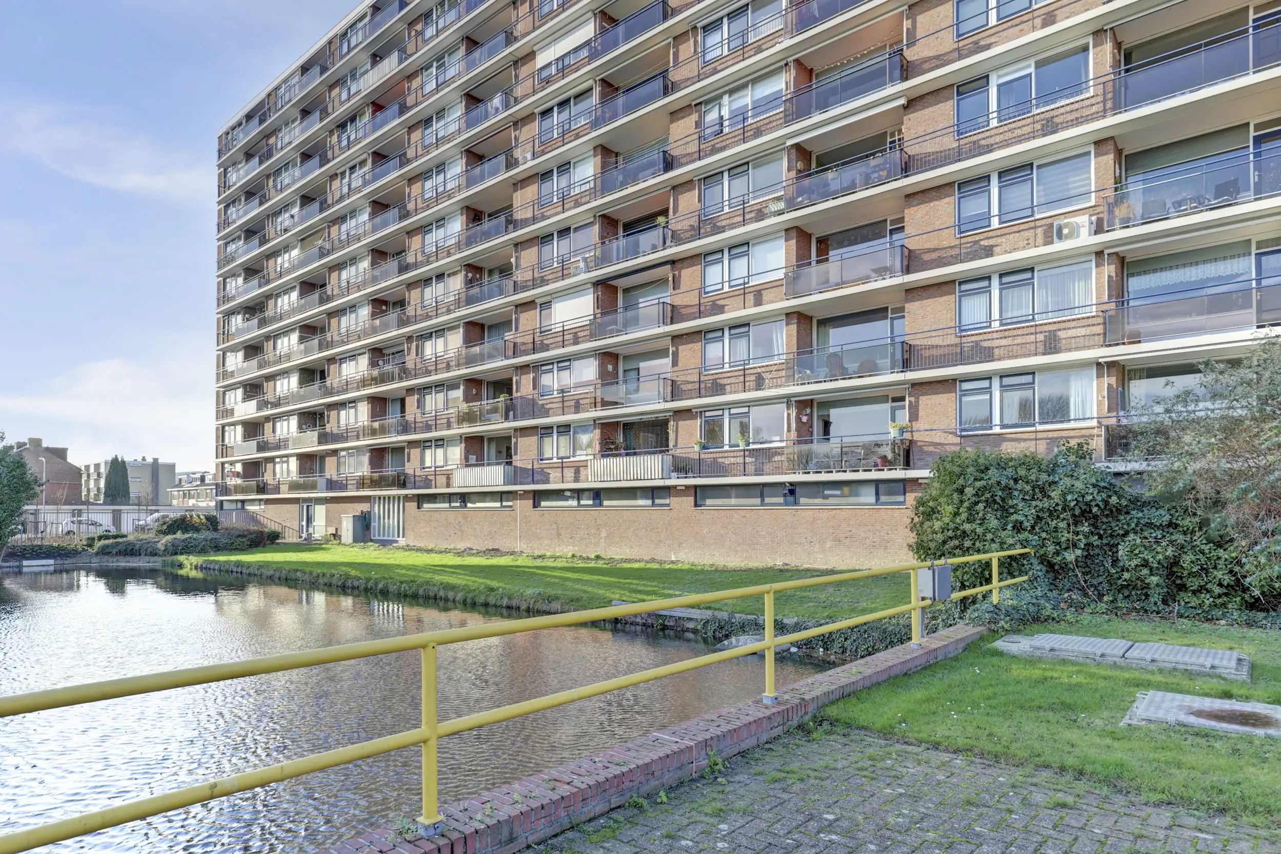 De woonkamer is heerlijk licht, met toegang naar het balkon, waar je heerlijk kunt genieten van het uitzicht over de vijver. Aan de achterzijde bevindt zich een ruime slaapkamer, die via een doorloop leidt naar een extra kamer die momenteel functioneert als (inloop)kast, maar natuurlijk ook prima als werk- of hobbykamer kan dienen.