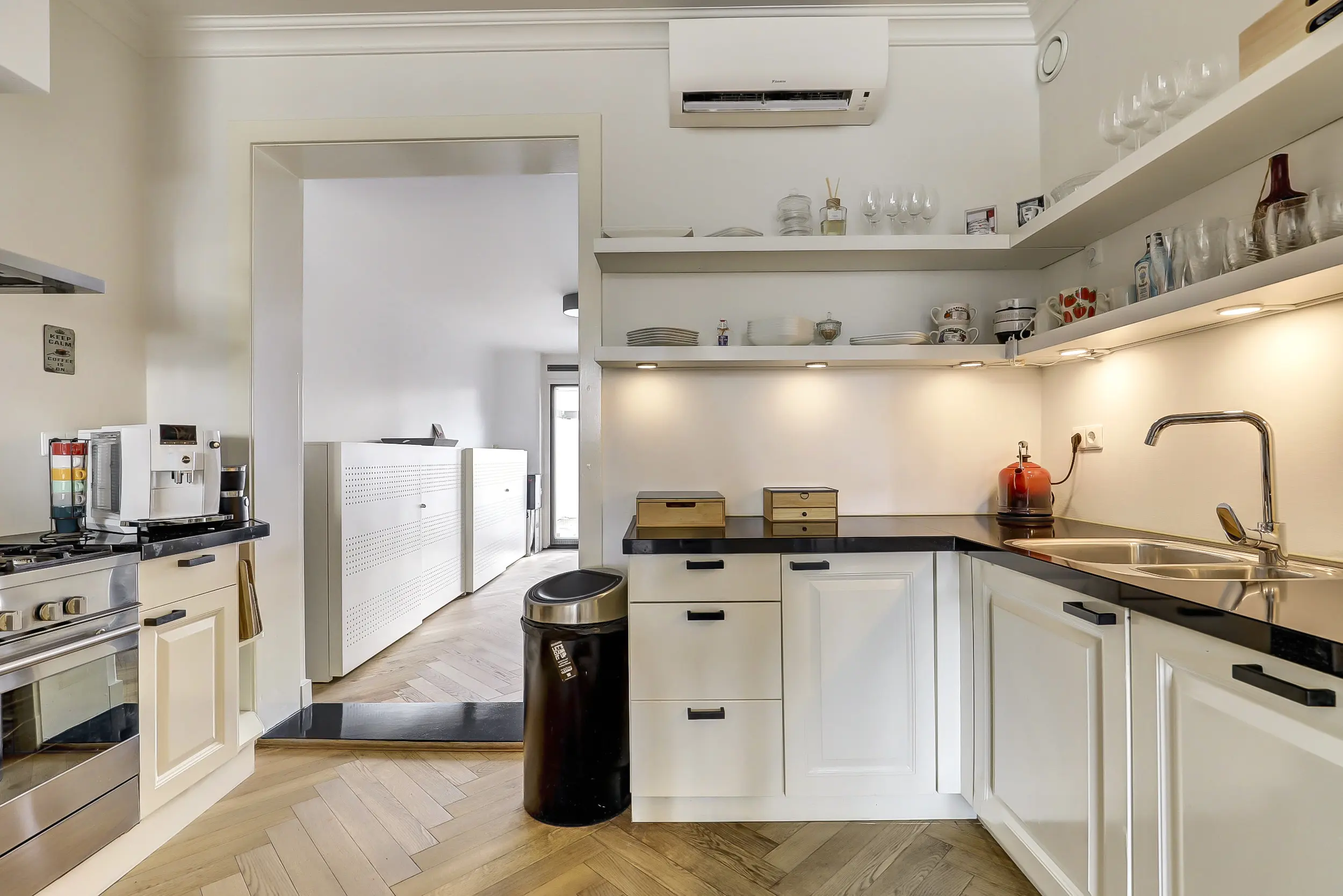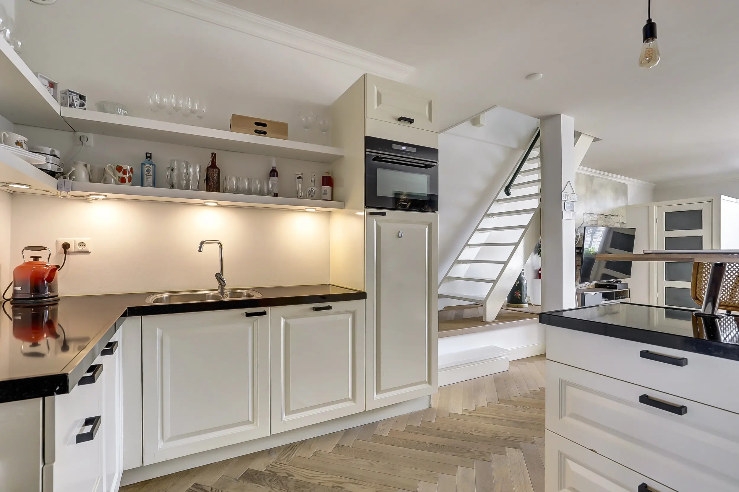 Achter de charmante gevel schuilt een verrassend ruime en tot in de puntjes afgewerkte woning waarin sfeer en luxe hand in hand gaan. Denk aan hoge plafonds, strak stucwerk, een visgraatvloer van echt hout en een uitgebouwde eetkamer met openslaande deuren naar de zonnige stadstuin.