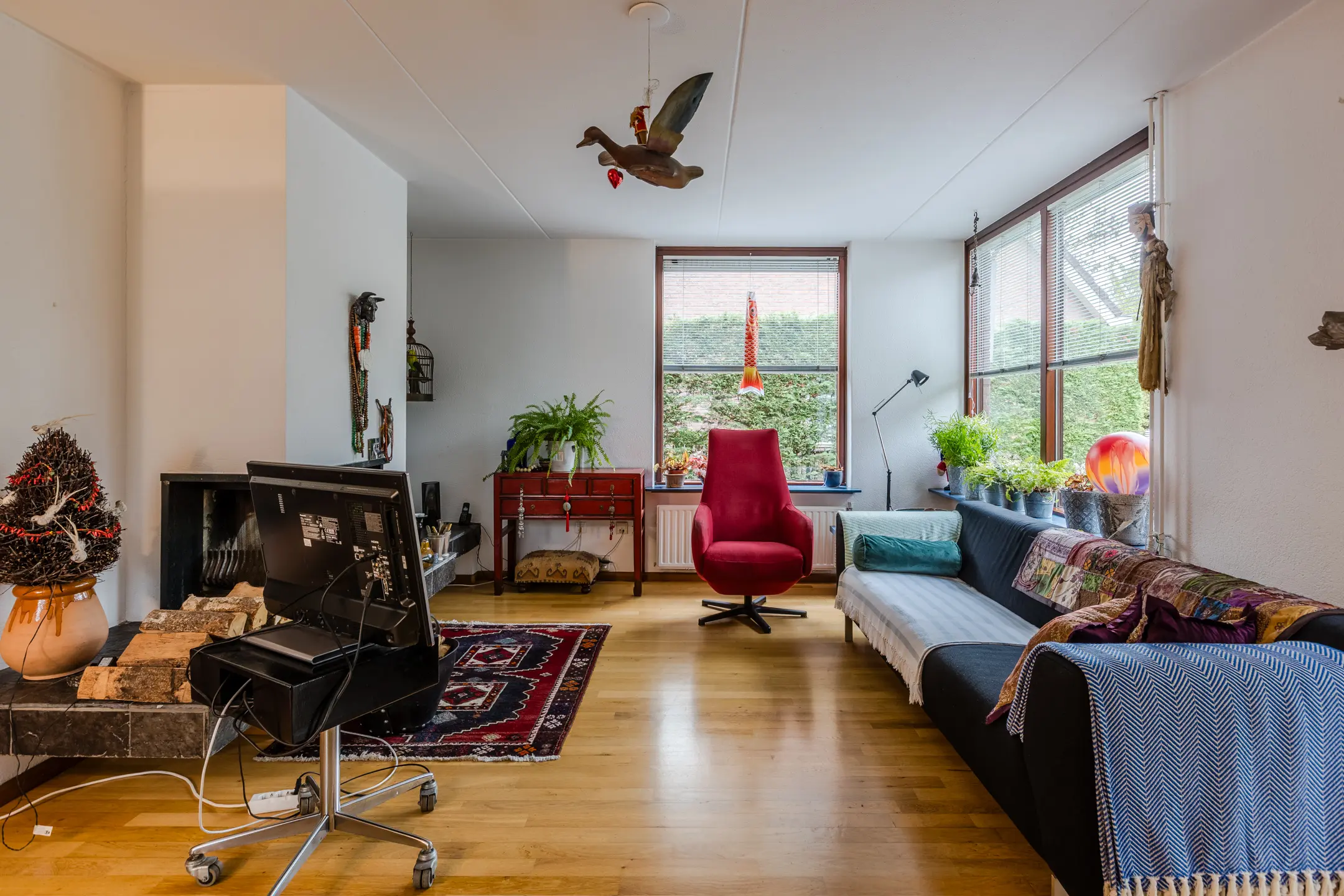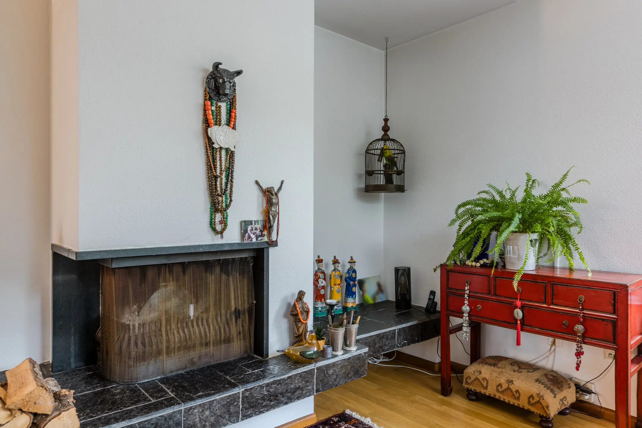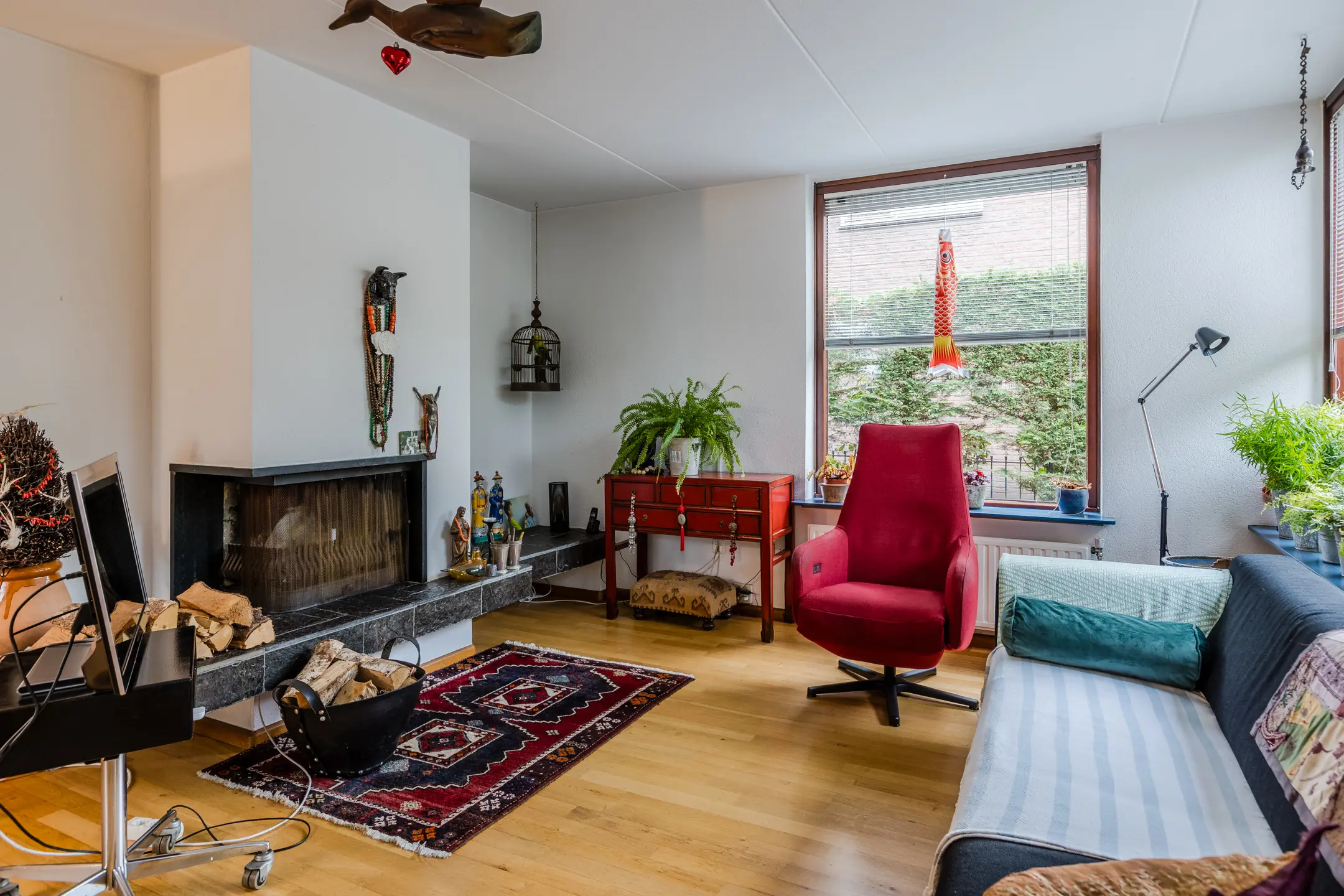 Sfeervolle woonkamer met open haard