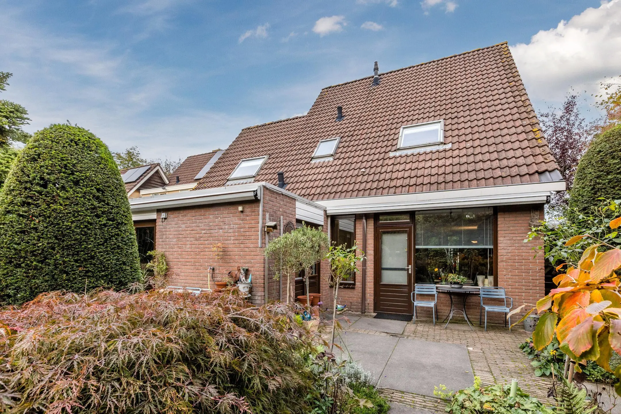 Rondom de woning ligt een verzorgde voortuin, een ruime zijtuin en een diepe achtertuin op het zonnige zuidwesten. Dankzij de gunstige ligging geniet je hier de hele dag van zon – of je nu wilt tuinieren, ontspannen met een boek of gezellig buiten eten met familie en vrienden.