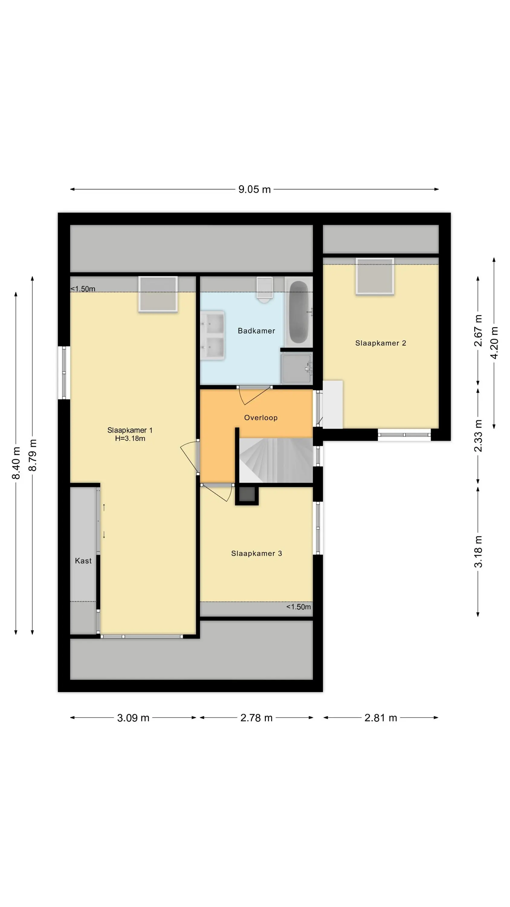 Via een vaste trap bereik je de open zolderverdieping met daglicht aan beide kanten. Hier vind je de cv-installatie én volop ruimte om een extra slaapkamer, werkkamer of hobbyruimte te creëren.