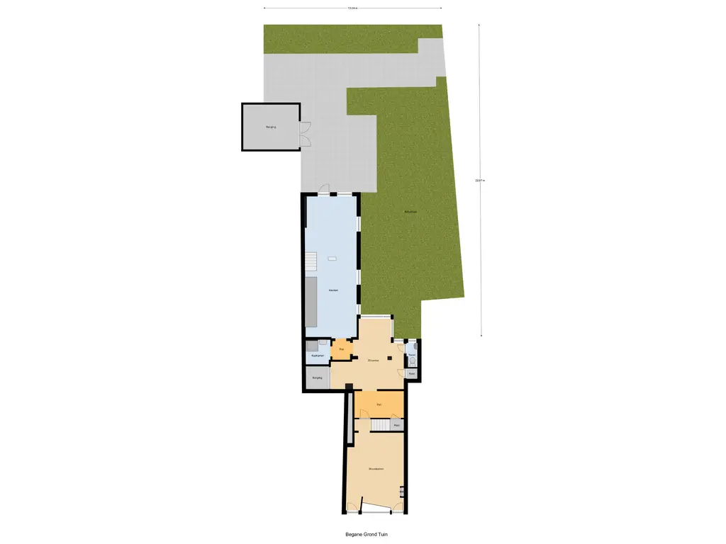 Pand en tuin zijn gesplitst door de huidige eigenaar.
