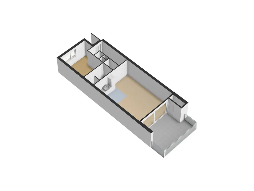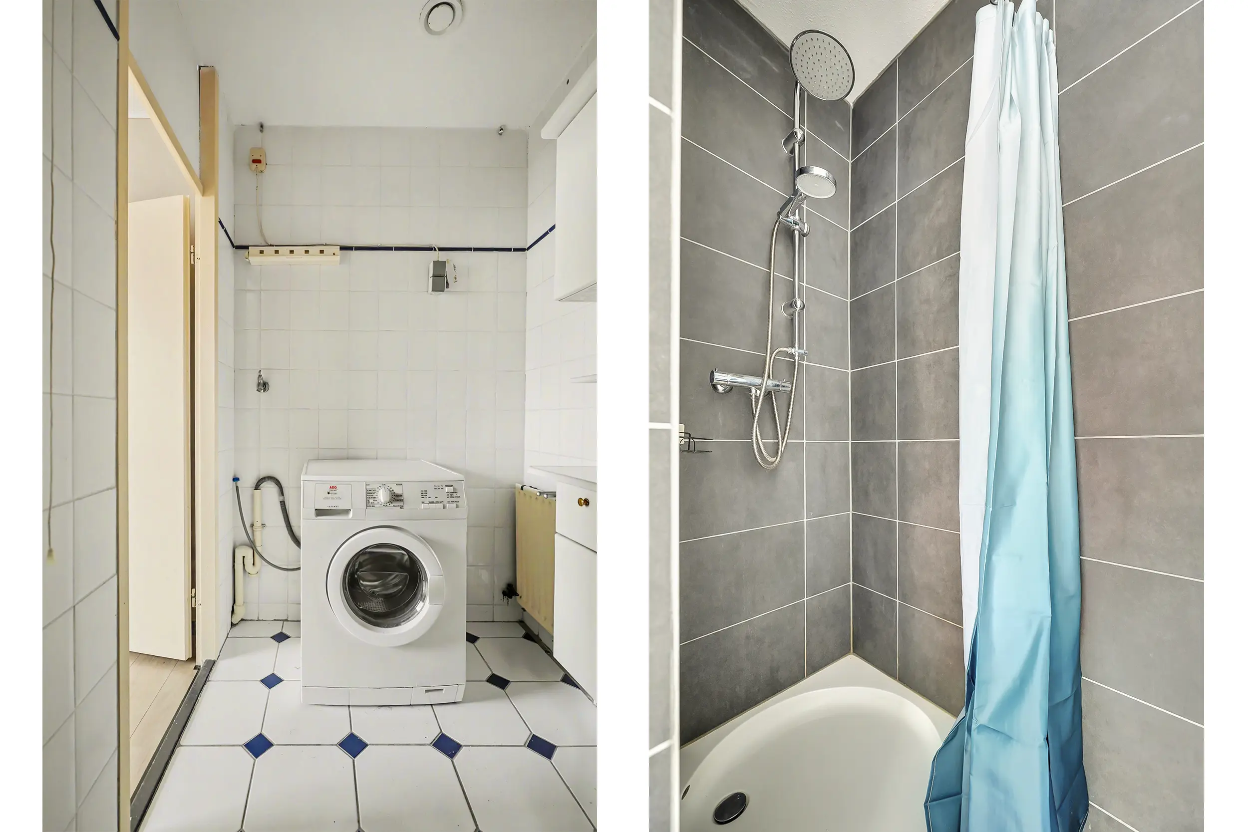 De slaapkamer is goed bemeten en biedt direct toegang tot de eigen badkamer. Deze is praktisch ingericht en voorzien van een wastafelmeubel, inloopdouche en aansluitingen voor wasmachine en droger. Een comfortabele en overzichtelijke indeling die bijdraagt aan het gebruiksgemak van het appartement.