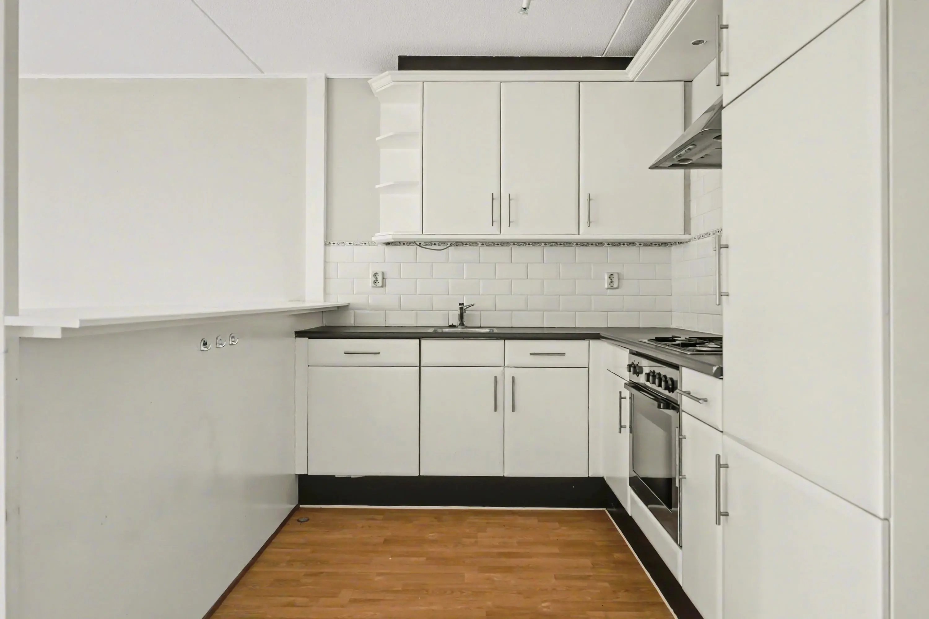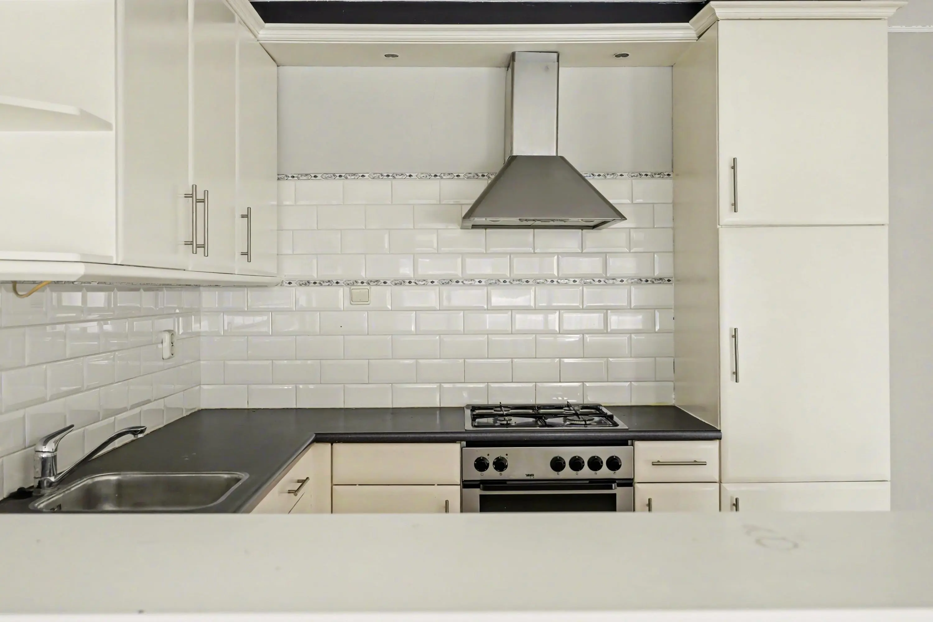 De keuken is eenvoudig maar functioneel en in een hoekopstelling geplaatst. Deze is voorzien van diverse inbouwapparatuur en biedt voldoende werk- en bergruimte voor dagelijks gebruik.
