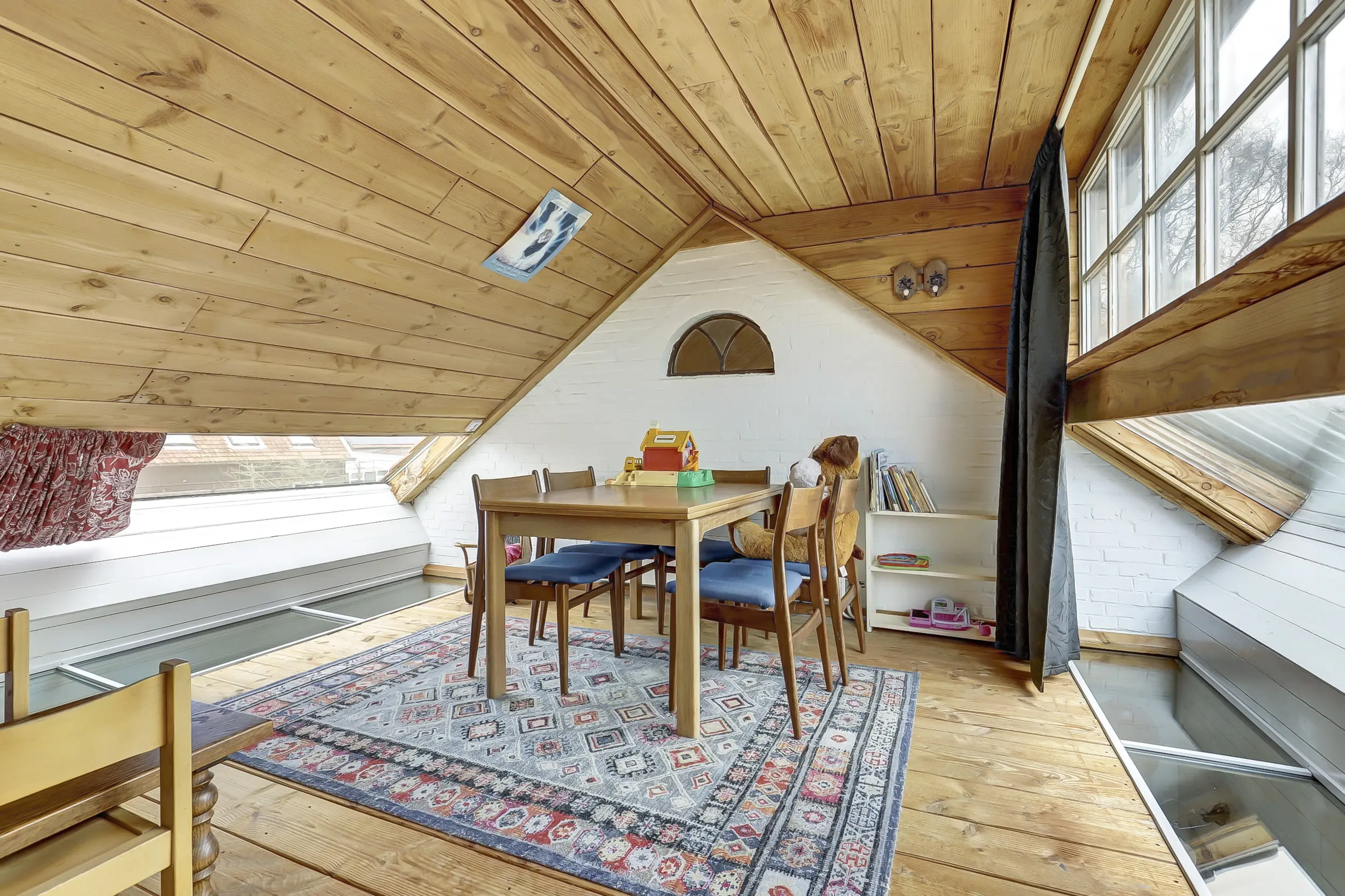 Via een rechte steektrap is de bergzolder te bereiken. Deze is zeer ruim en biedt veel opbergmogelijkheden.