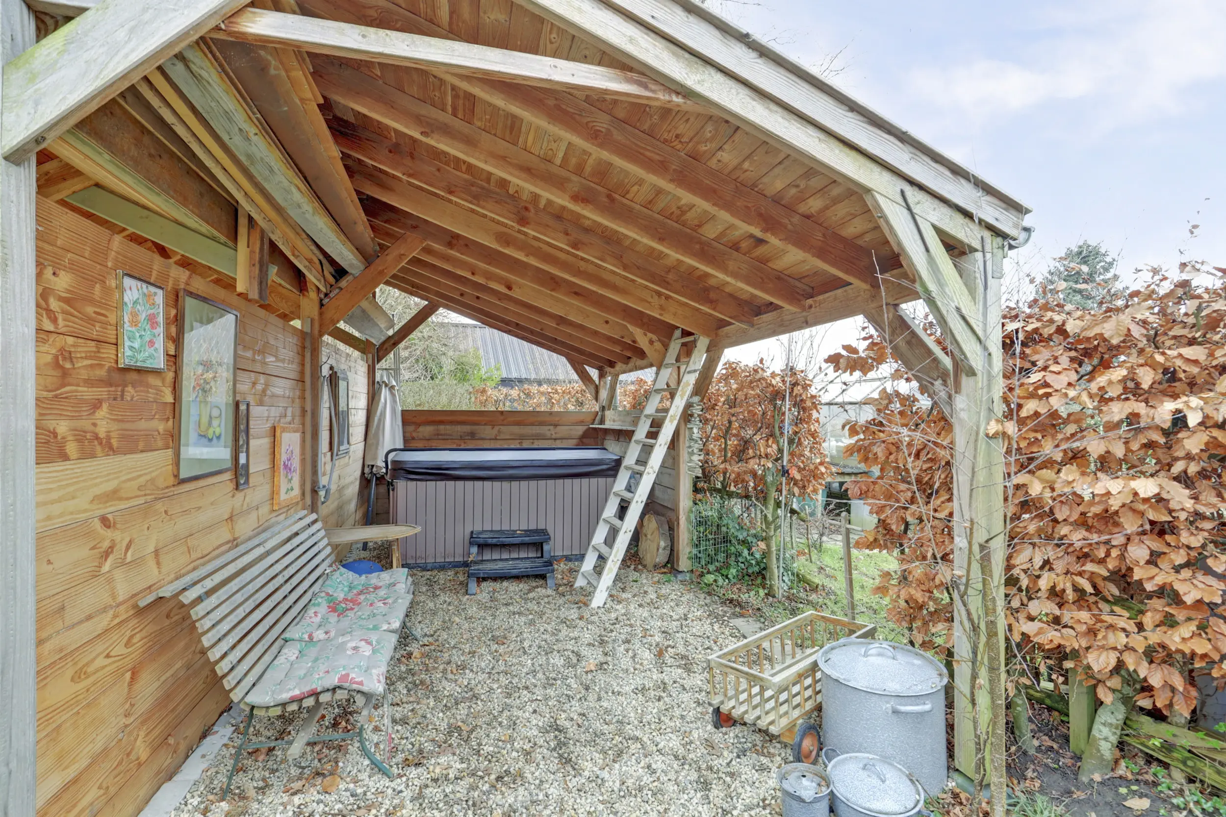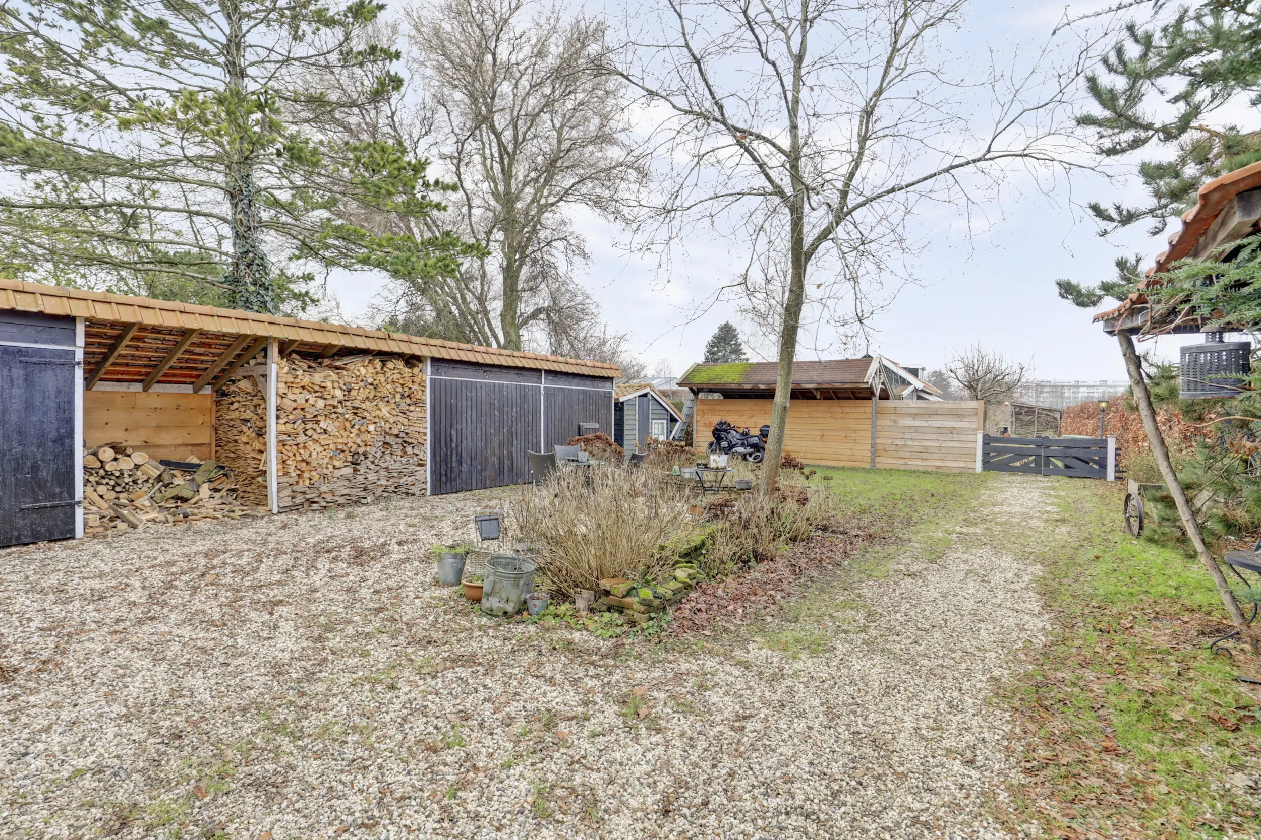 Aan de achterzijde van de woning is een groot terrasgedeelte gesitueerd en is er aan de zijkant een werkruimte, garage, houtopslag en overkapping gesitueerd. De fraaie achtertuin op het zonnige westen is een heerlijke plek waar u optimaal kunt genieten van rust, ruimte en privacy.