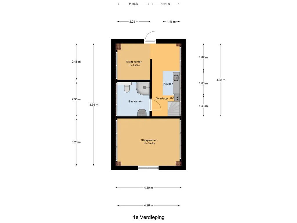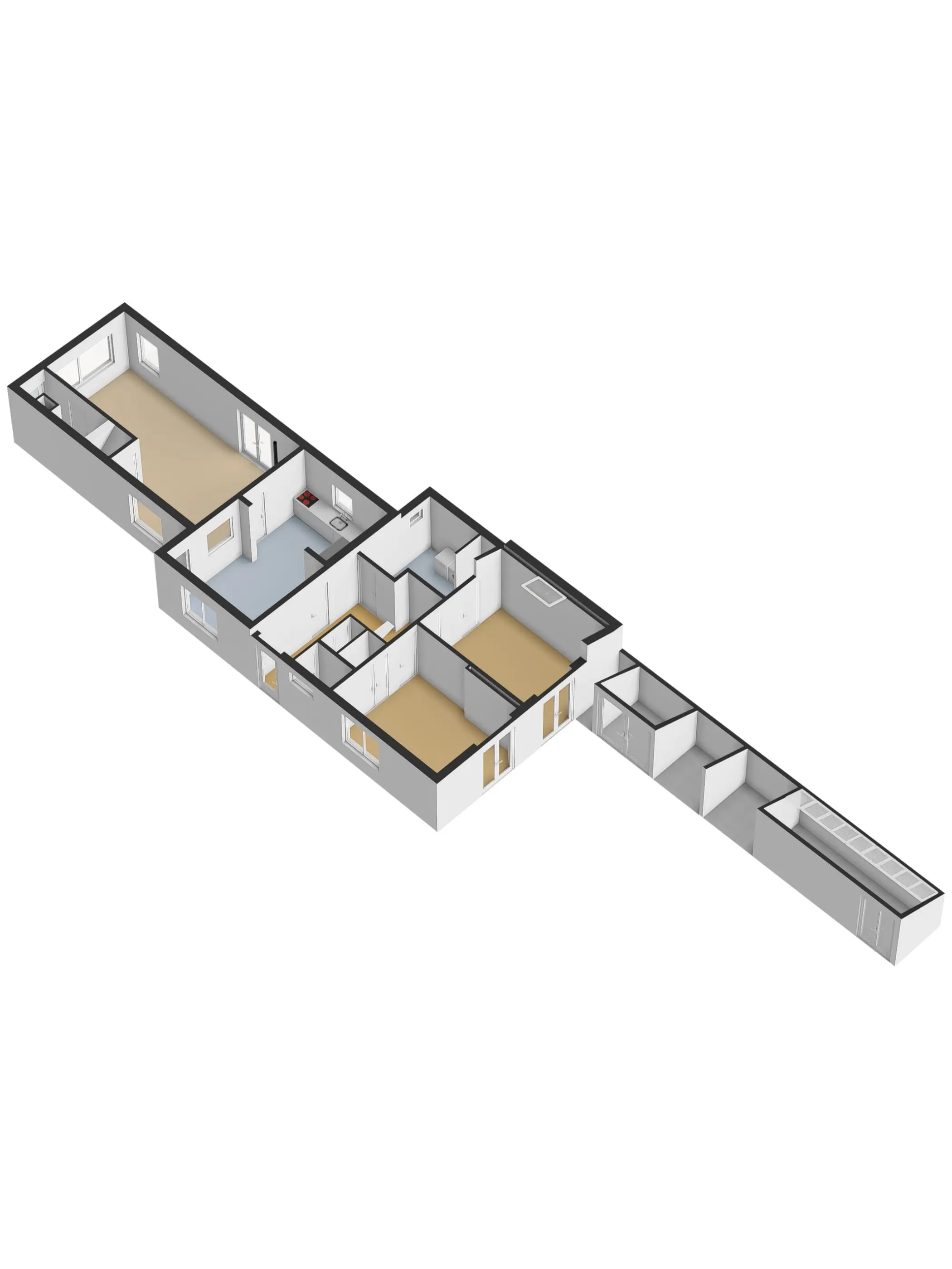 - Alle voorzieningen (wonen en slapen) zijn op de begane grond gesitueerd