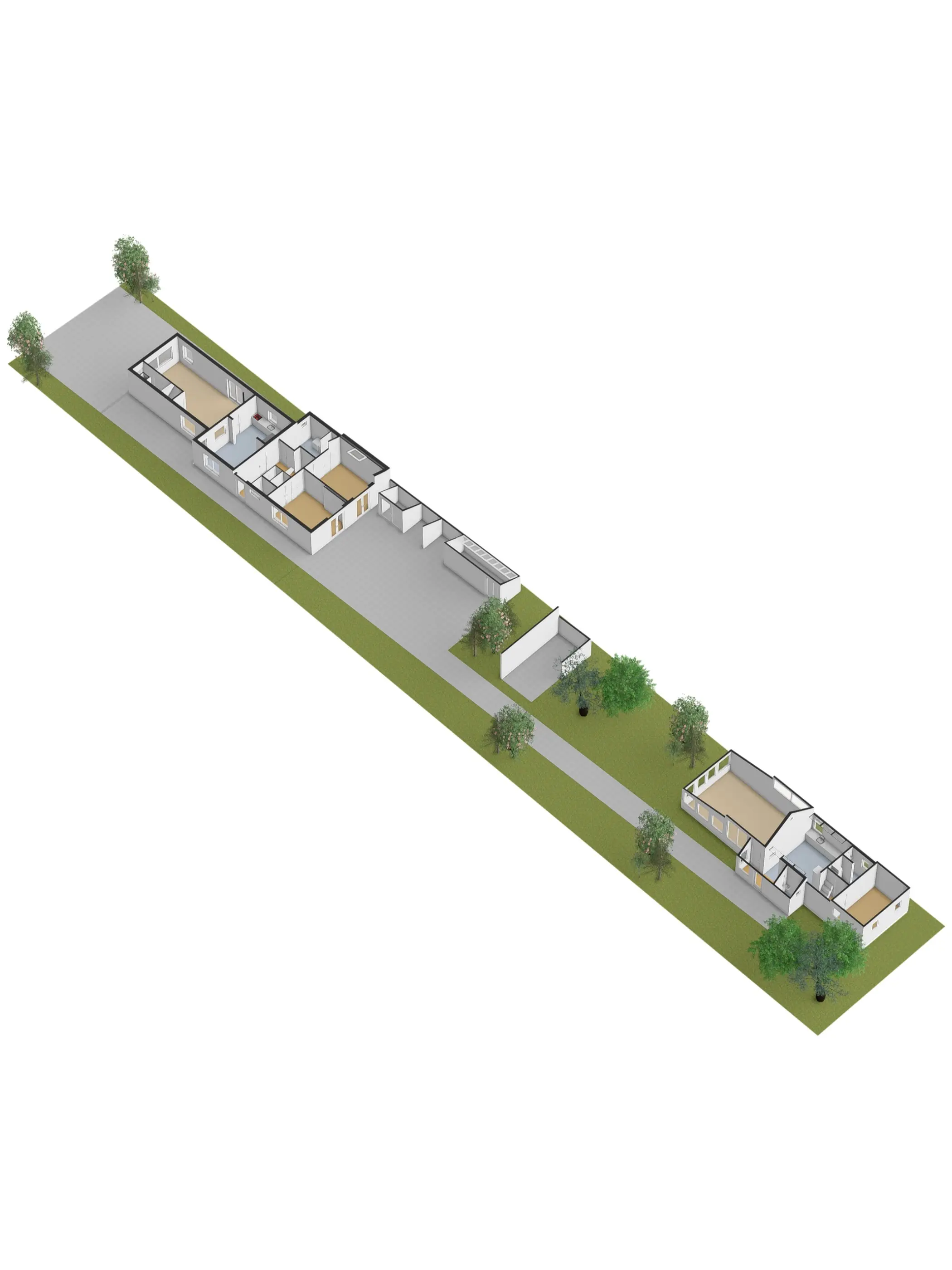 Aan de voorzijde heeft u voldoende ruimte om uw auto('s) te parkeren op eigen terrein. Via de af te sluiten poort aan de zijkant van het perceel heeft u middels de oprit toegang tot de achtertuin en achterliggend bijgebouw.