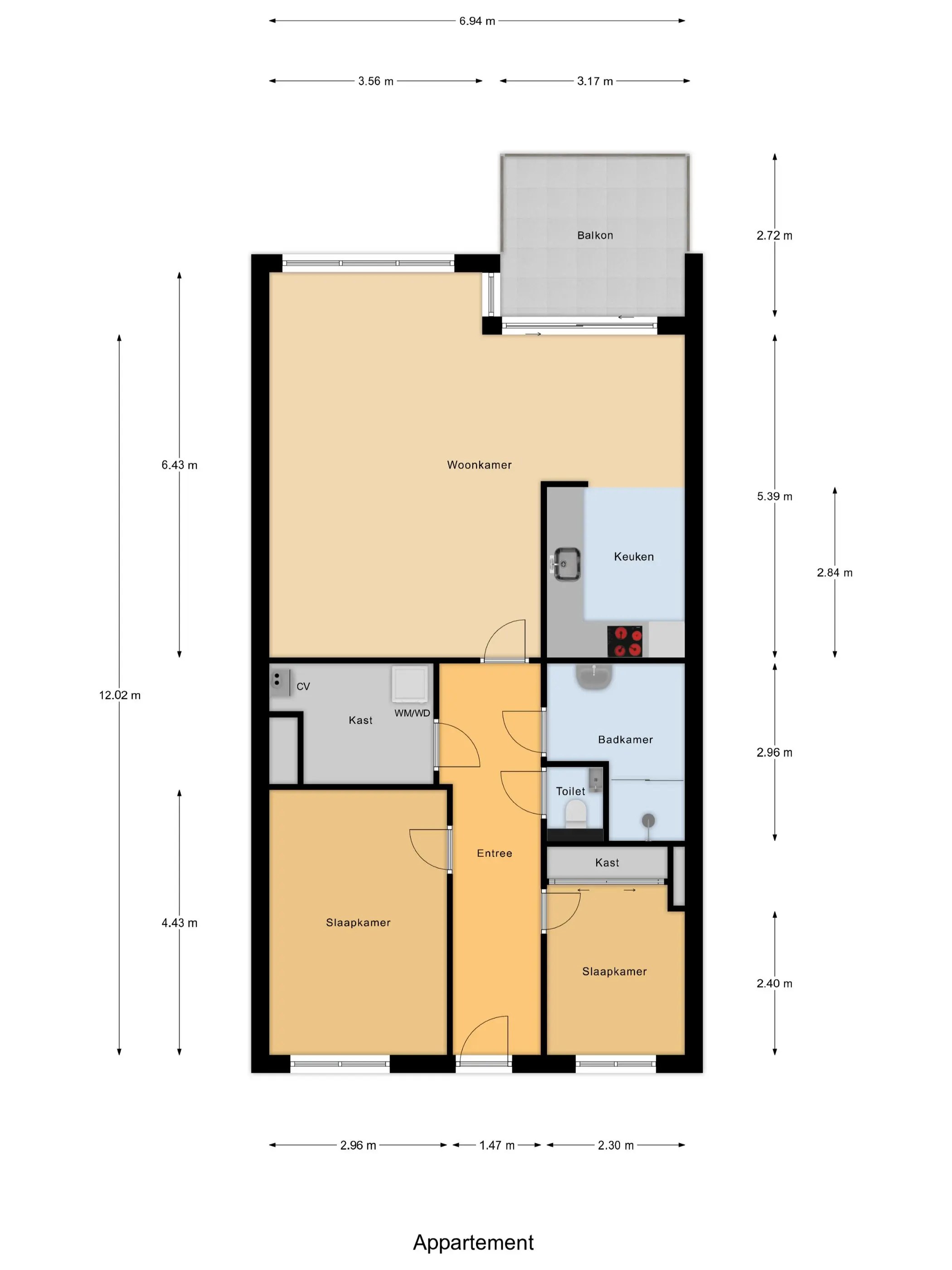 - Prachtig appartement op de 3e etage met groot balkon, per lift te bereiken