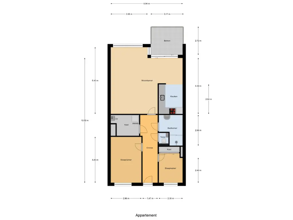 Dit fraaie 3-kamerappartement heeft een ruime woonkamer met veel lichtinval en toegang tot een groot balkon. Verder is er een moderne halfopen keuken in de woonkamer geplaatst en beschikt het appartement over 2 fijne slaapkamers. De badkamer en het toilet hebben een moderne uitstraling. In de inpandige (was)ruimte heeft u nog flink wat voorraadruimte. Op de begane grond is de eigen berging gesitueerd. Parkeren kan op naastgelegen terrein.