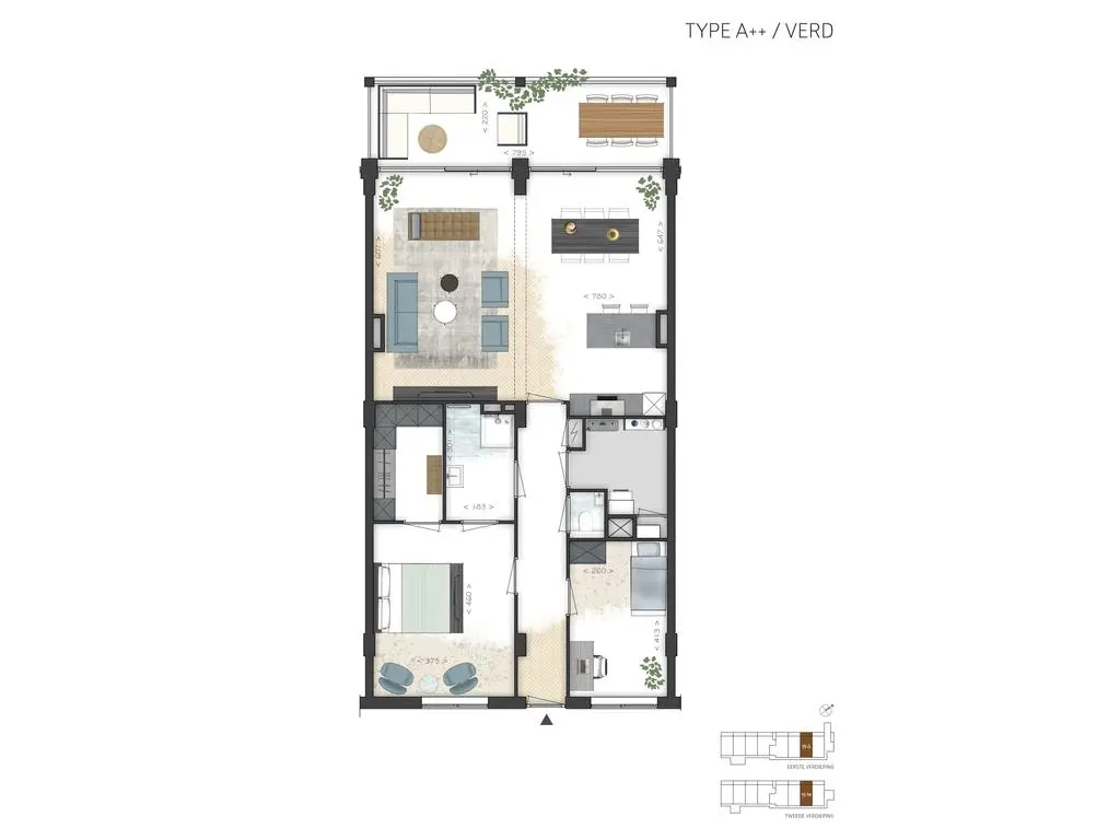 Dit royale 3-kamerappartement van ca. 107 m2 beschikt over 2 slaapkamers en een ruime buitenruimte waar u genoeg plek heeft om lekker te kunnen genieten.