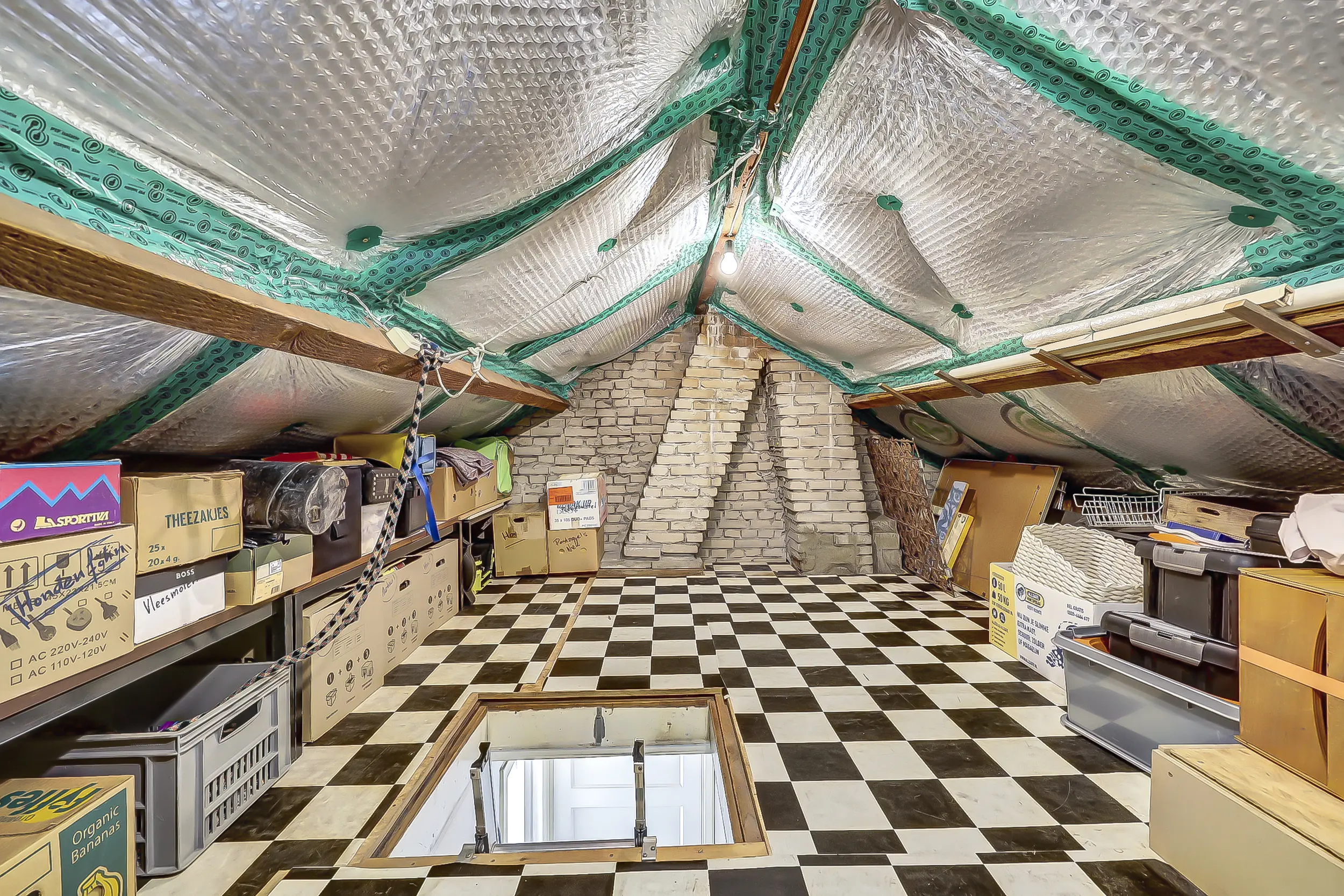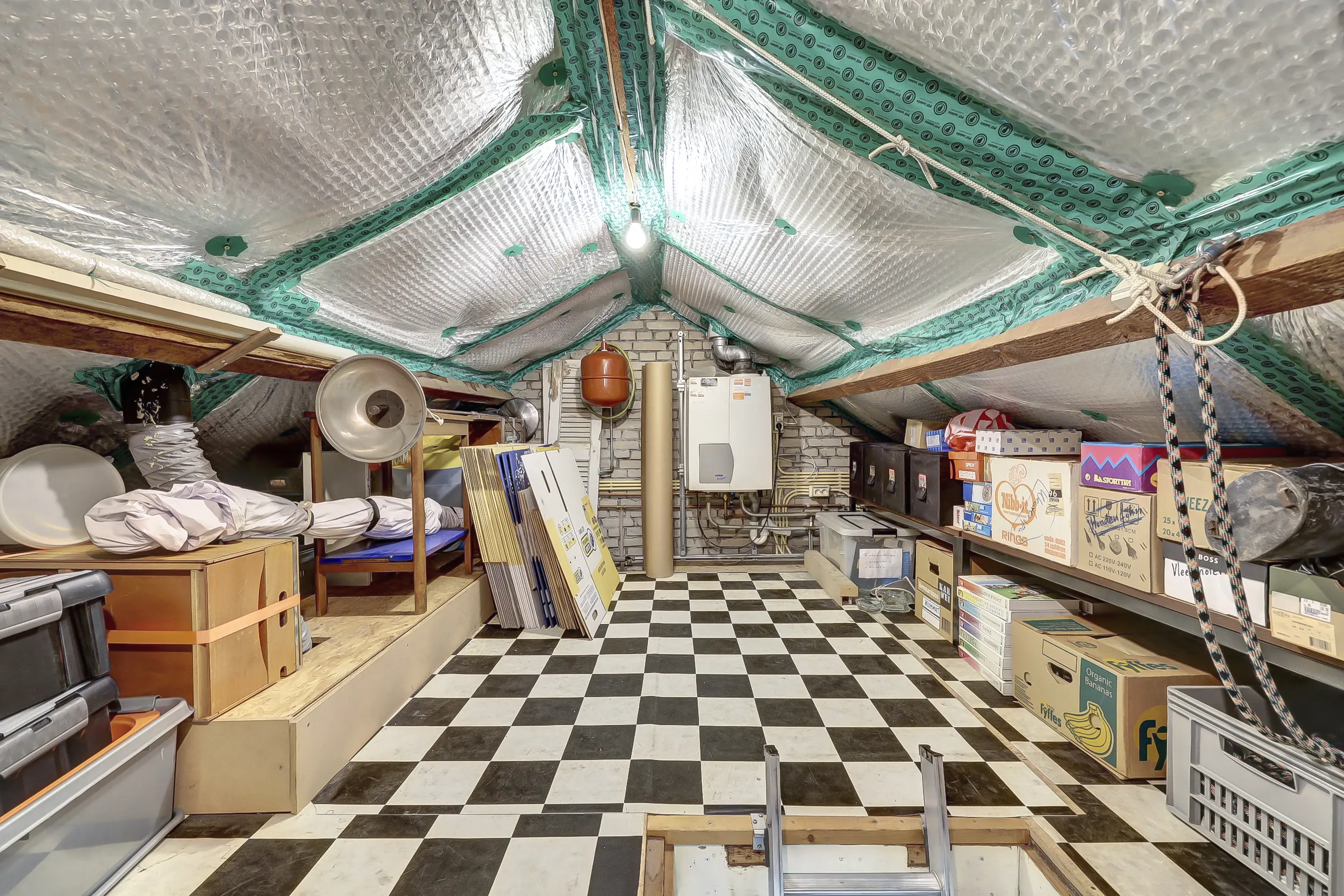 Via een vlizotrap bereik je de zolderverdieping. Deze is volledig geïsoleerd en dient als bergzolder – ideaal voor kerstspullen, winterkleding of alles dat je maar kunt verzamelen. Hier bevindt zich ook de CV-combiketel; centraal, goed bereikbaar en keurig weggewerkt.
