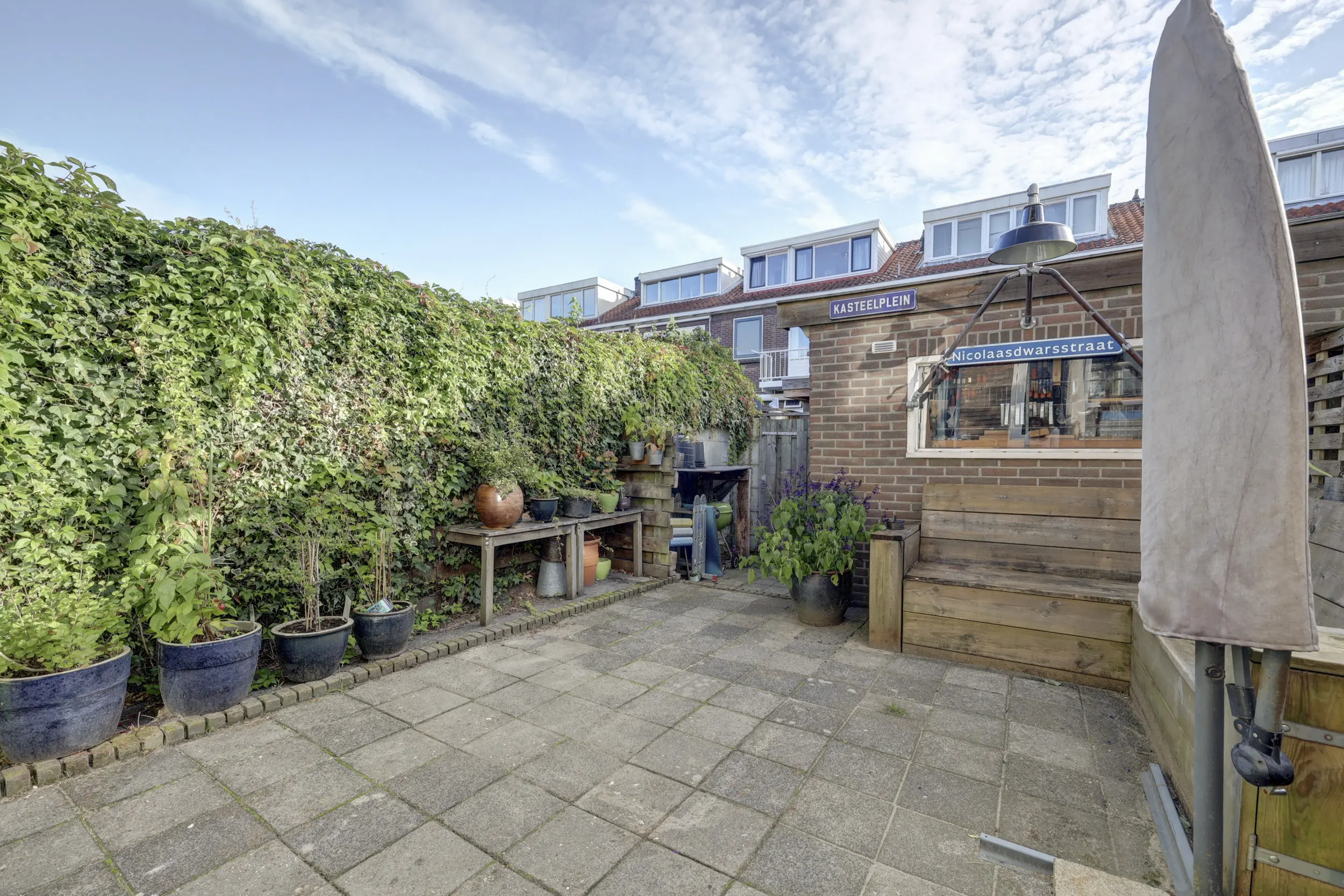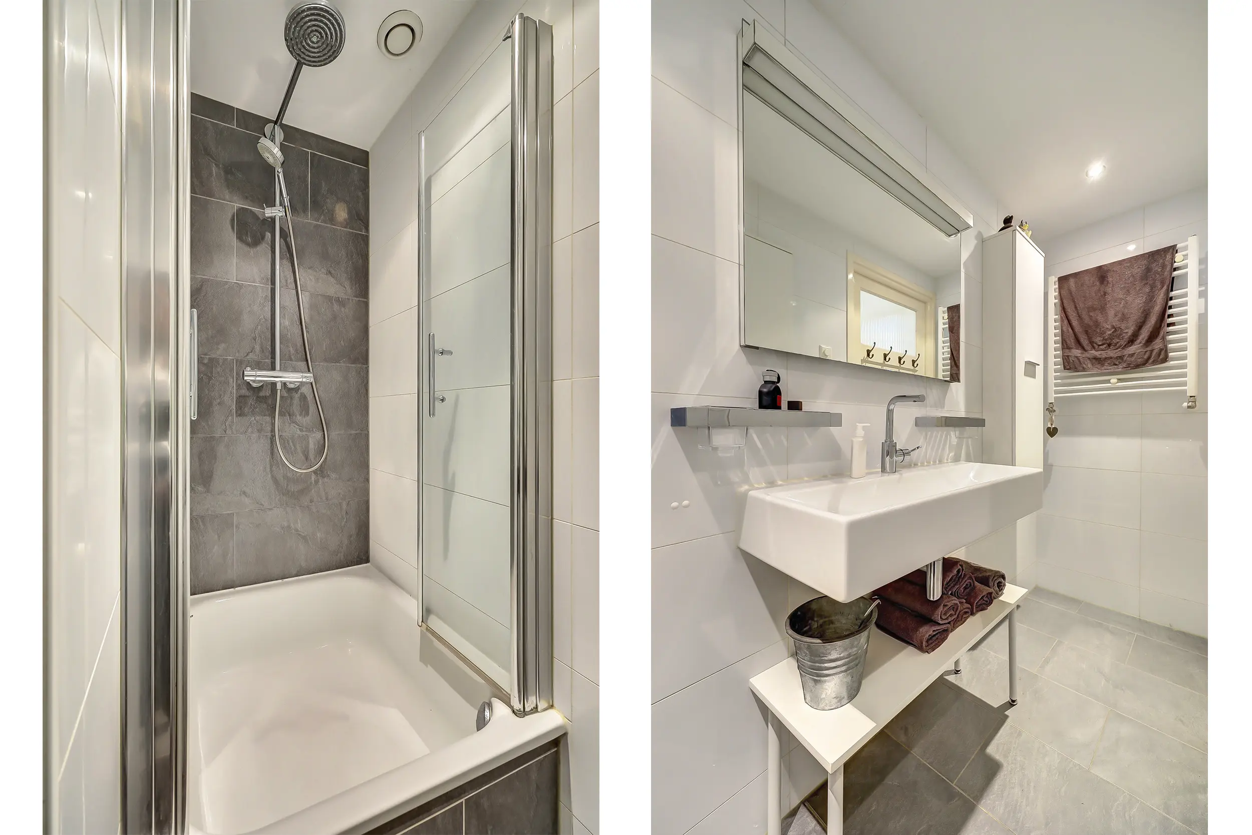 De voortuin is verrassend diep – ruim 5 meter – en biedt een heerlijke plek om ’s avonds van de zon te genieten of een praatje te maken met de buren. De achtertuin heeft een mooi formaat, beschikt over een eigen achterom en is bereikbaar vanaf zowel de keuken als de woonkamer. Een stenen berging biedt volop ruimte voor fietsen, tuingereedschap en alles wat je buiten wilt opbergen.