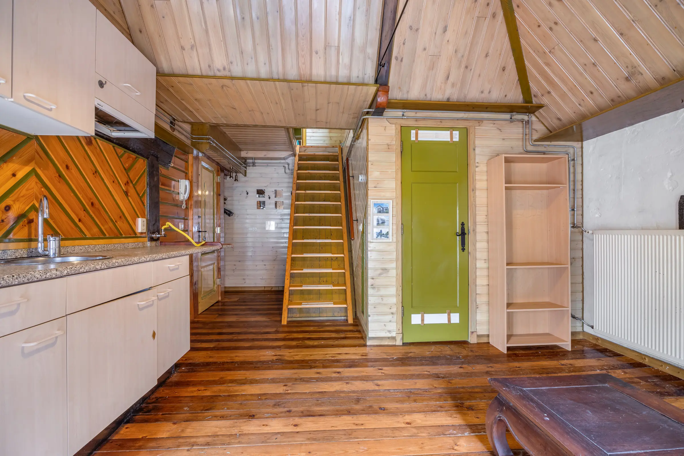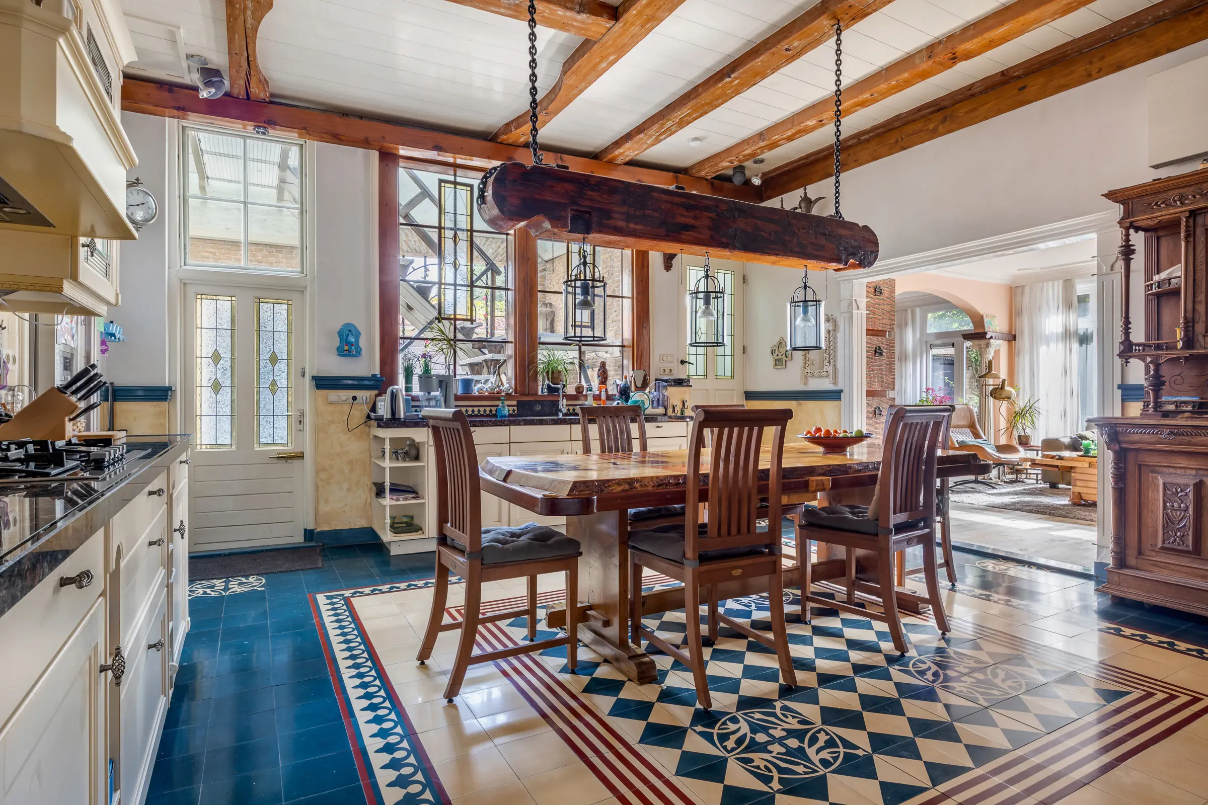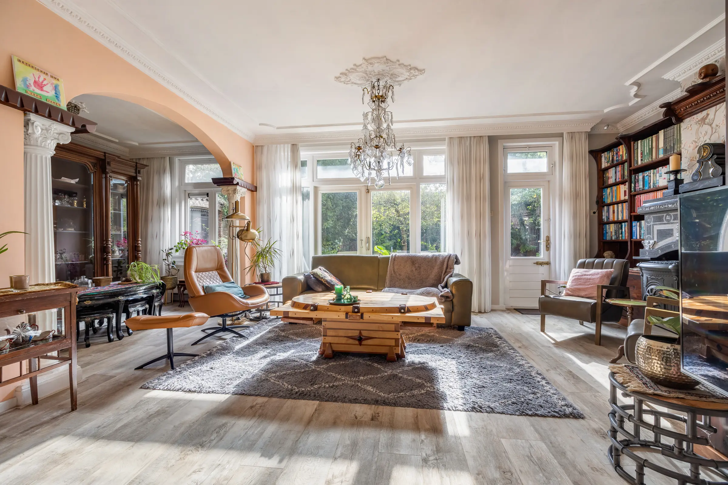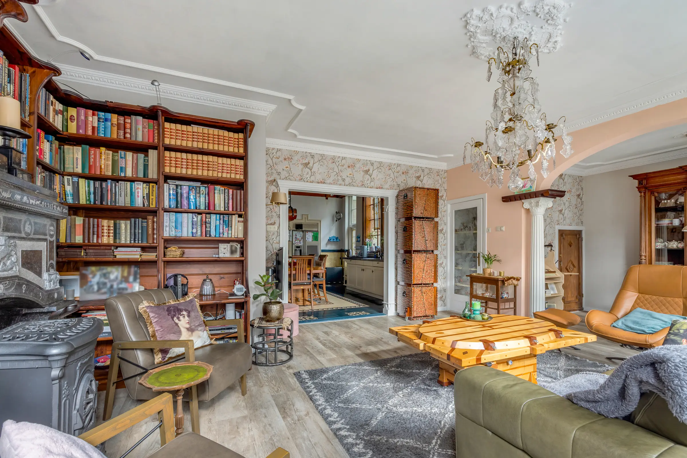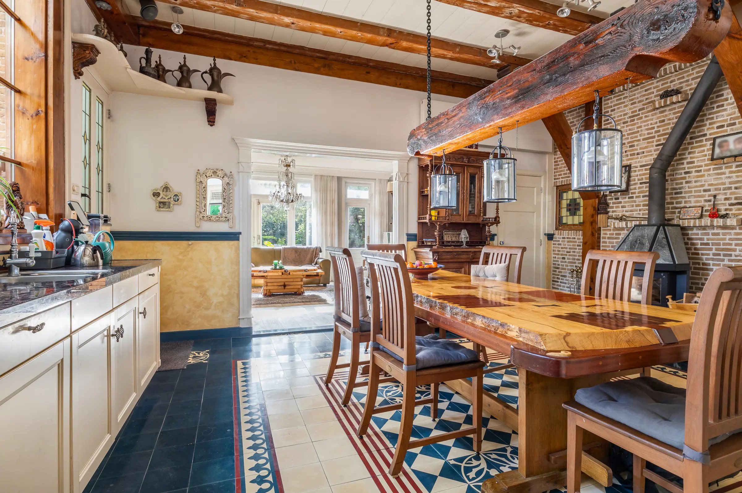 Dit imposante pand biedt u een royale woonkeuken met sfeervolle houtkachel die alle ruimte biedt voor koken, eten én samenzijn. Lichtinval, karakteristieke details en een indeling met potentie om helemaal eigen te maken.