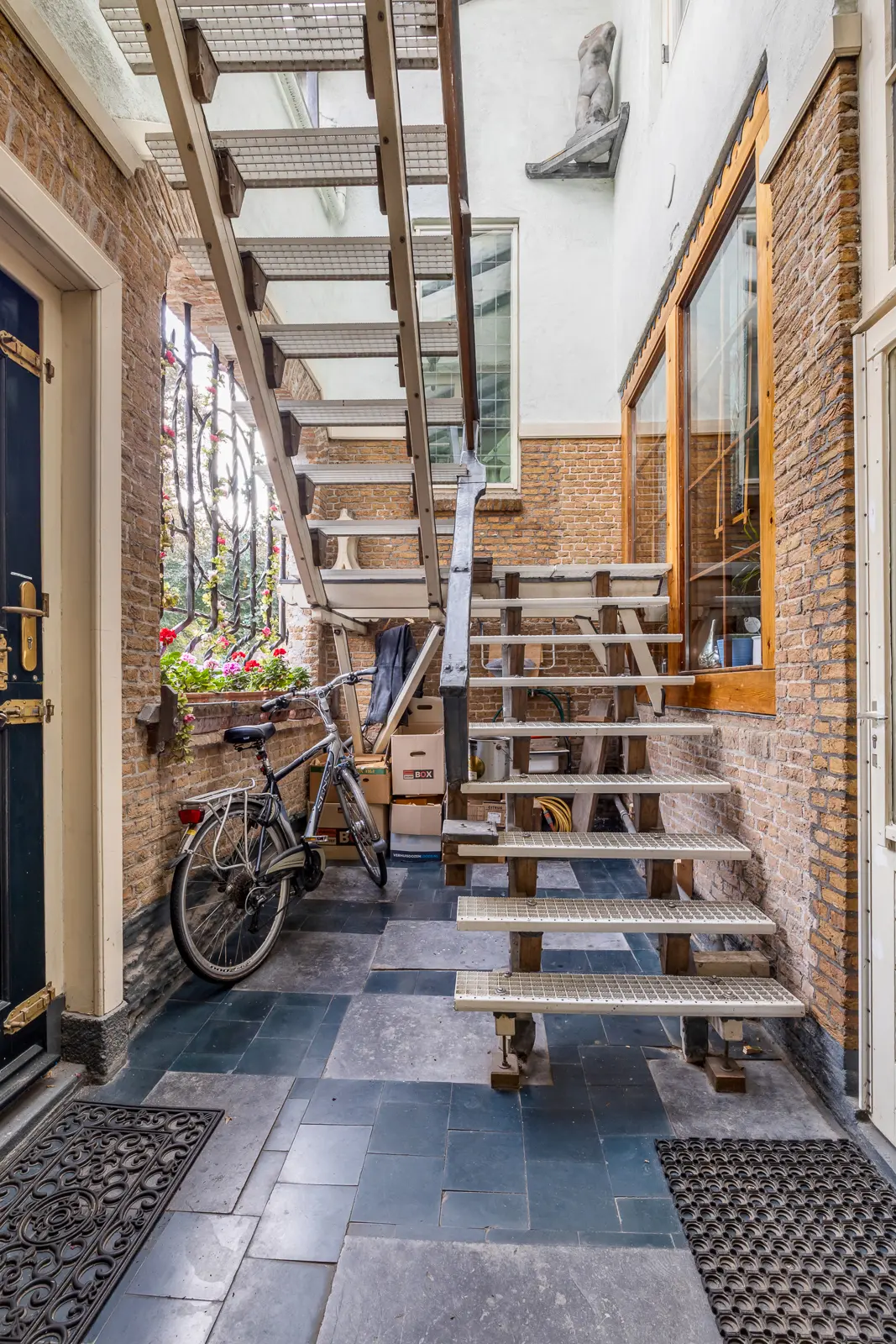 Een achterom, waardoor bijvoorbeeld fietsen, motor of tuinwerkzaamheden discreet en praktisch bereikbaar zijn.