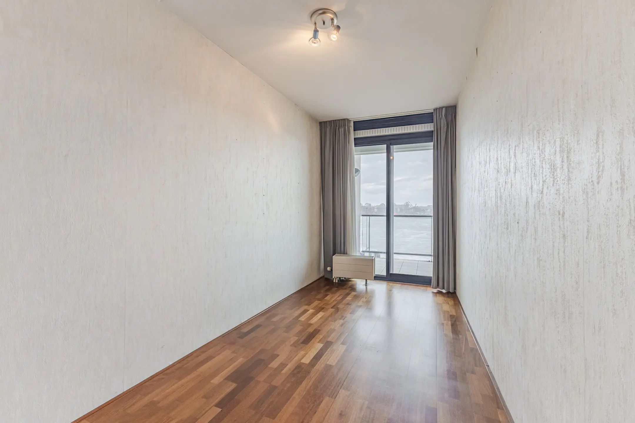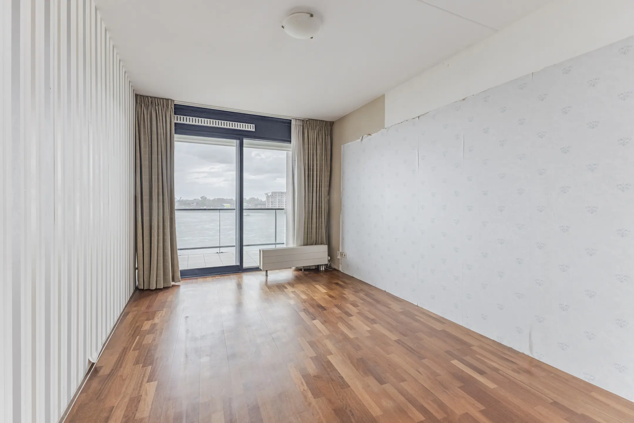 De woon- en eetkamer is voorzien van een parketvloer en biedt een prachtig uitzicht op de rivier. Vanuit zowel de woonkamer als de slaapkamers bereikt u het zonnige balkon/terras op het zuidoosten – een fijne plek om buiten te zitten.