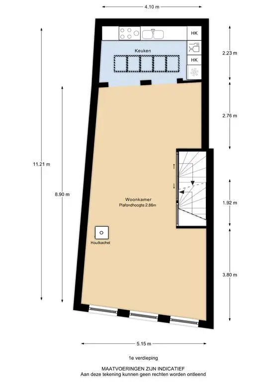 De sfeervolle woonkamer met houtkachel en ruime open keuken en de hoge raampartijen dragen hier zeker aan bij.