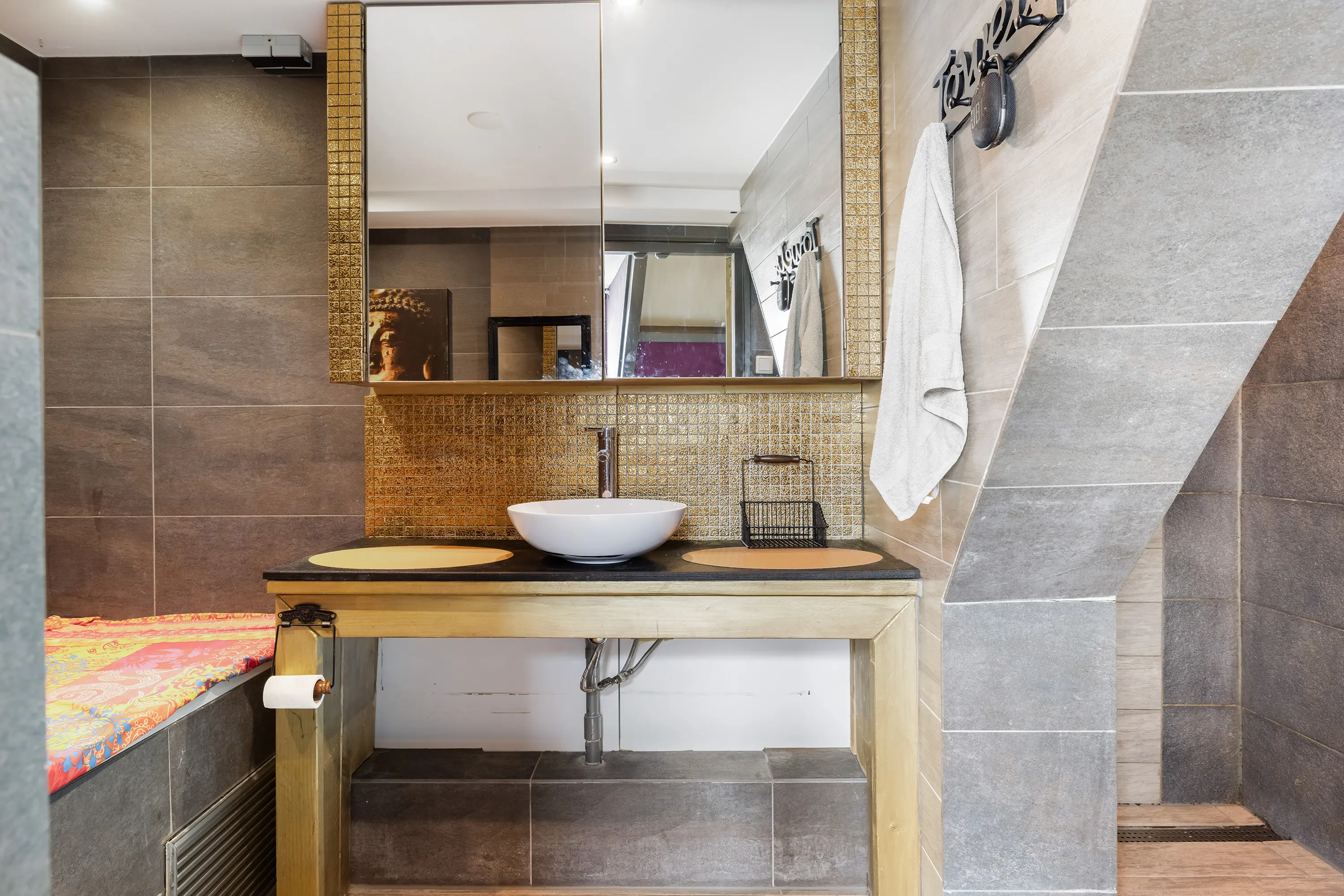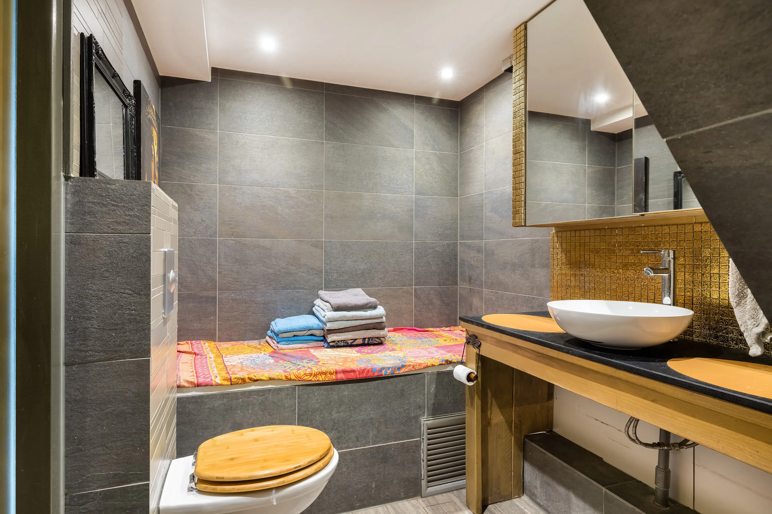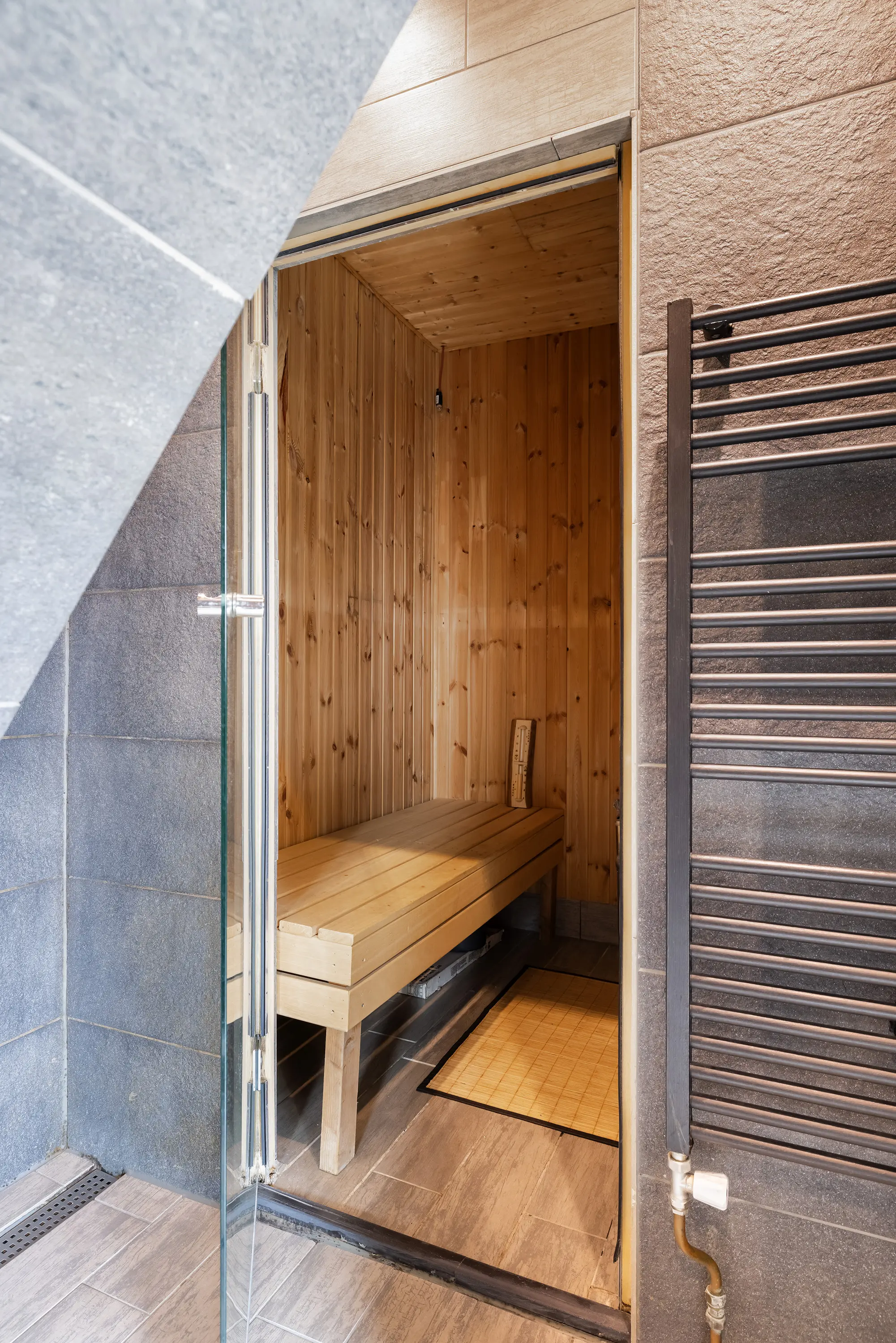 De badkamer is een waar paradijsje te noemen want deze is voorzien van een ligbad, inloopdouche, tweede toilet, designradiator en sauna.