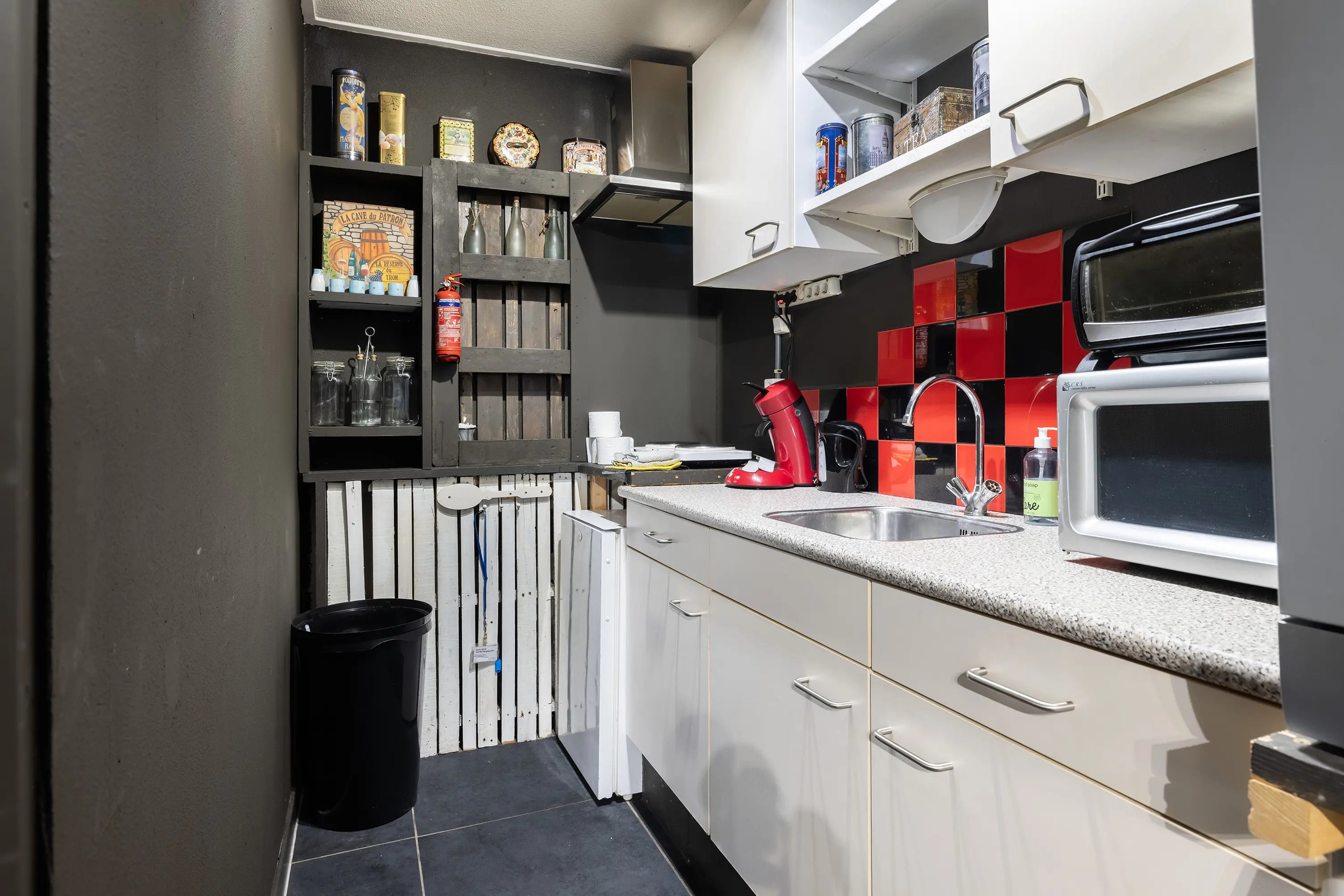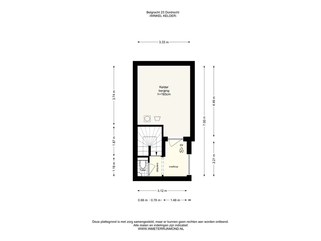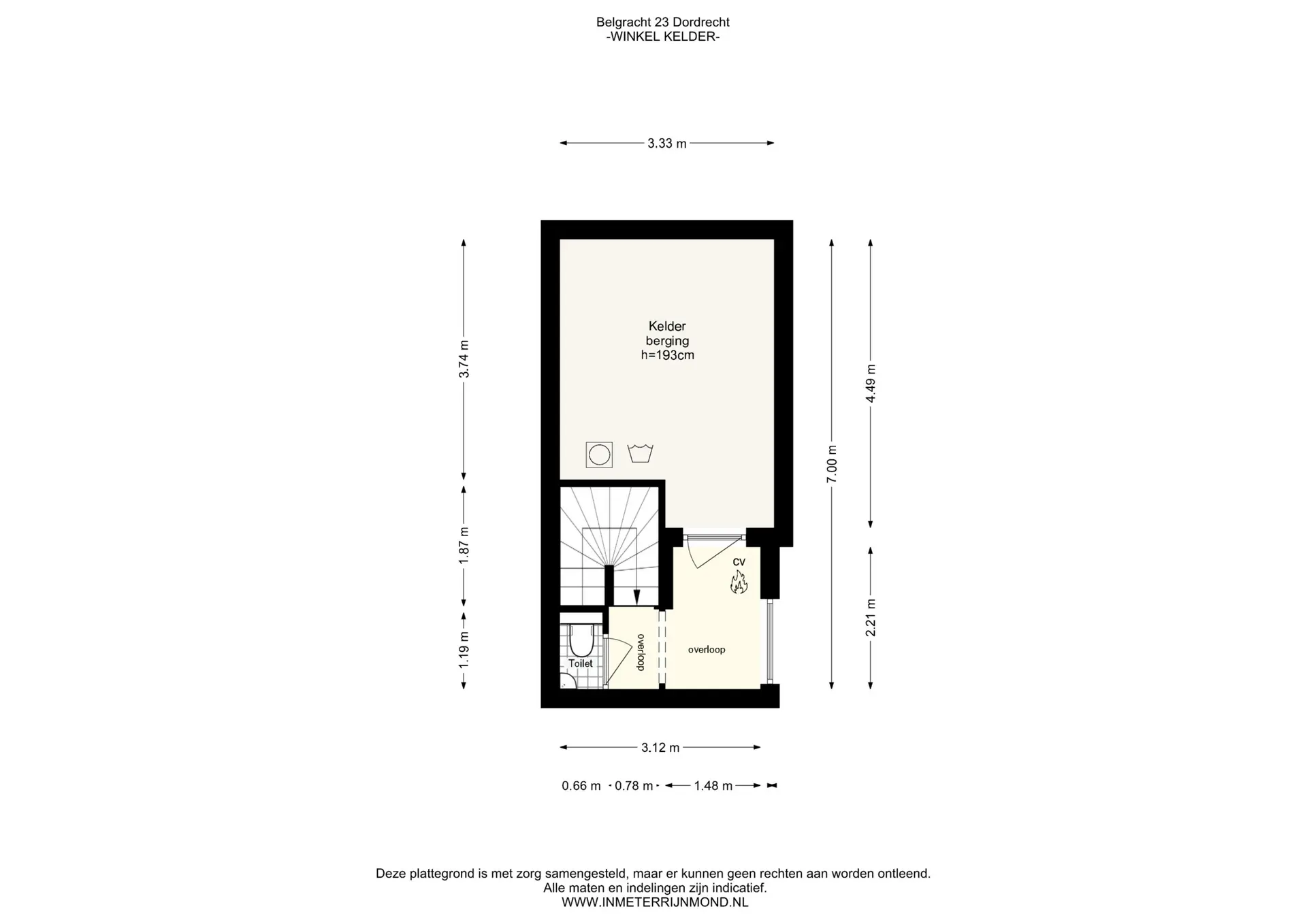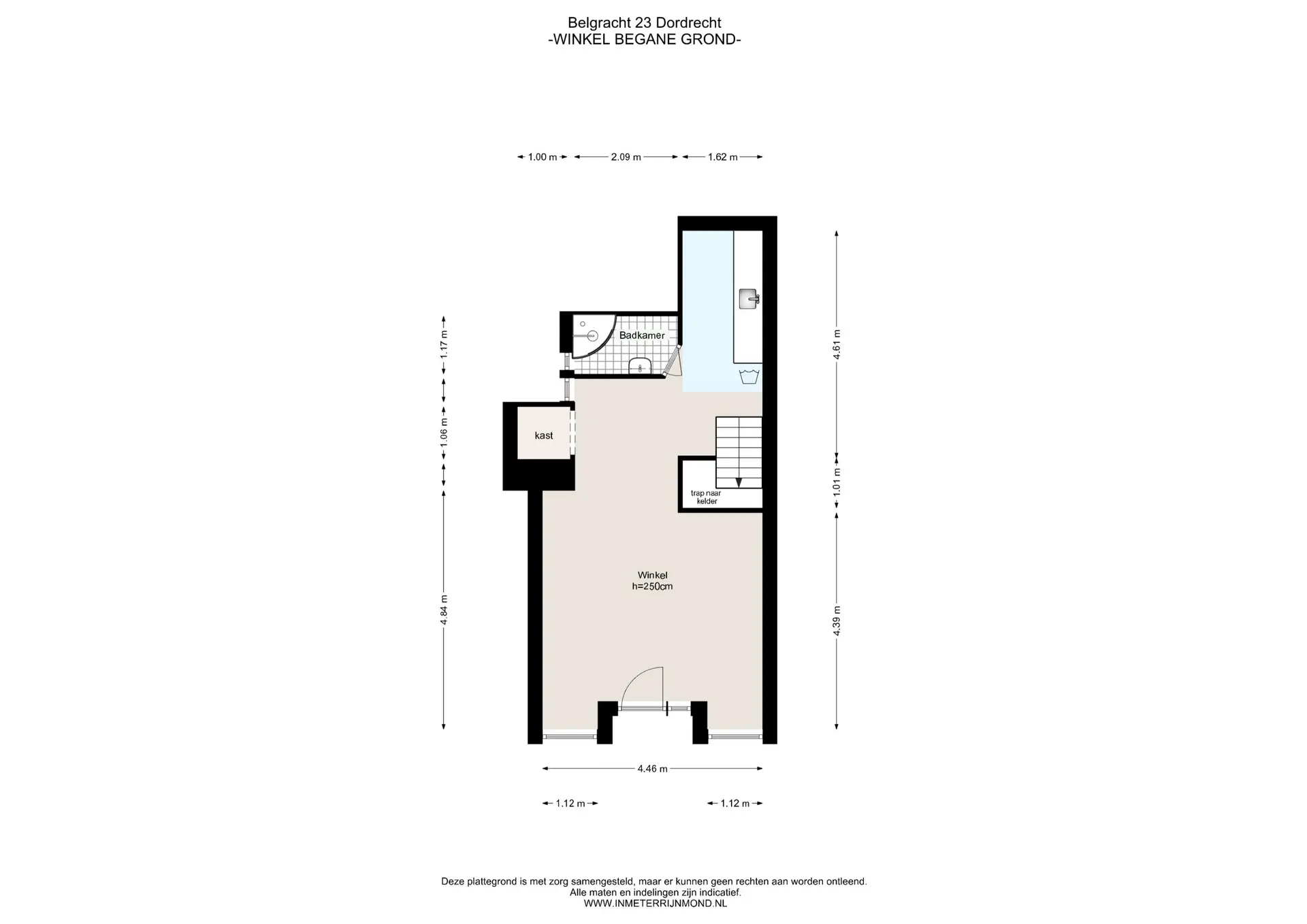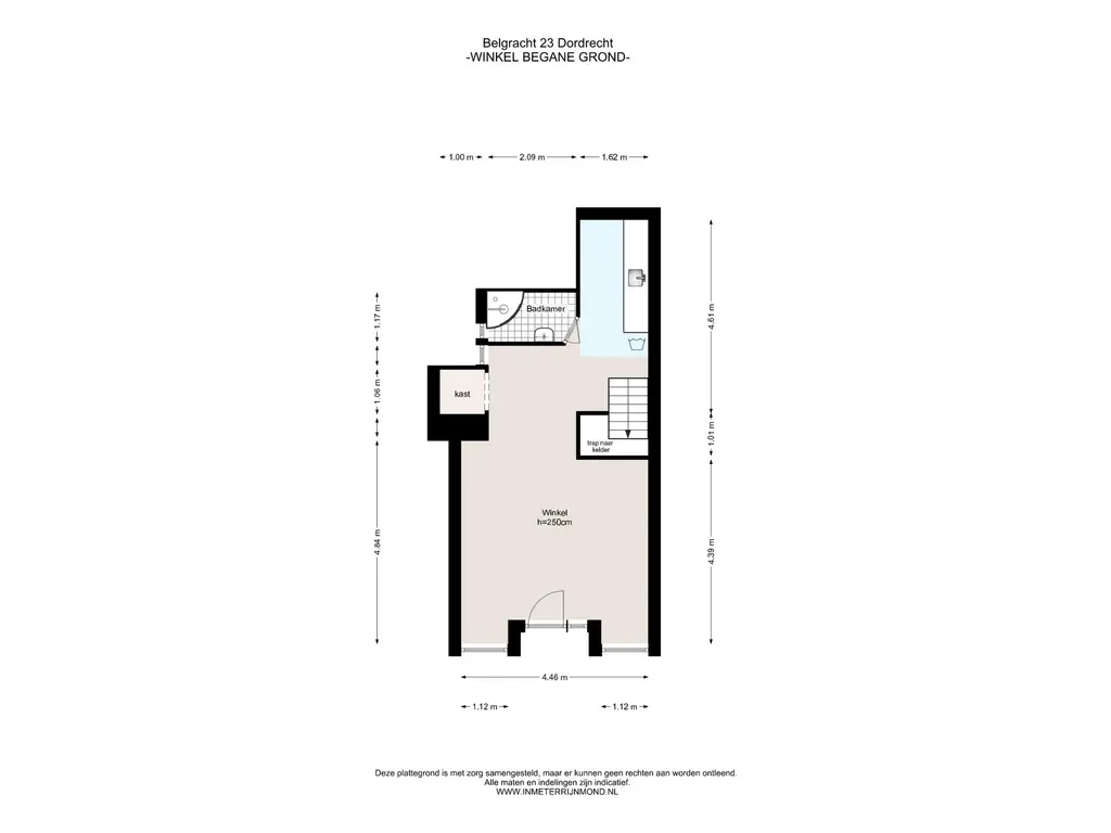 De winkelruimte ( ca 45 m2) beschikt over een keuken en toegang tot de zeer ruime kelder.