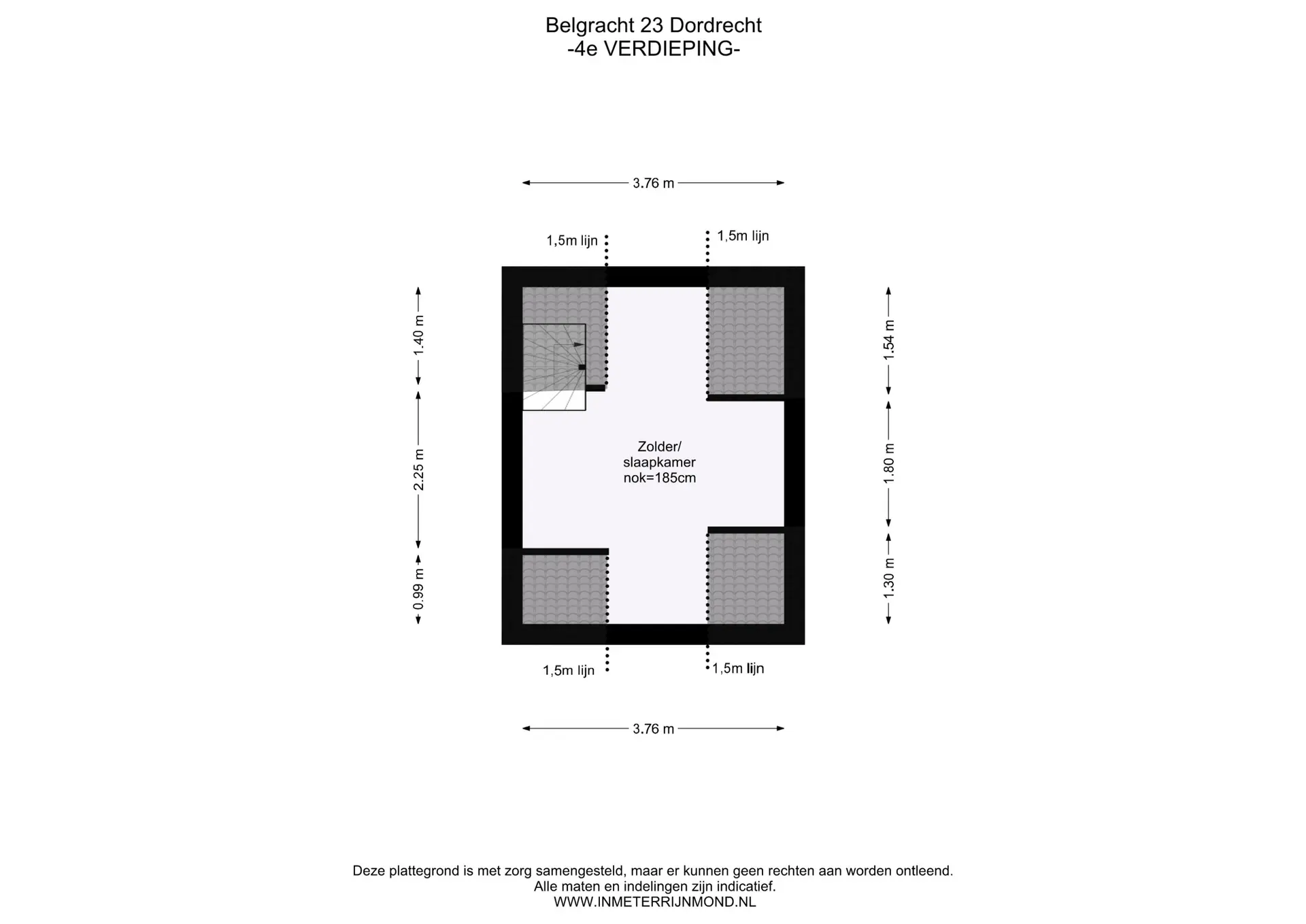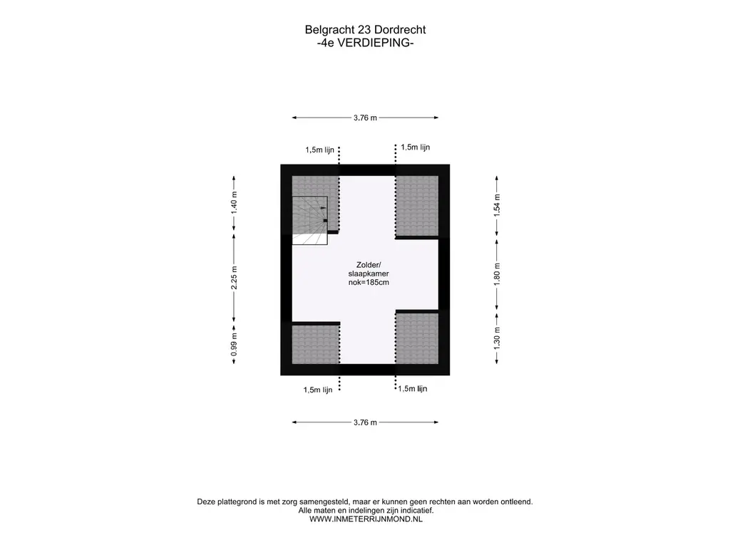 Via de vaste trap komen we uit op de zolderverdieping waar een hele ruime en charmante 3e slaapkamer is gesitueerd en welke is voorzien van 2 dakkapellen. Hoewel de hoogte hier 1.85 meter bedraagt, biedt deze ruimte volop mogelijkheden.