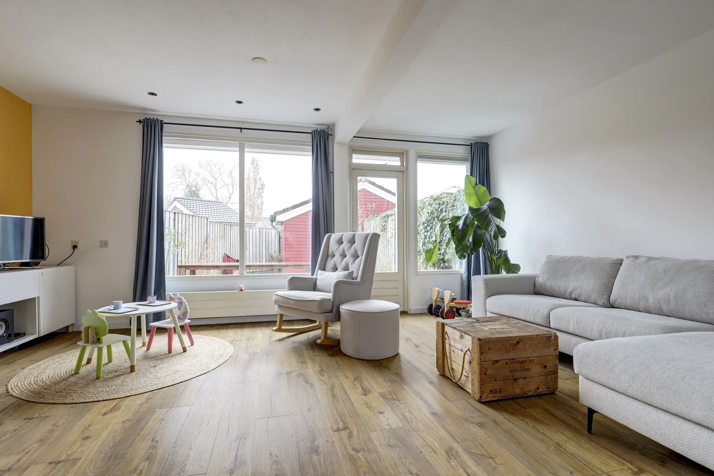 Zowel de voor- als ook de achtertuin zijn nagenoeg geheel bestraat, waarbij kleine groene borders de fraaie accenten geven aan deze tuin. De achtertuin ligt geheel op het Westen, zodat je die lange zomer avonden optimaal kunt genieten van een barbeque en de ondergaande zon! Ten slotte zul je ook je fietsen en tuinspullen een plekje willen geven, hier is de tuinberging groot genoeg voor!