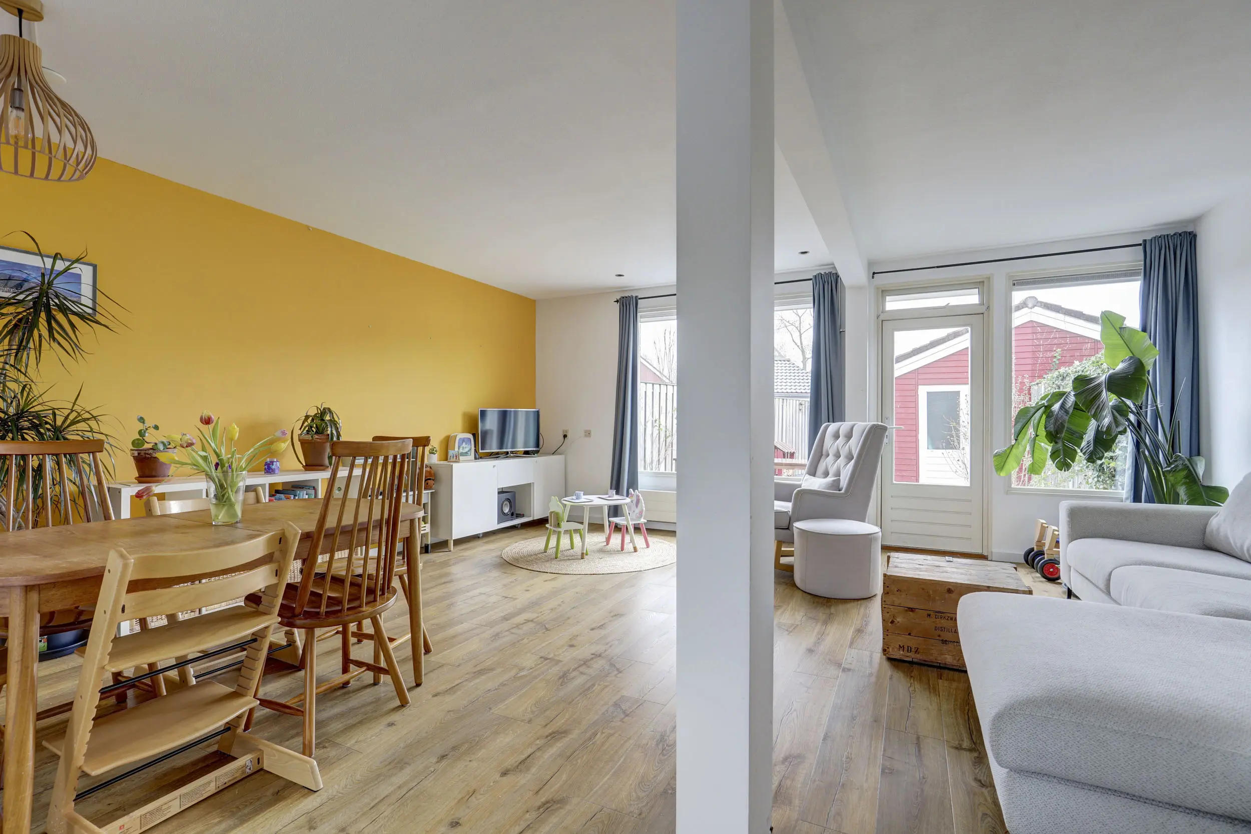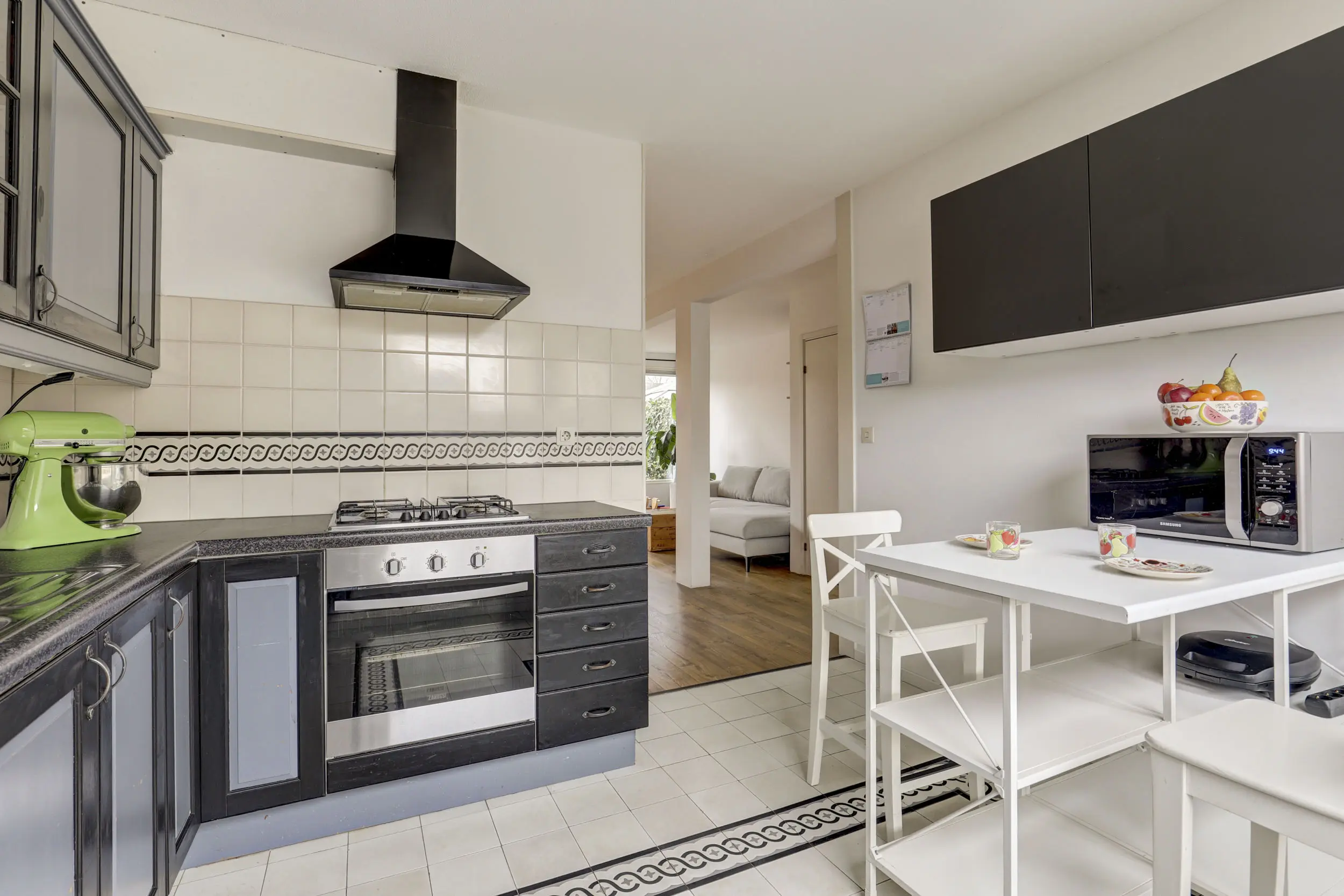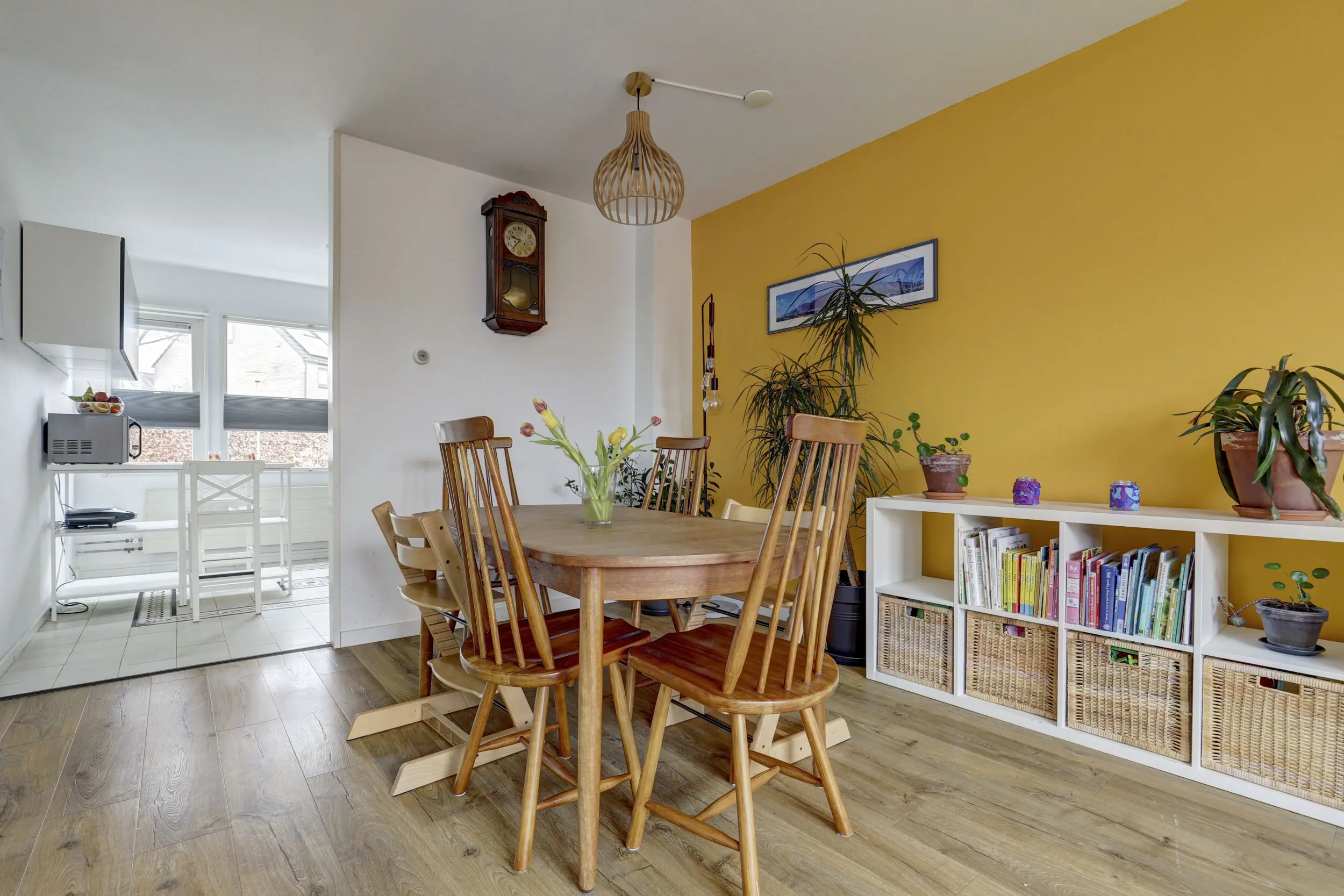 Als je de woonkamer binnen loopt, valt de breedte van deze woning (5,72 m) je gelijk op. Hierdoor is er ook veel glas oppervlak aan de achterzijde en daardoor ook lekker veel licht. Die grote bank kan je hier natuurlijk prima kwijt, maar ook de ruime eettafel vindt hier zijn plek! De gehele woonkamer is netjes afgewerkt en voorzien van een fraaie laminaatvloer. De keuken zit aan de voorzijde van de woning, deze is in een L-opstelling geplaatst en voorzien van diverse inbouwapparatuur. De keuken is grotendeels afgeschermd van de woonkamer, maar wil je dit anders, dan kan dat natuurlijk altijd!