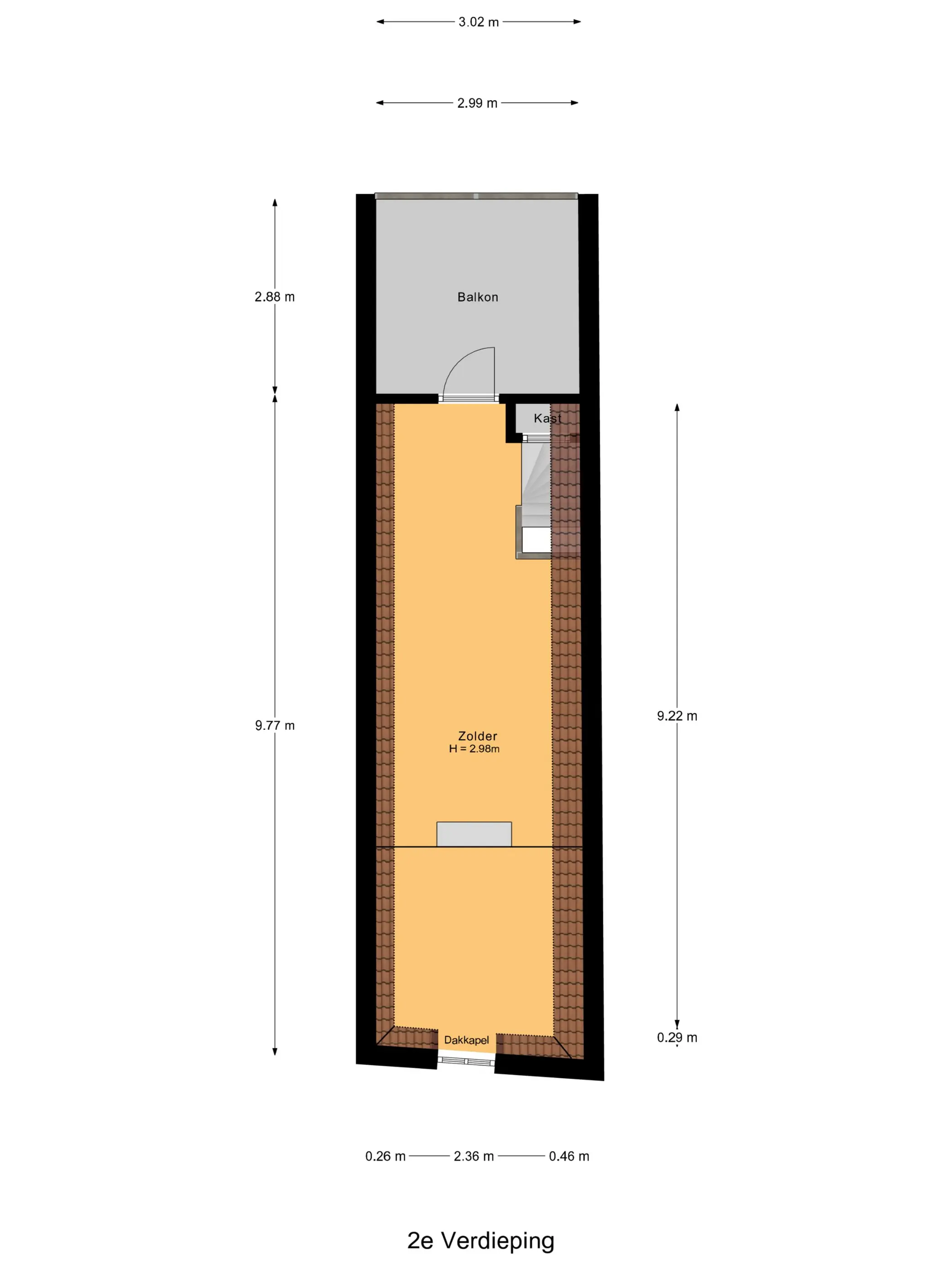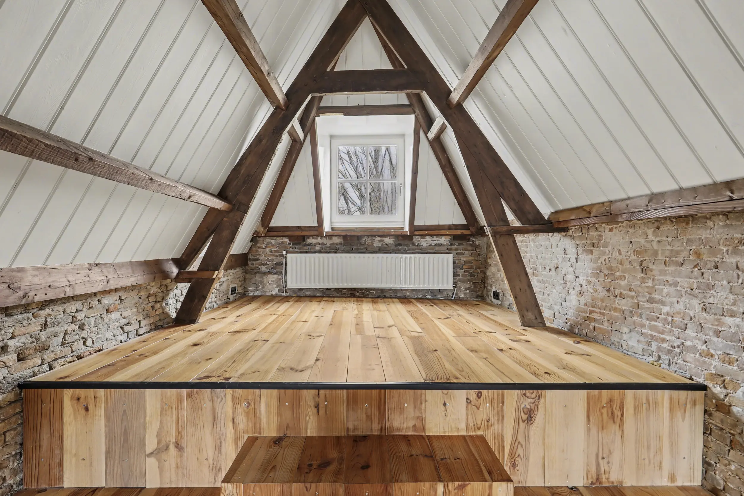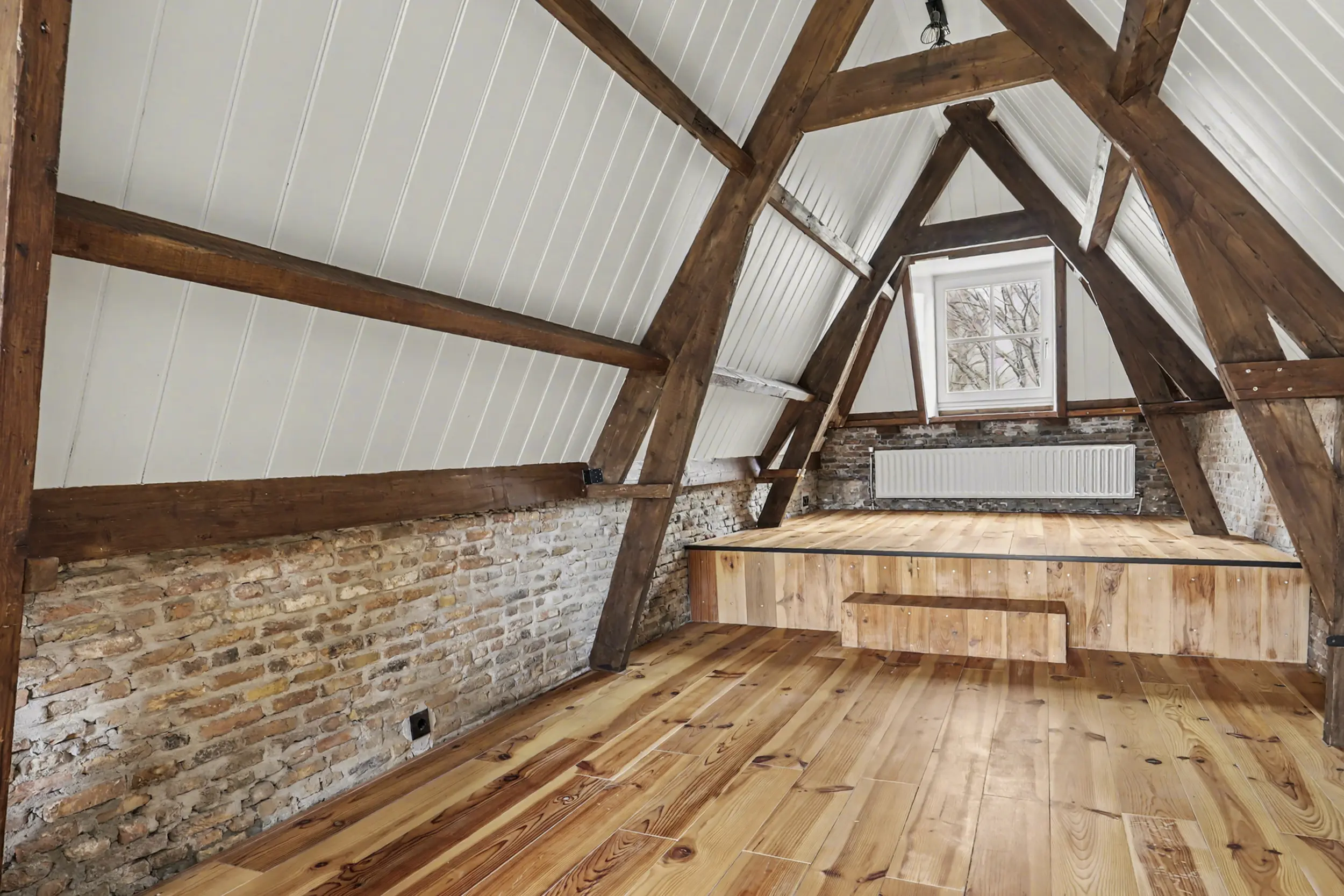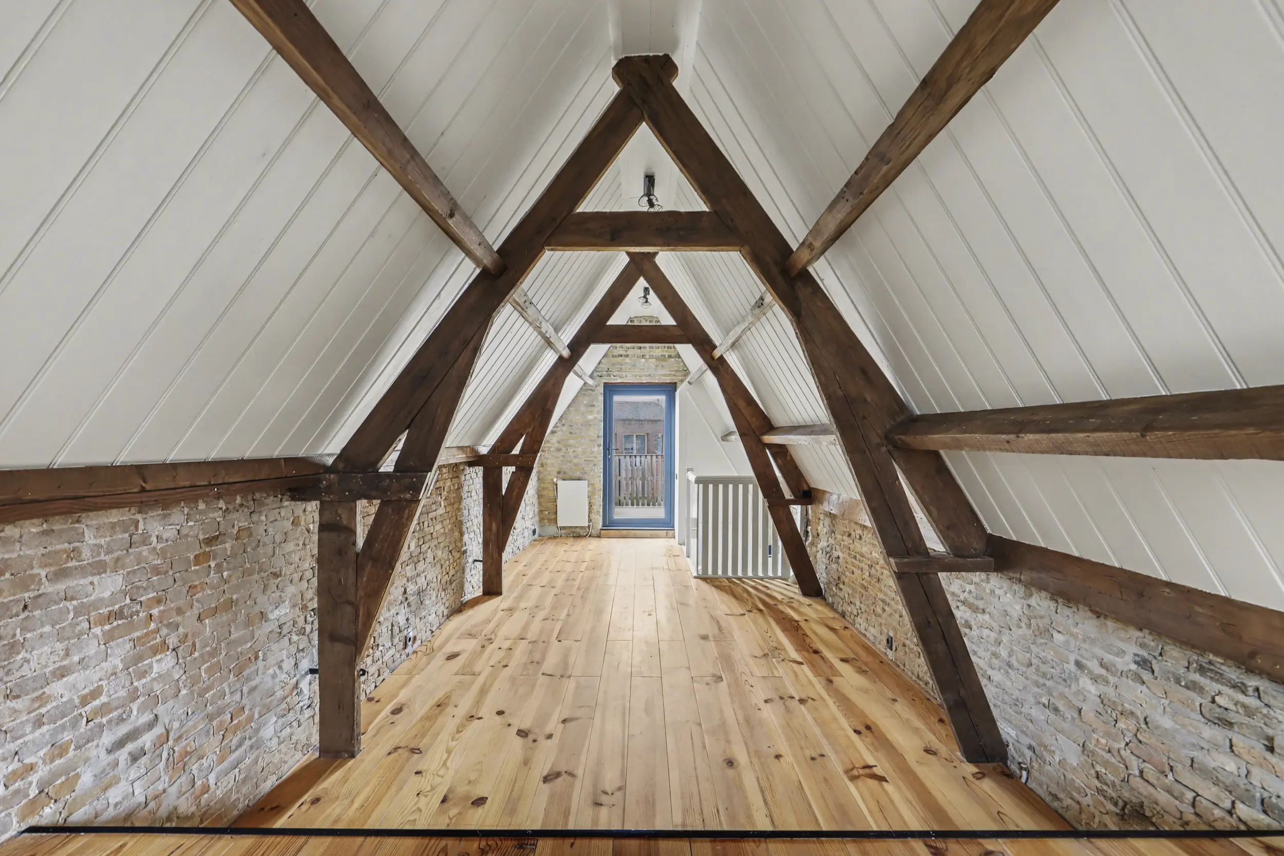 De tweede verdieping bestaat uit een ruime, open zolder met een prachtige zichtbare dakconstructie die direct sfeer en karakter geeft. Deze veelzijdige ruimte biedt tal van mogelijkheden: denk aan een extra slaapkamer, een fijne werkplek of een gezellige loungehoek.